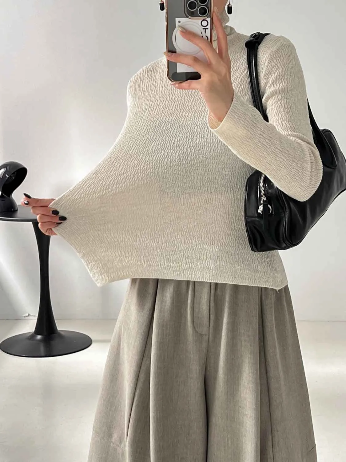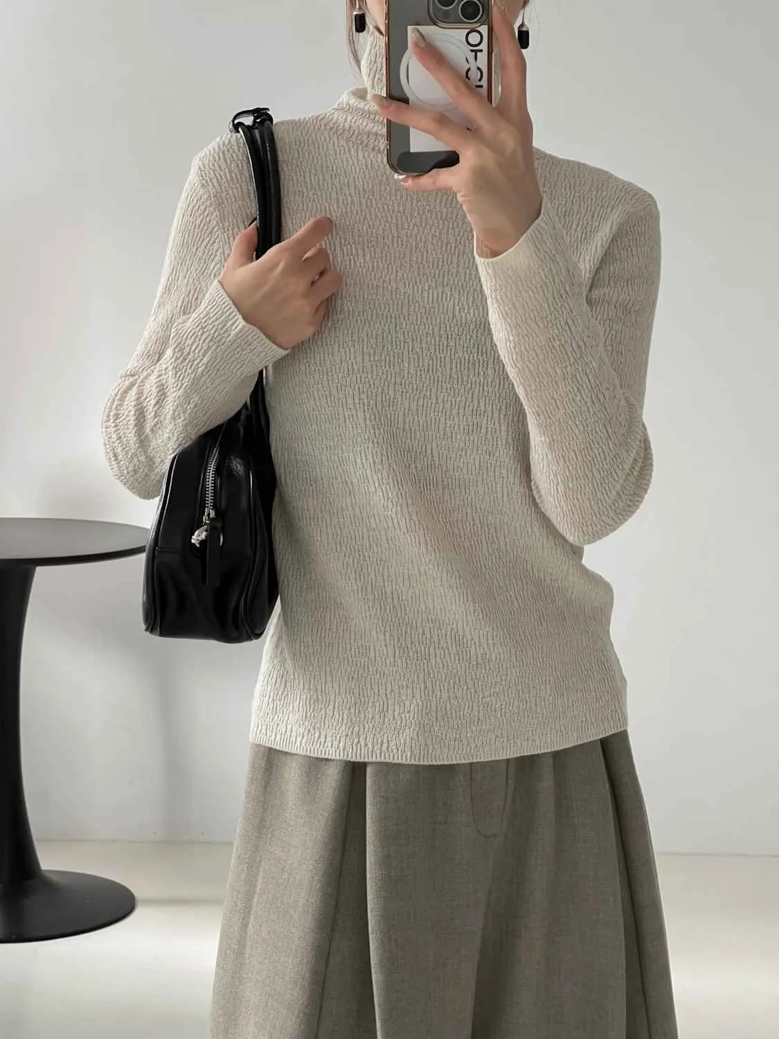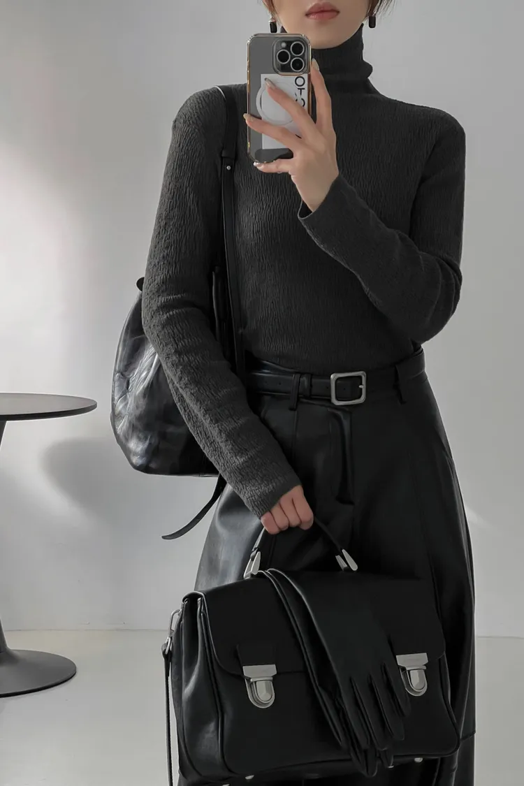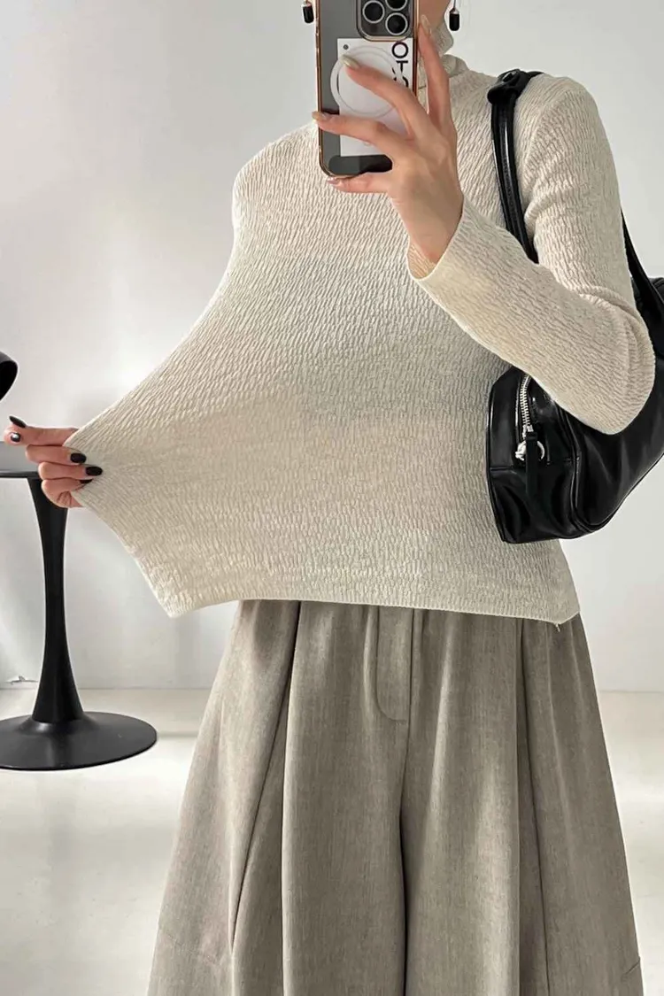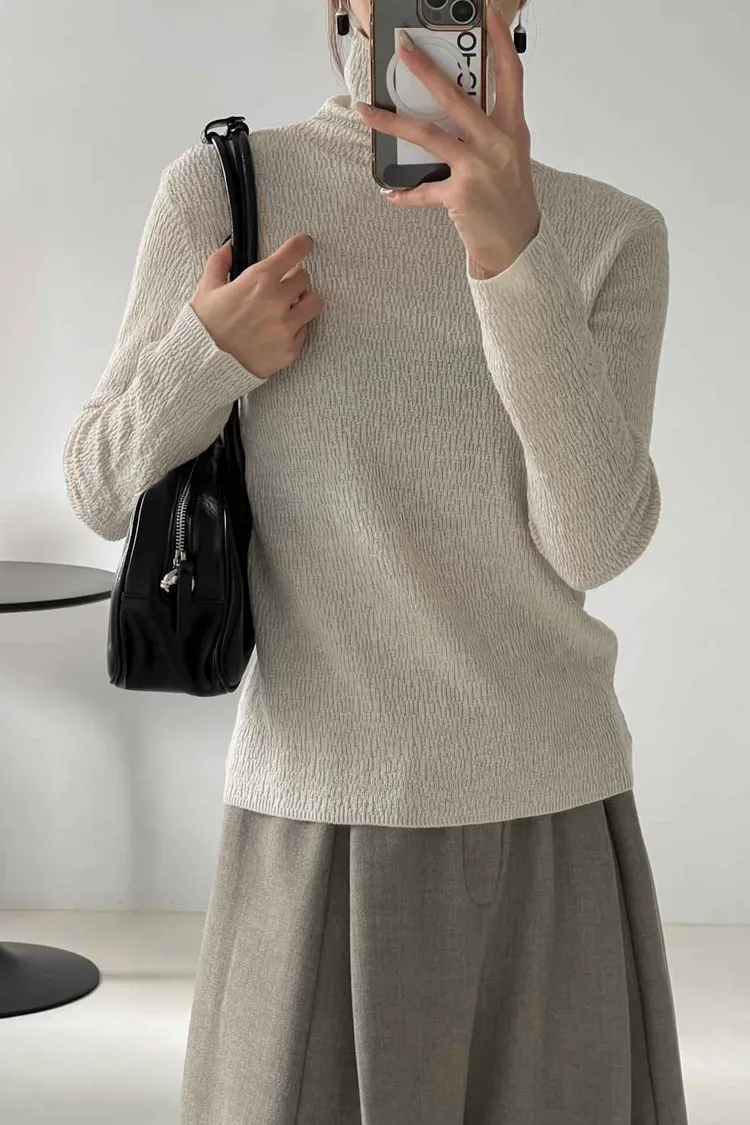 _i06. 超美.高級紋理高領打底上衣|高彈力