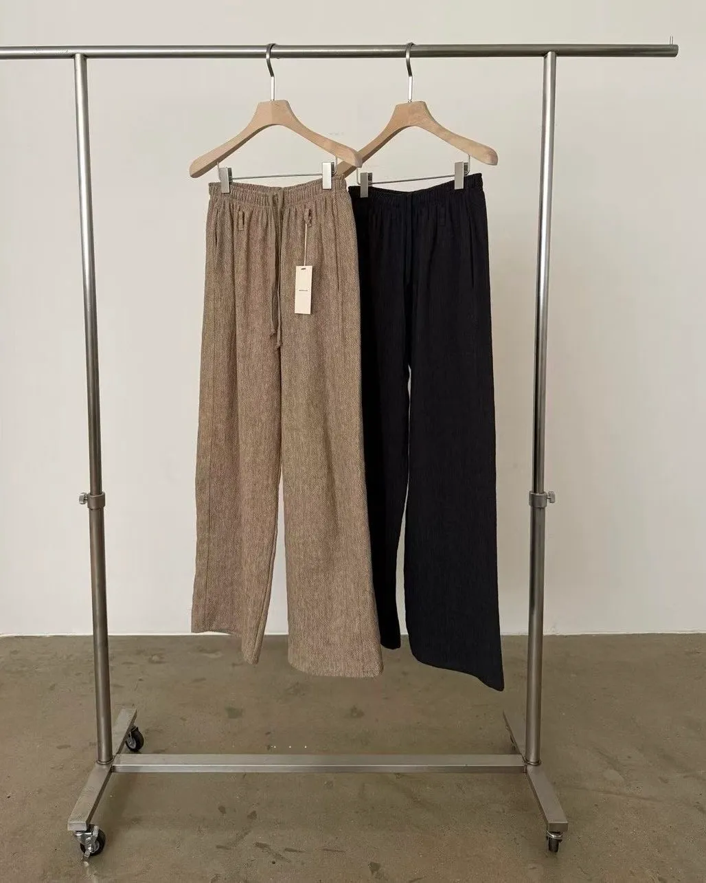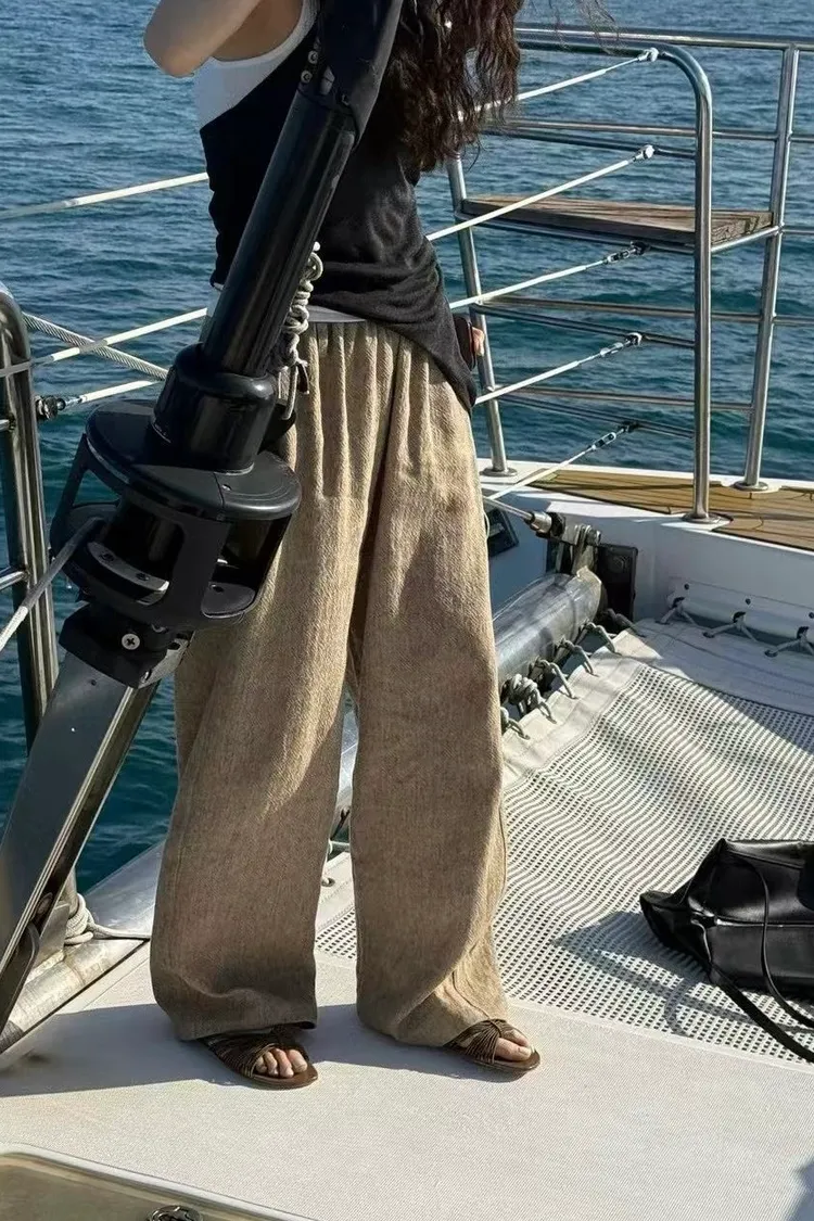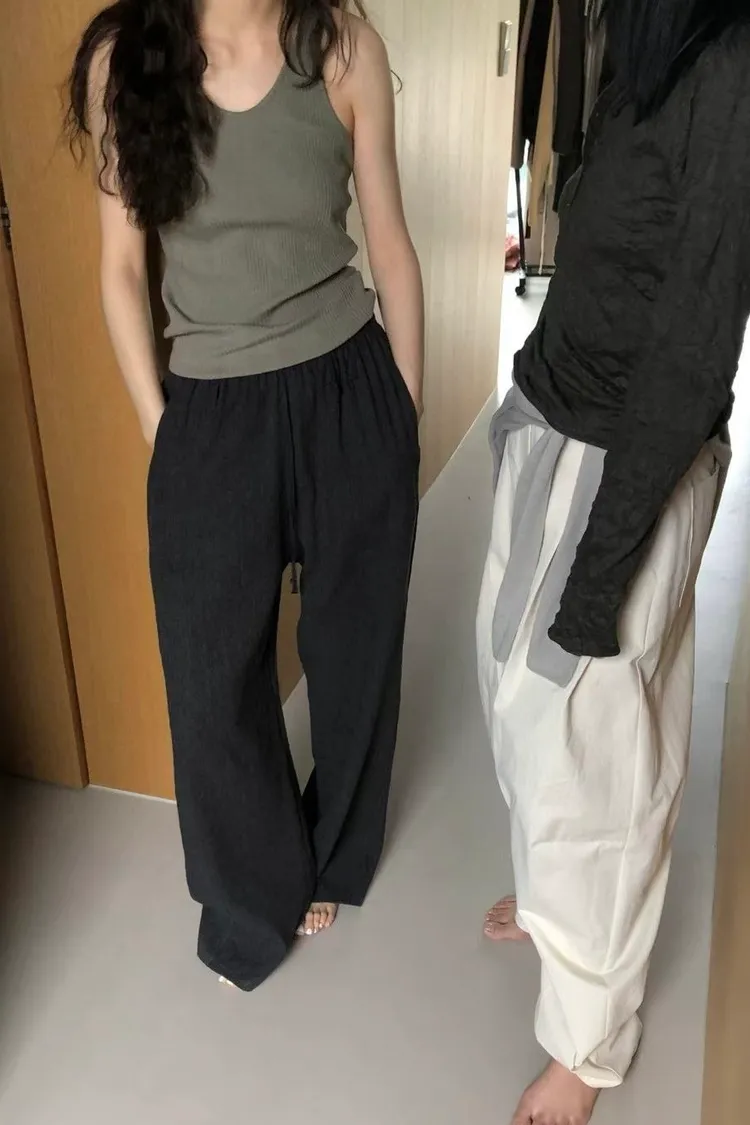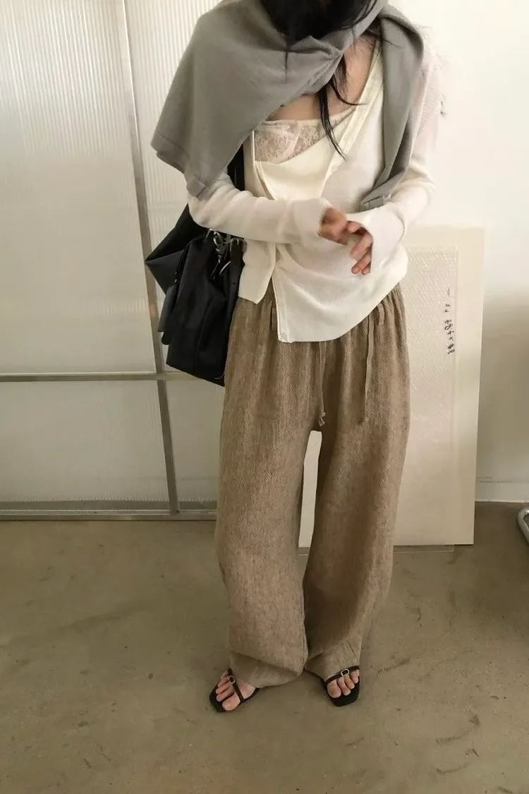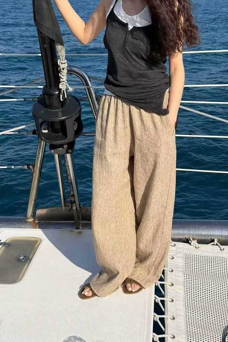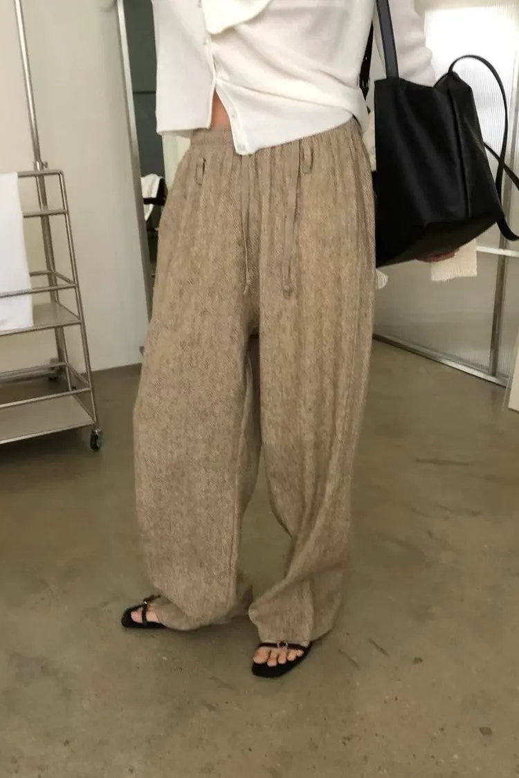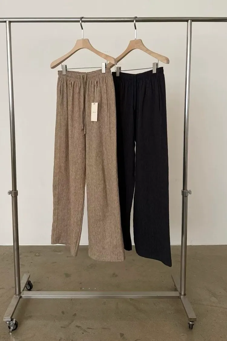 _K07. Korea 紋理質感棉麻混織鬆緊長褲
