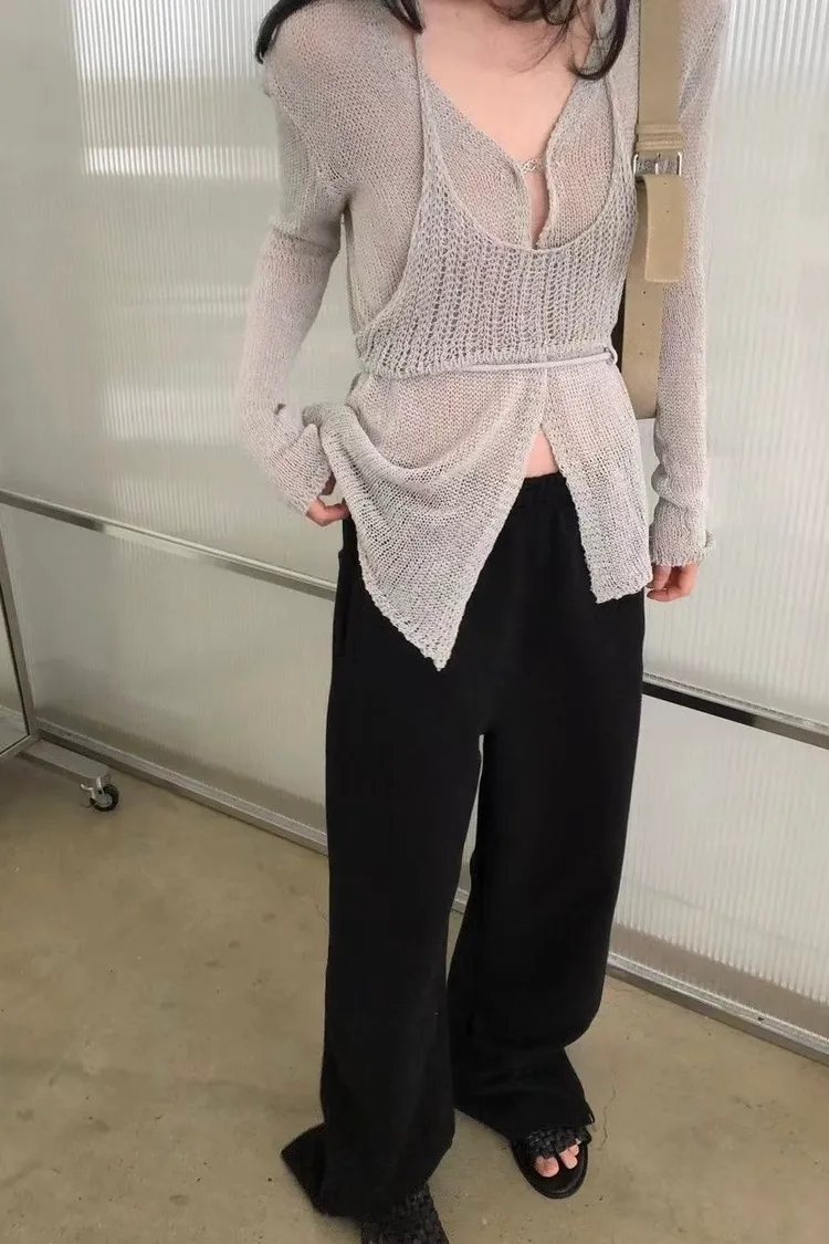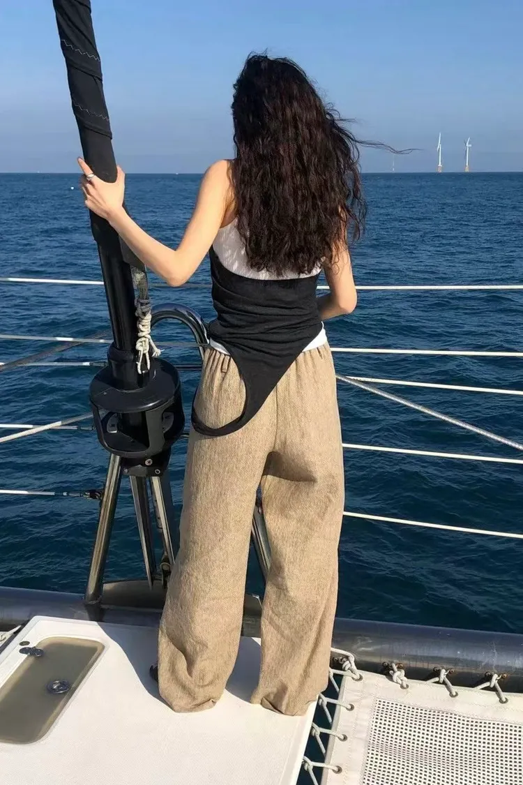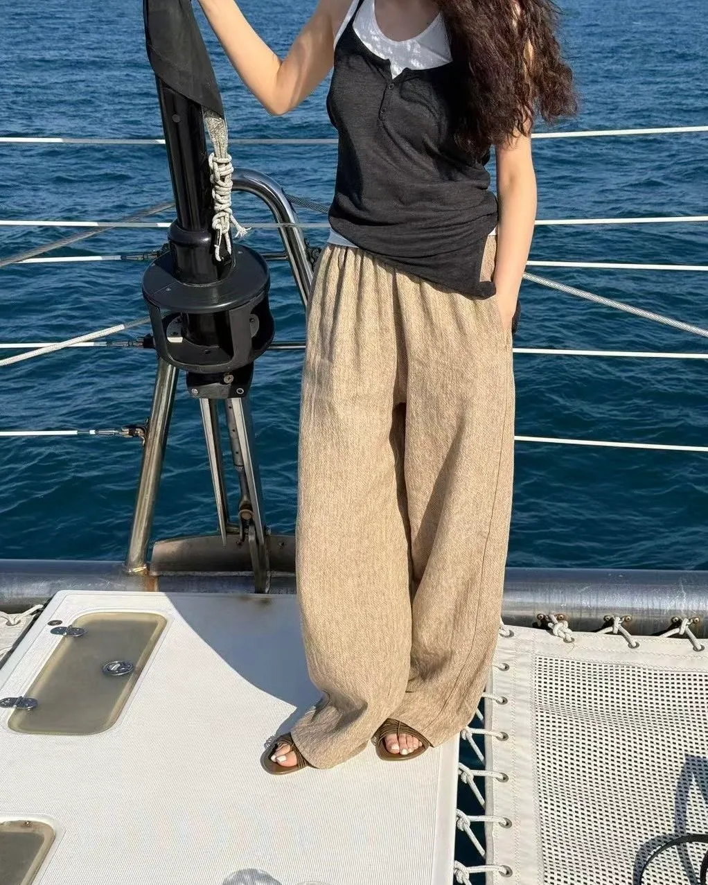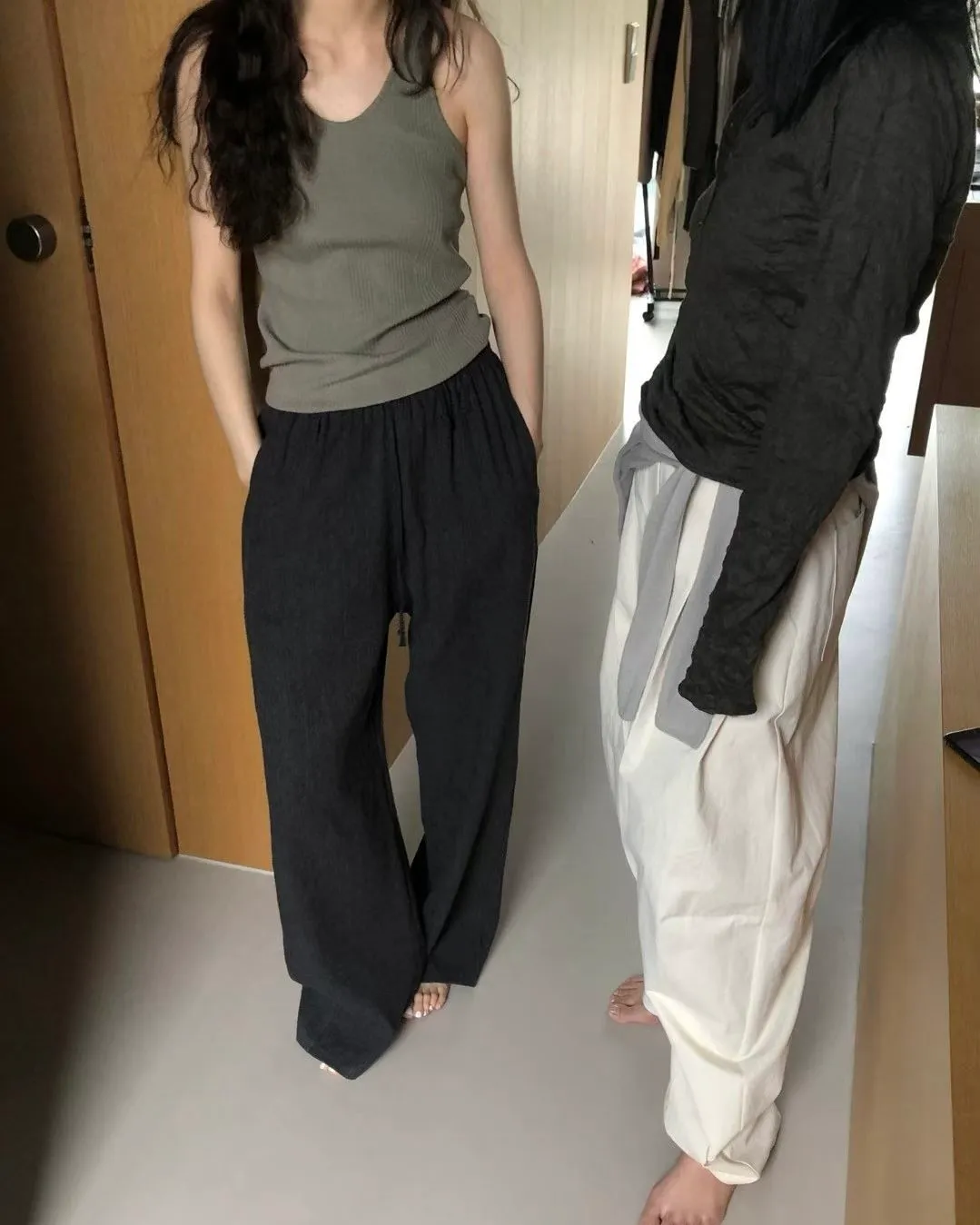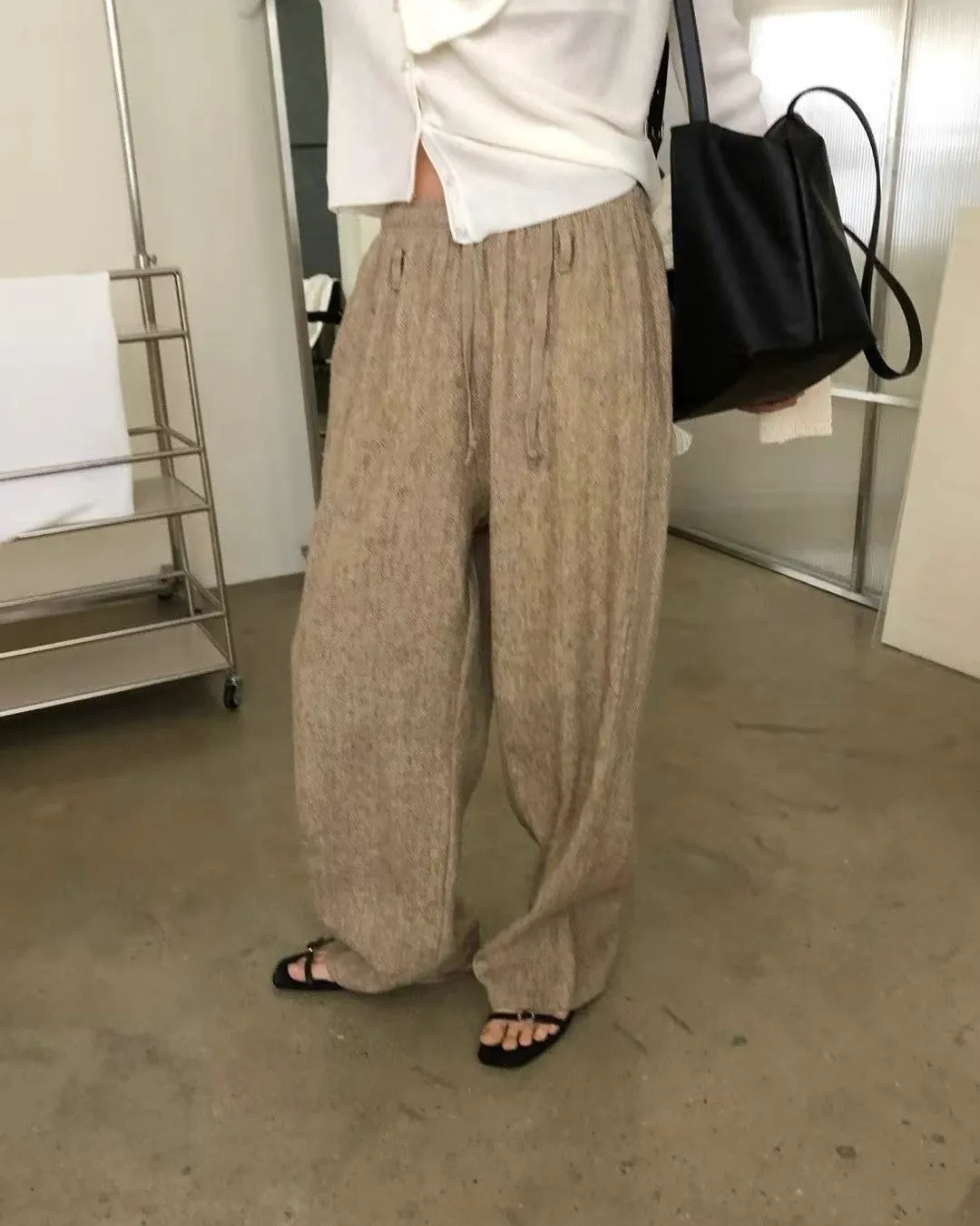 _K07. Korea 紋理質感棉麻混織鬆緊長褲