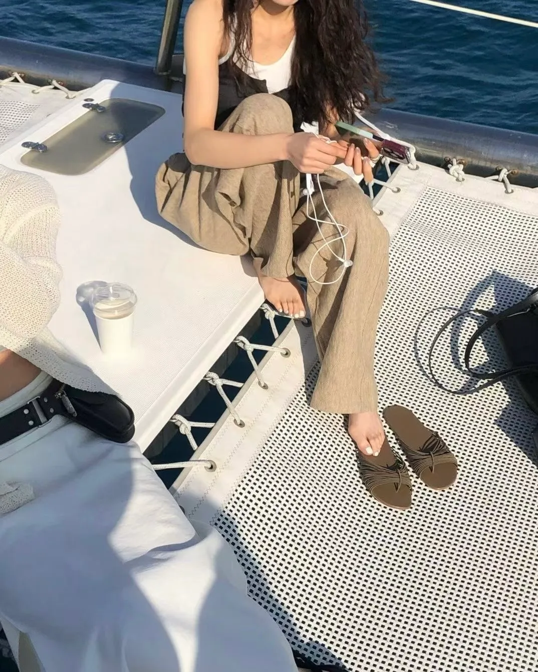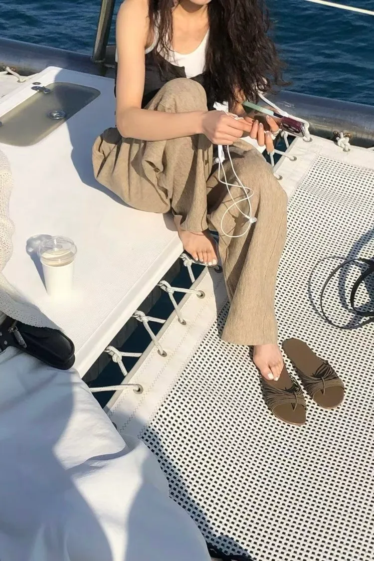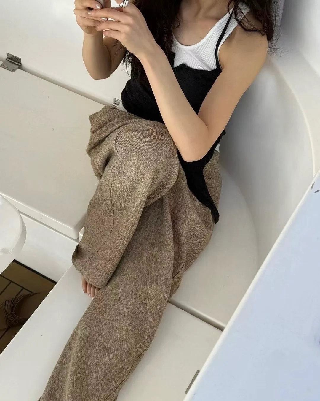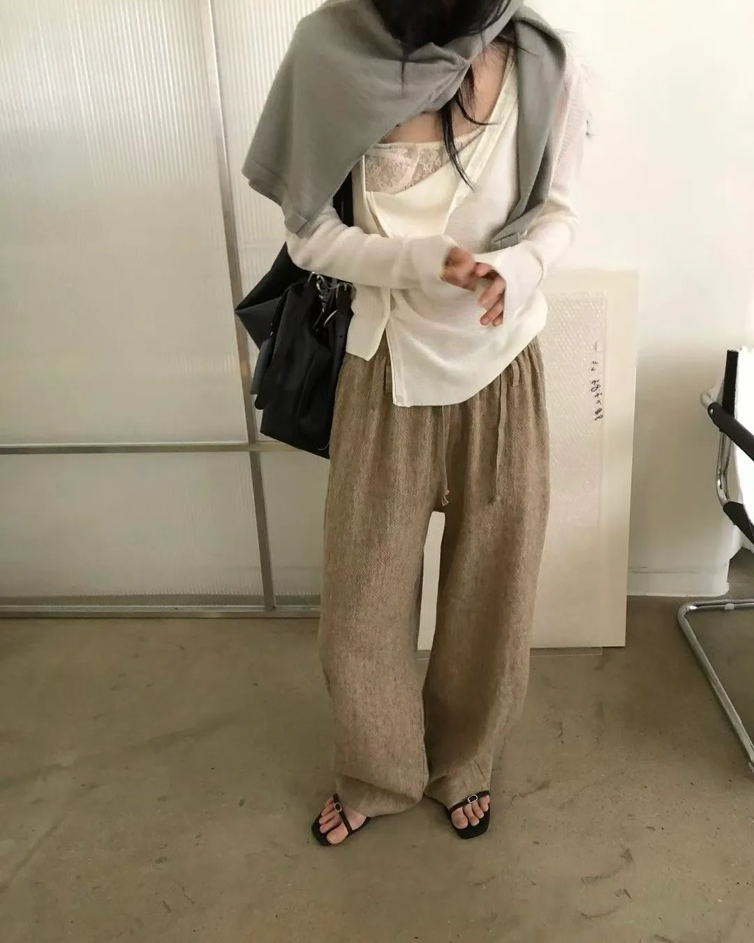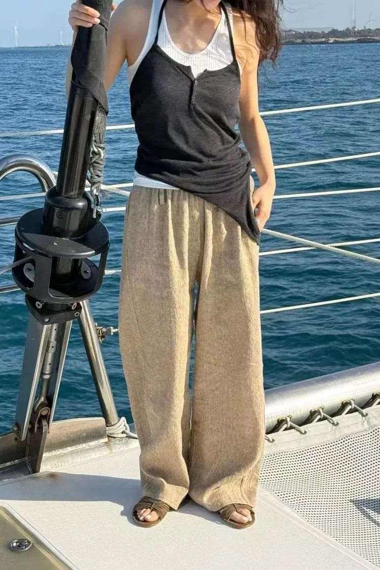 混麻料的紋理長褲