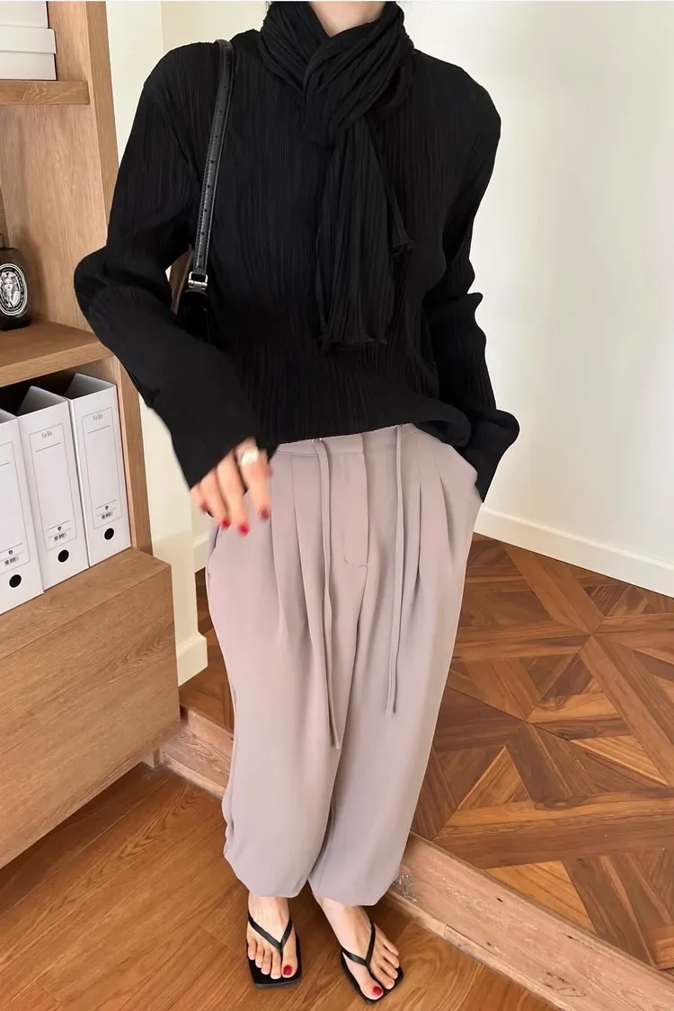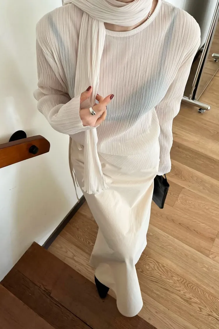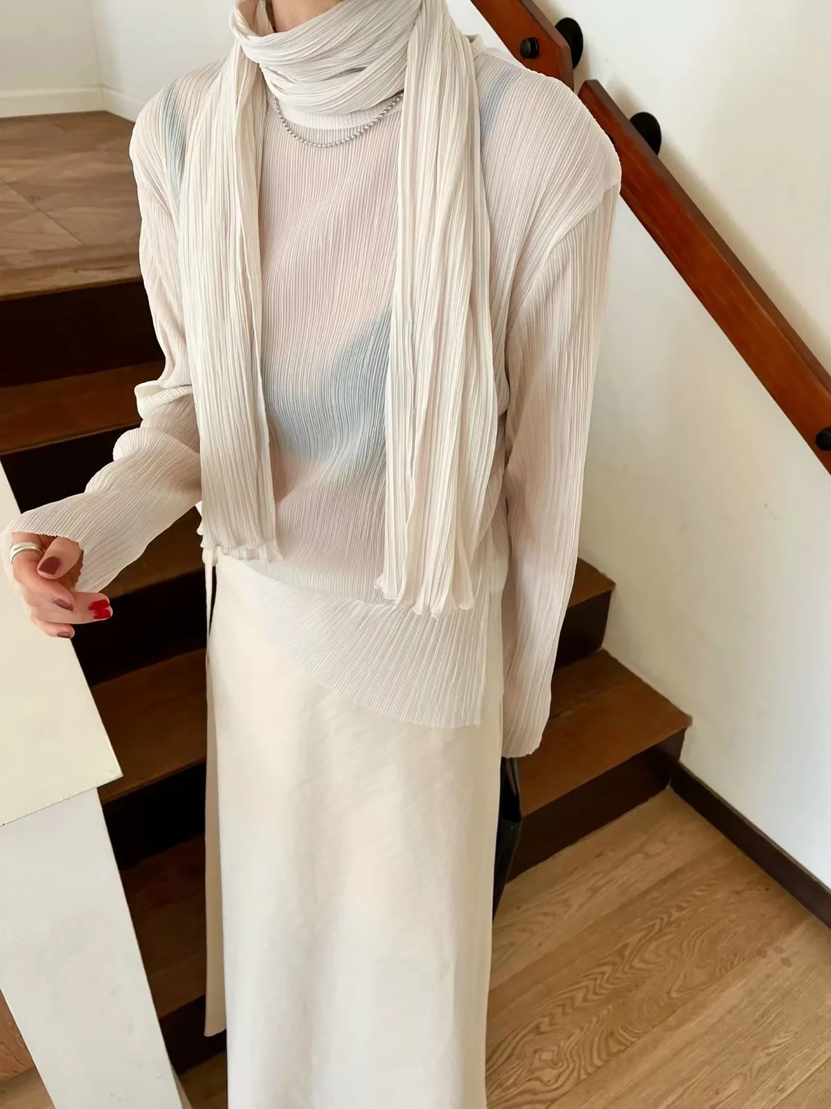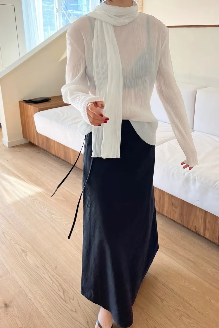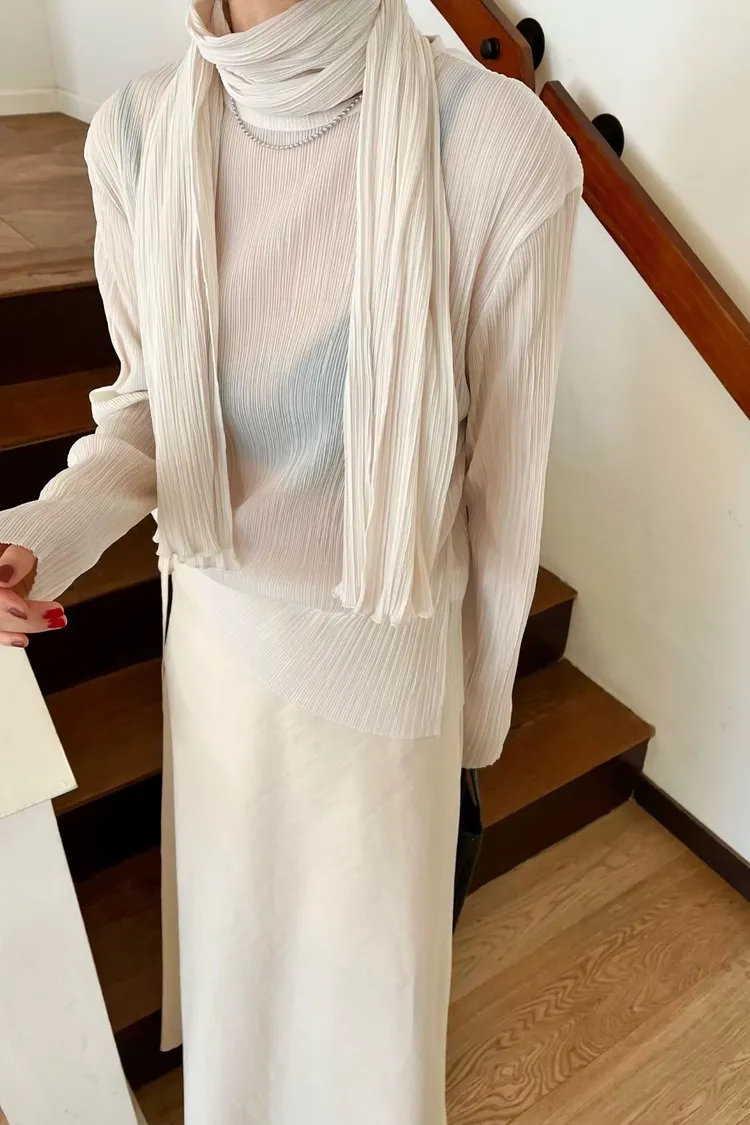 壓折領巾x壓折上衣Set