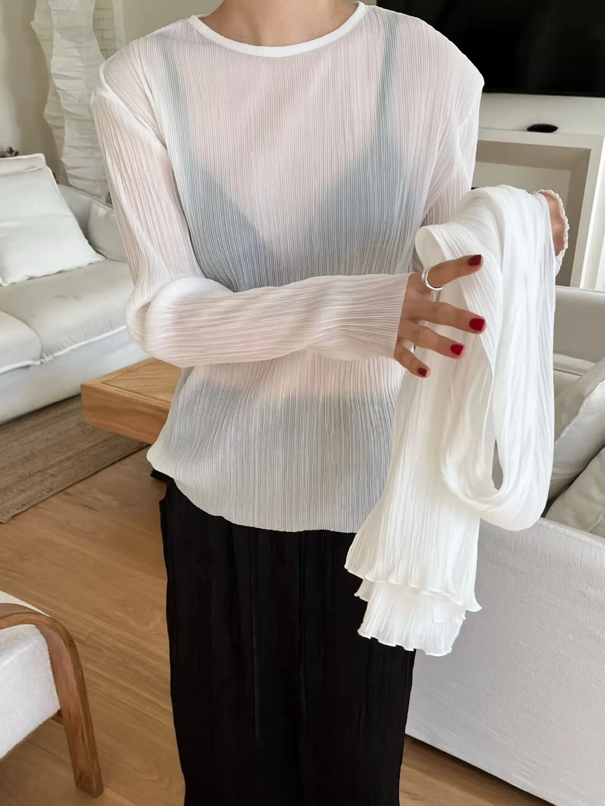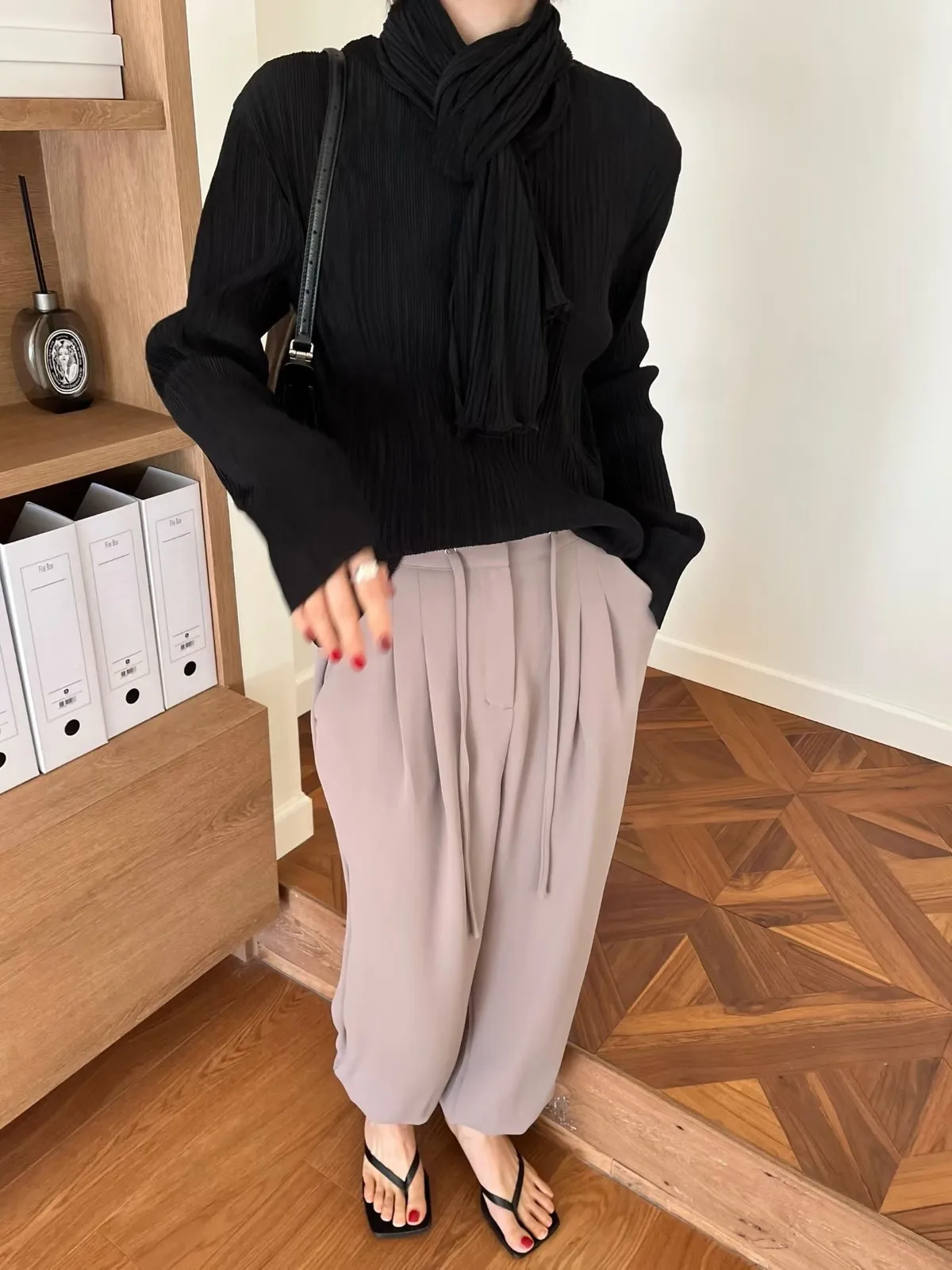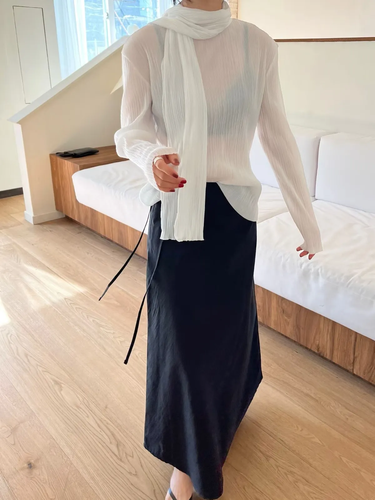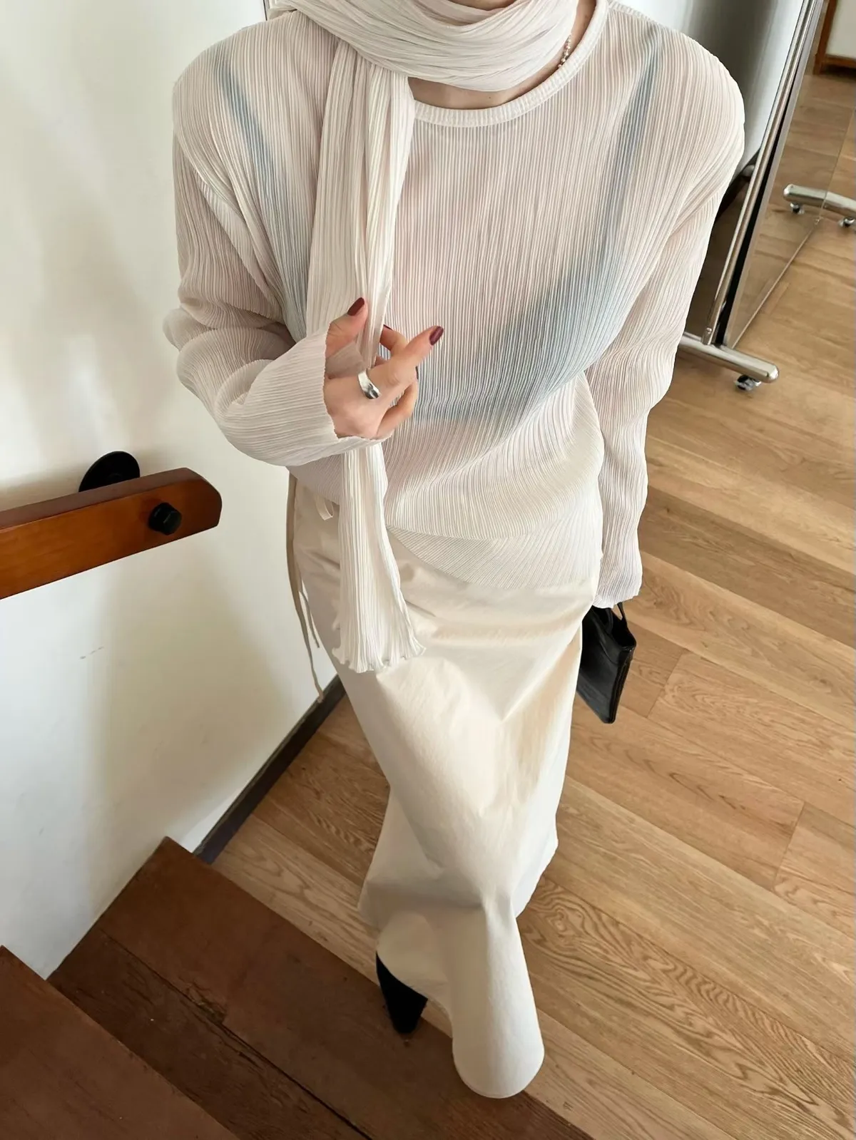 壓折領巾x壓折上衣Set