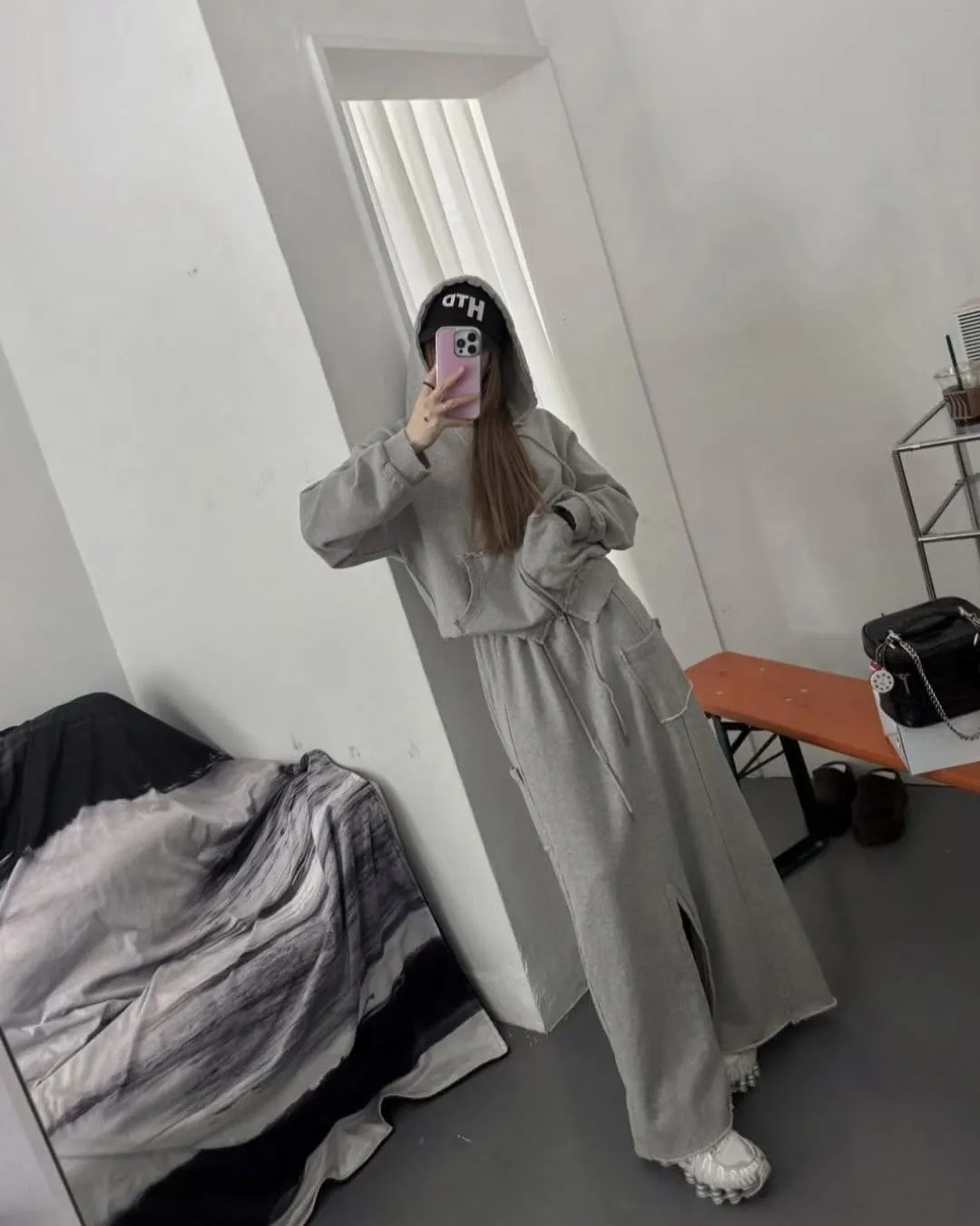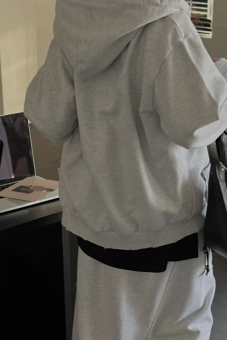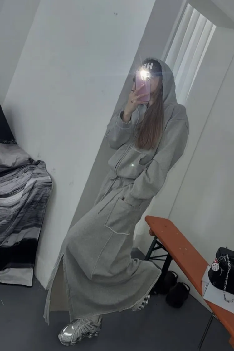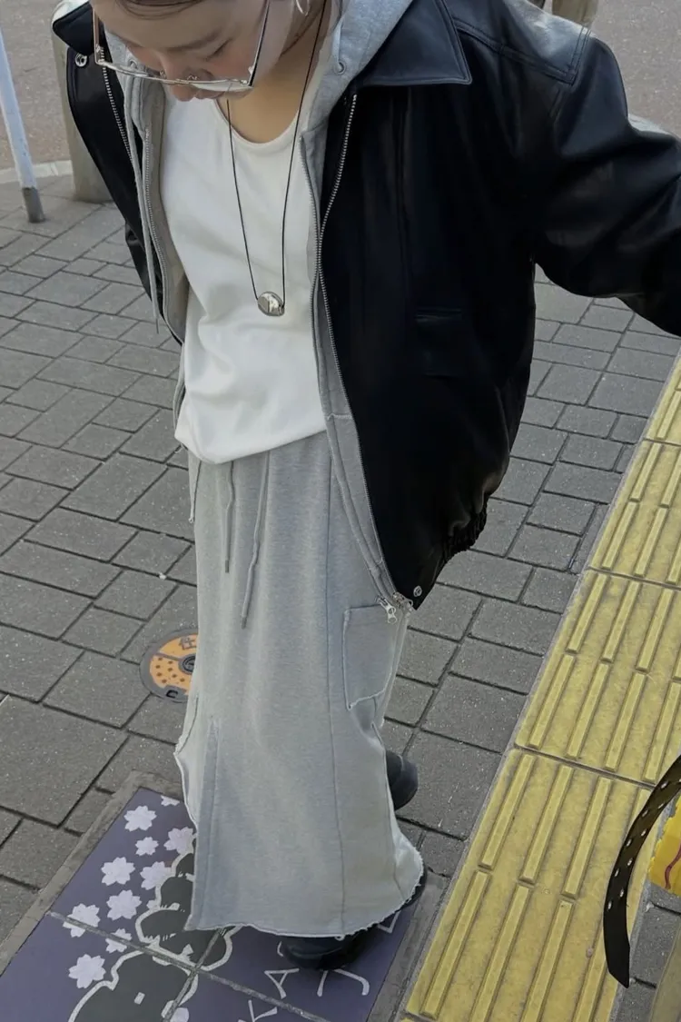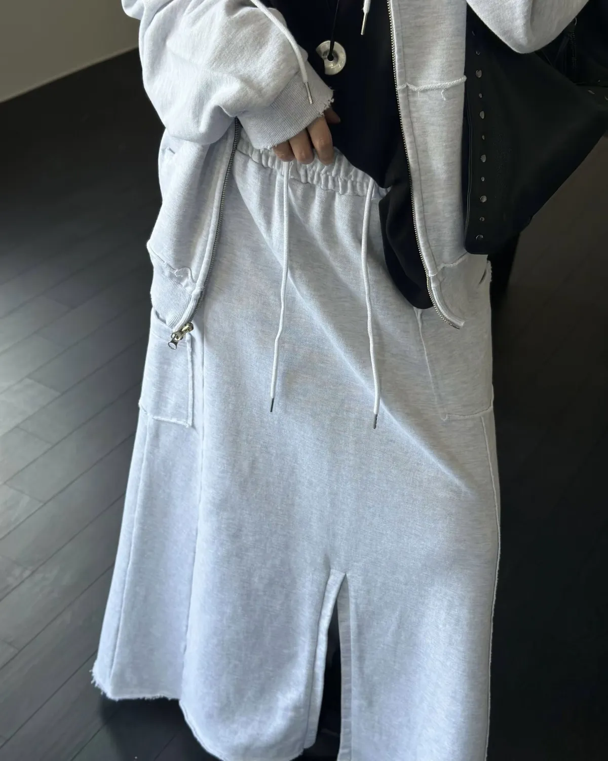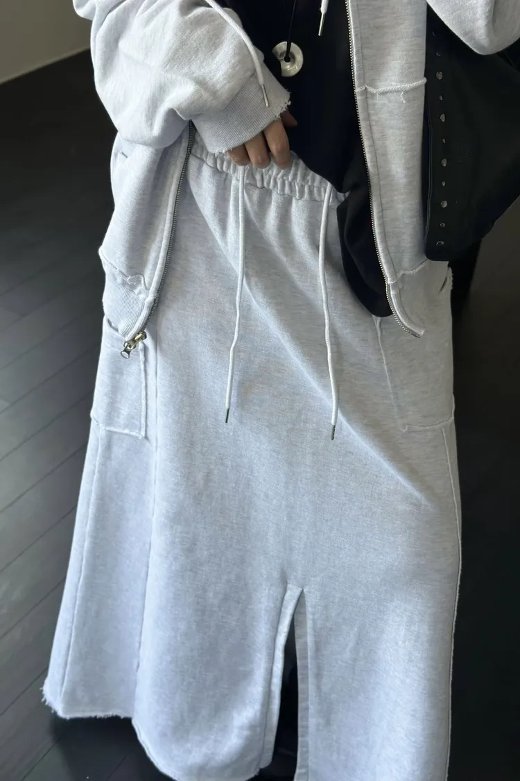 材質高磅的連帽外套X造型棉裙Set