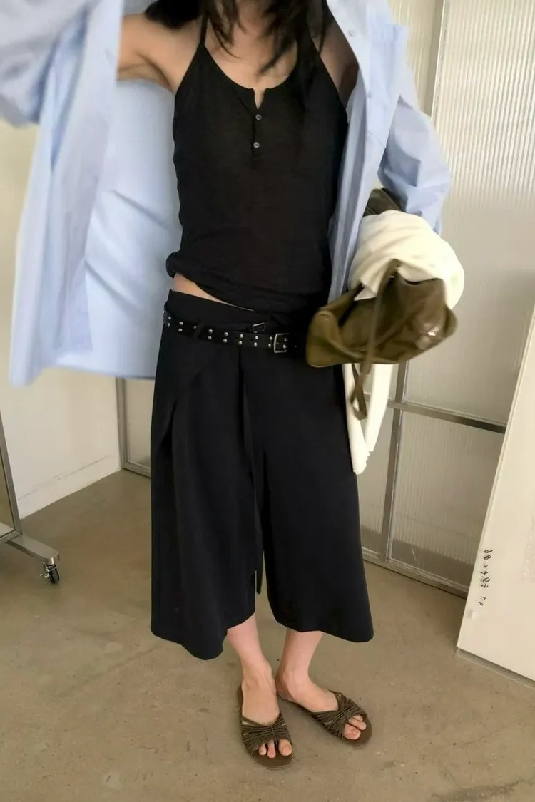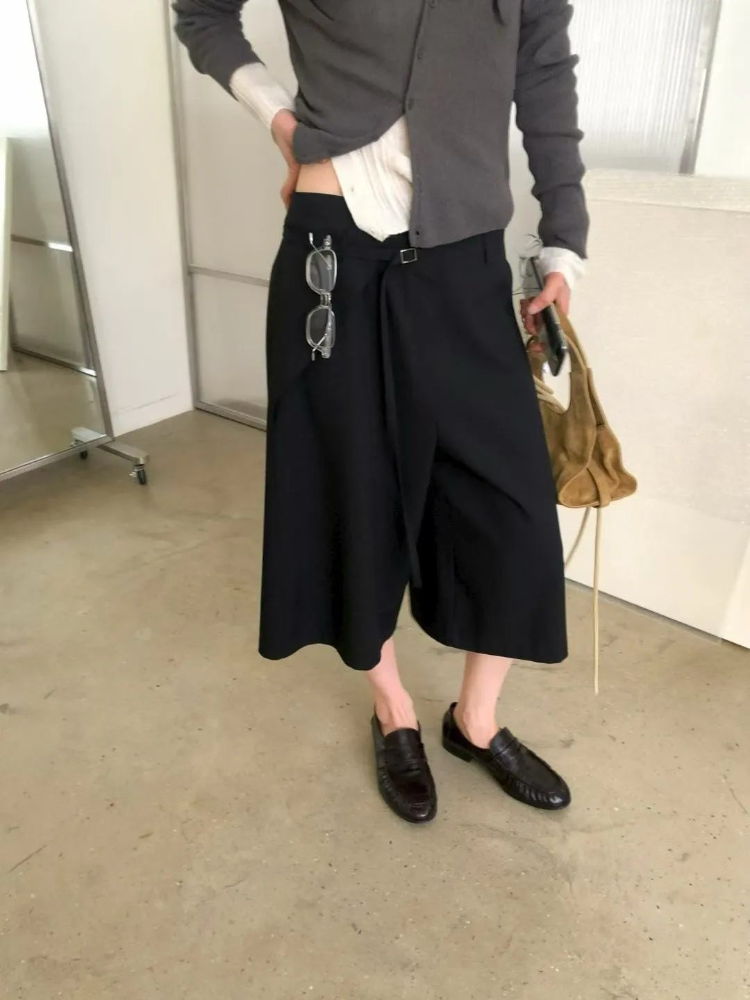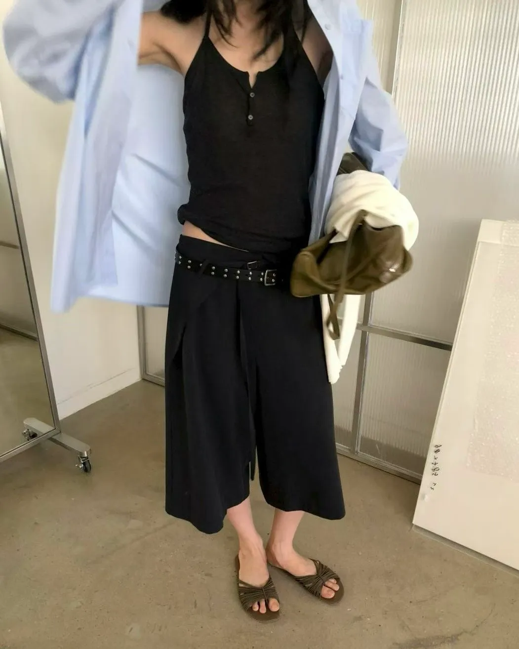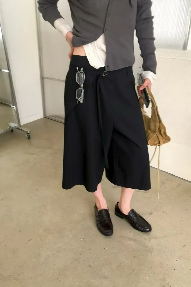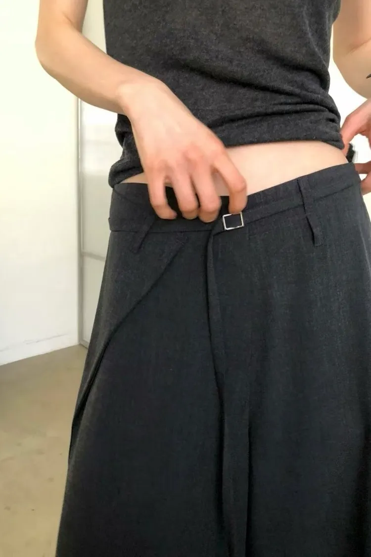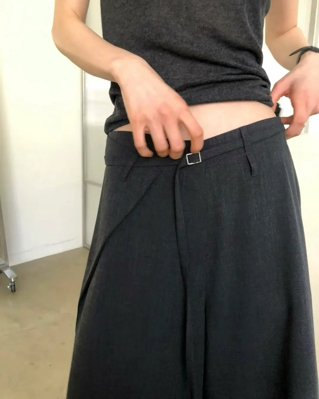 腰側打折造型|漂亮銀釦繫帶和西裝感腰頭
