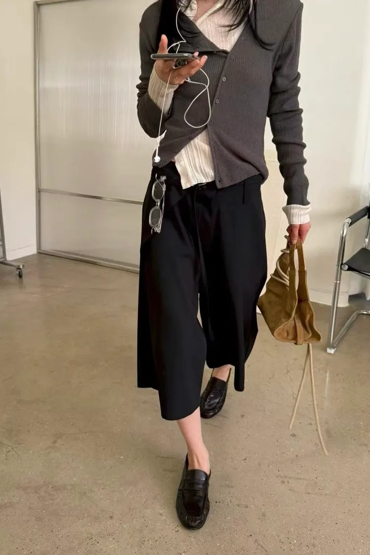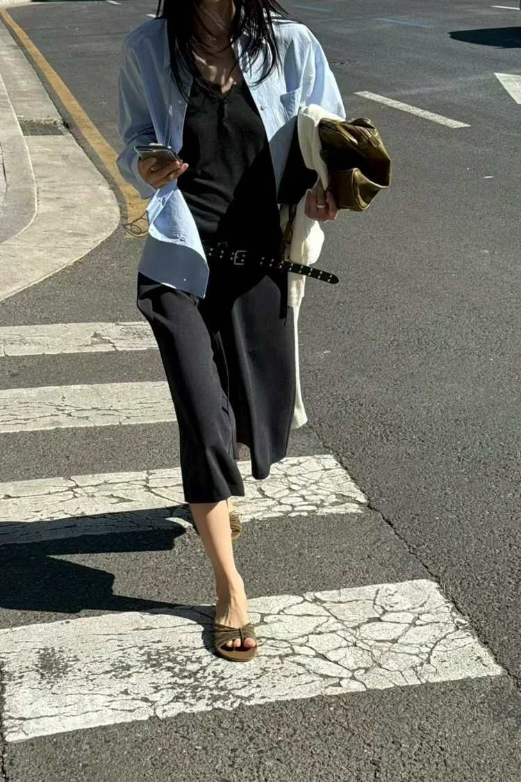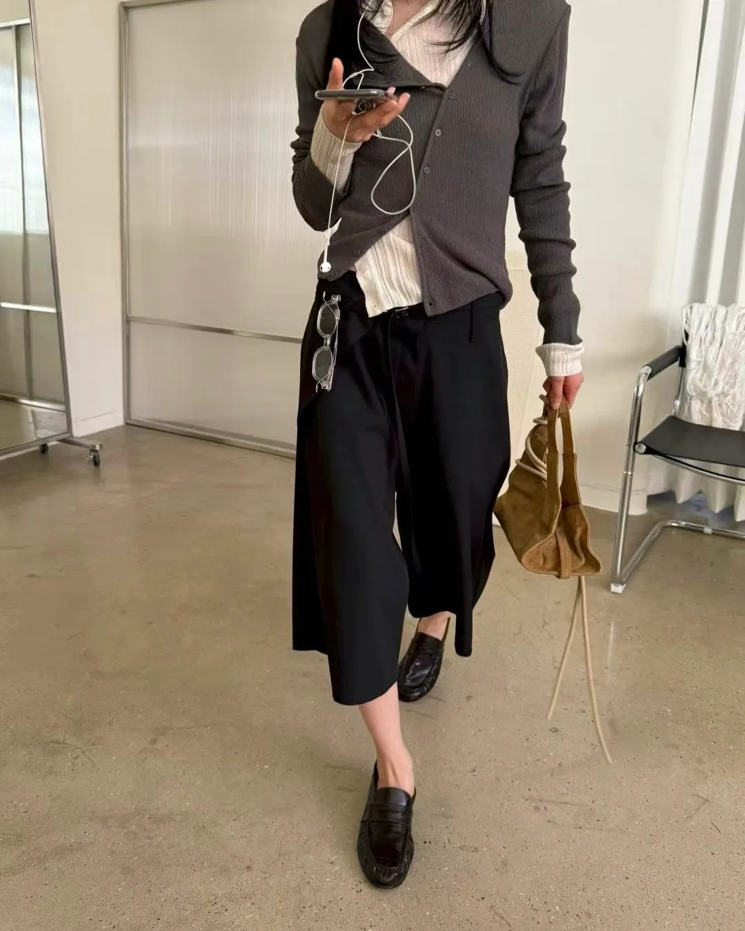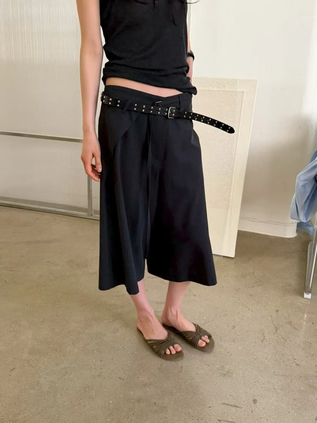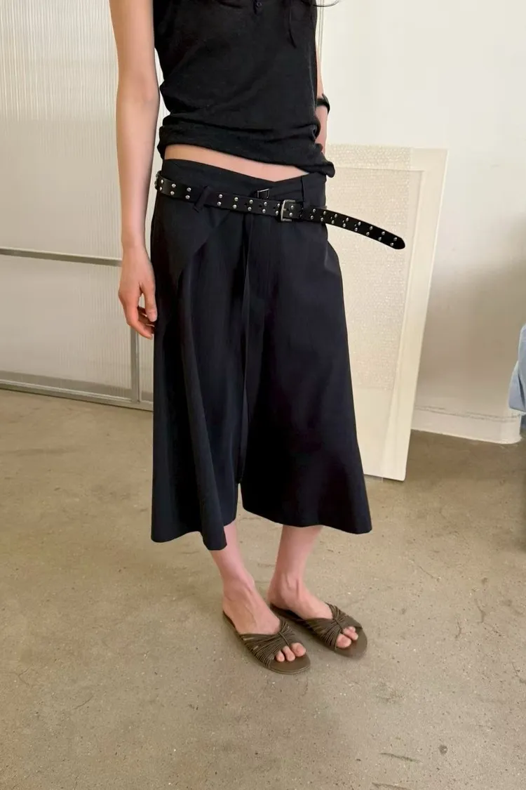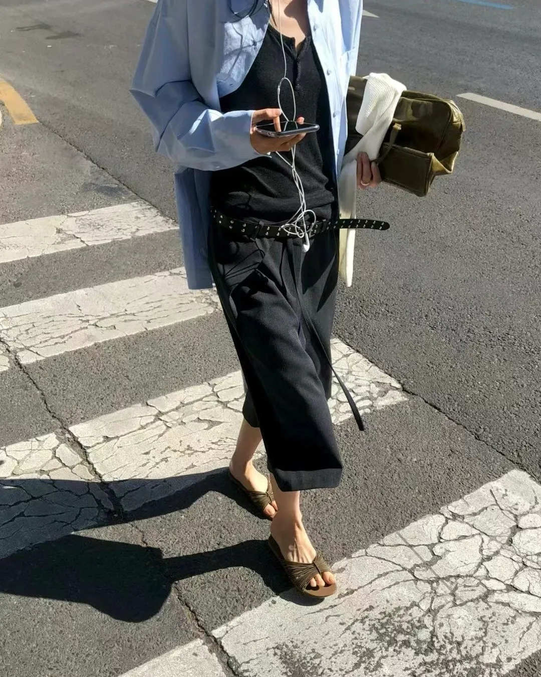 腰側打折造型|漂亮銀釦繫帶和西裝感腰頭