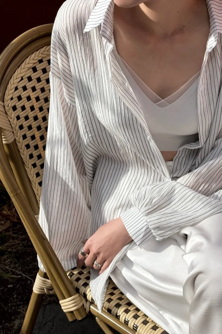 搭配襯衫.V領.或是微透的針織都很美