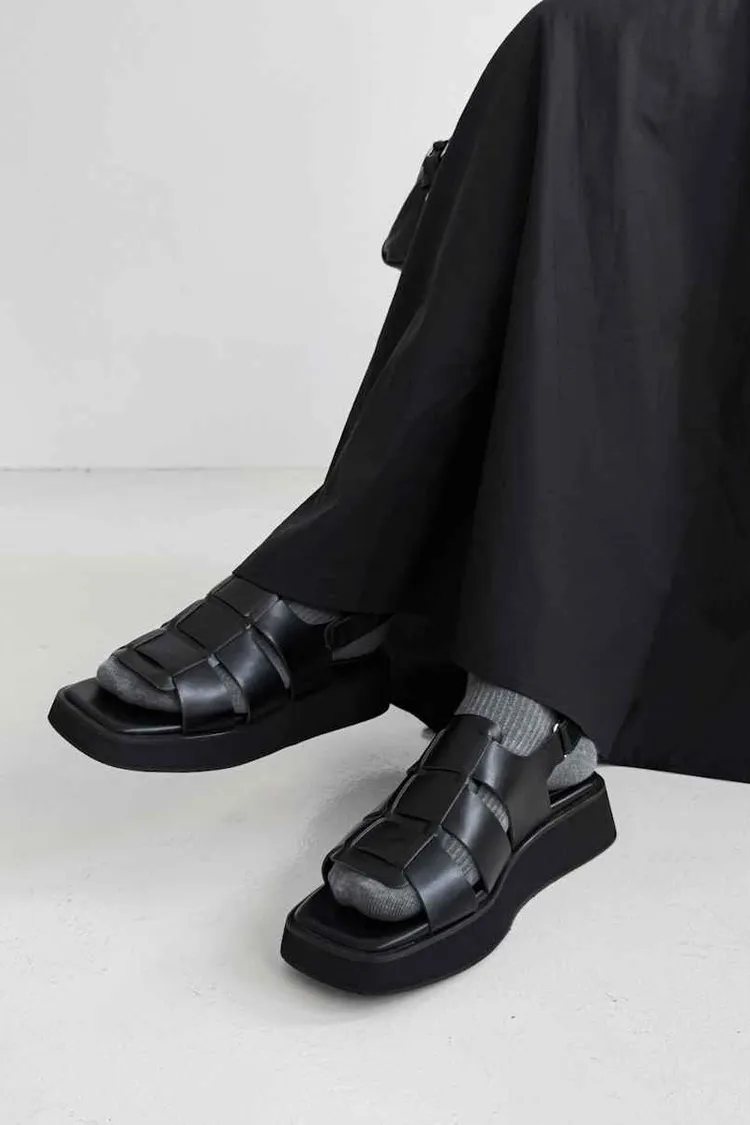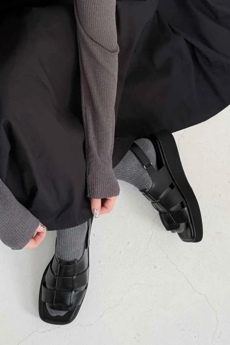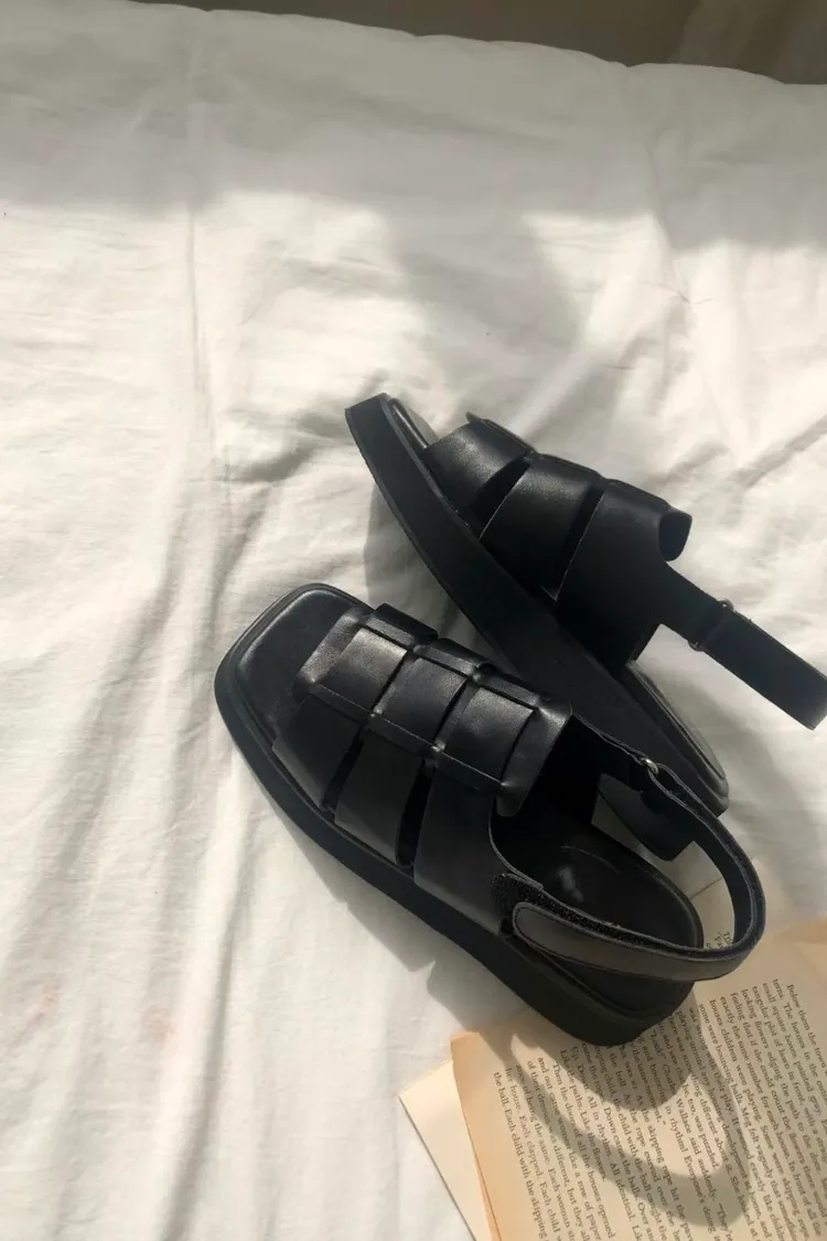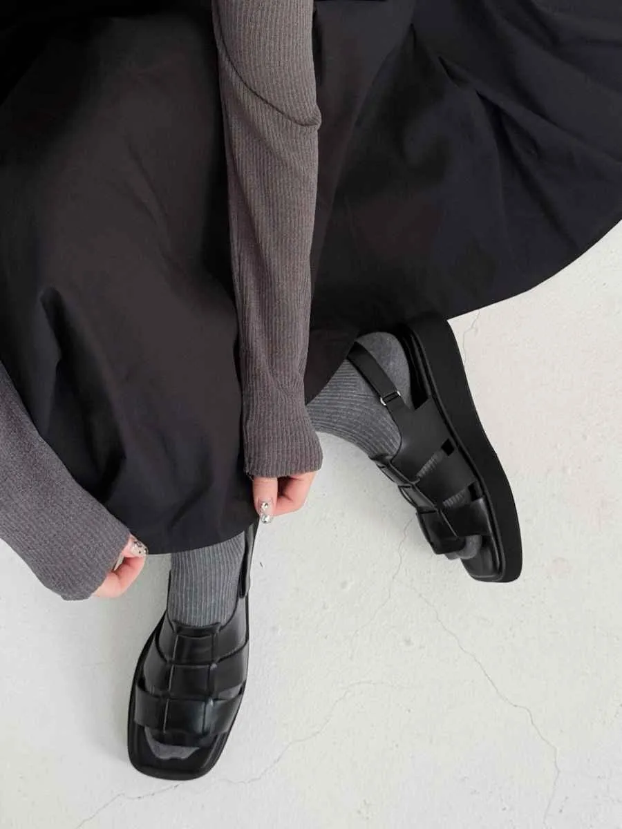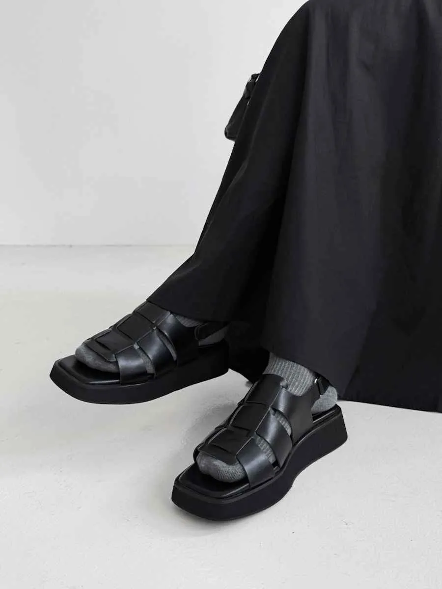 FR014. 厚底皮革寬編織涼鞋