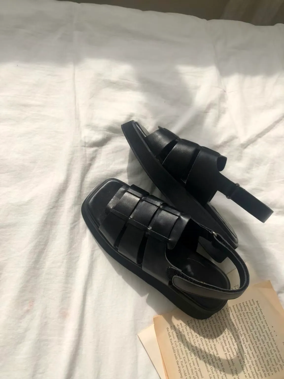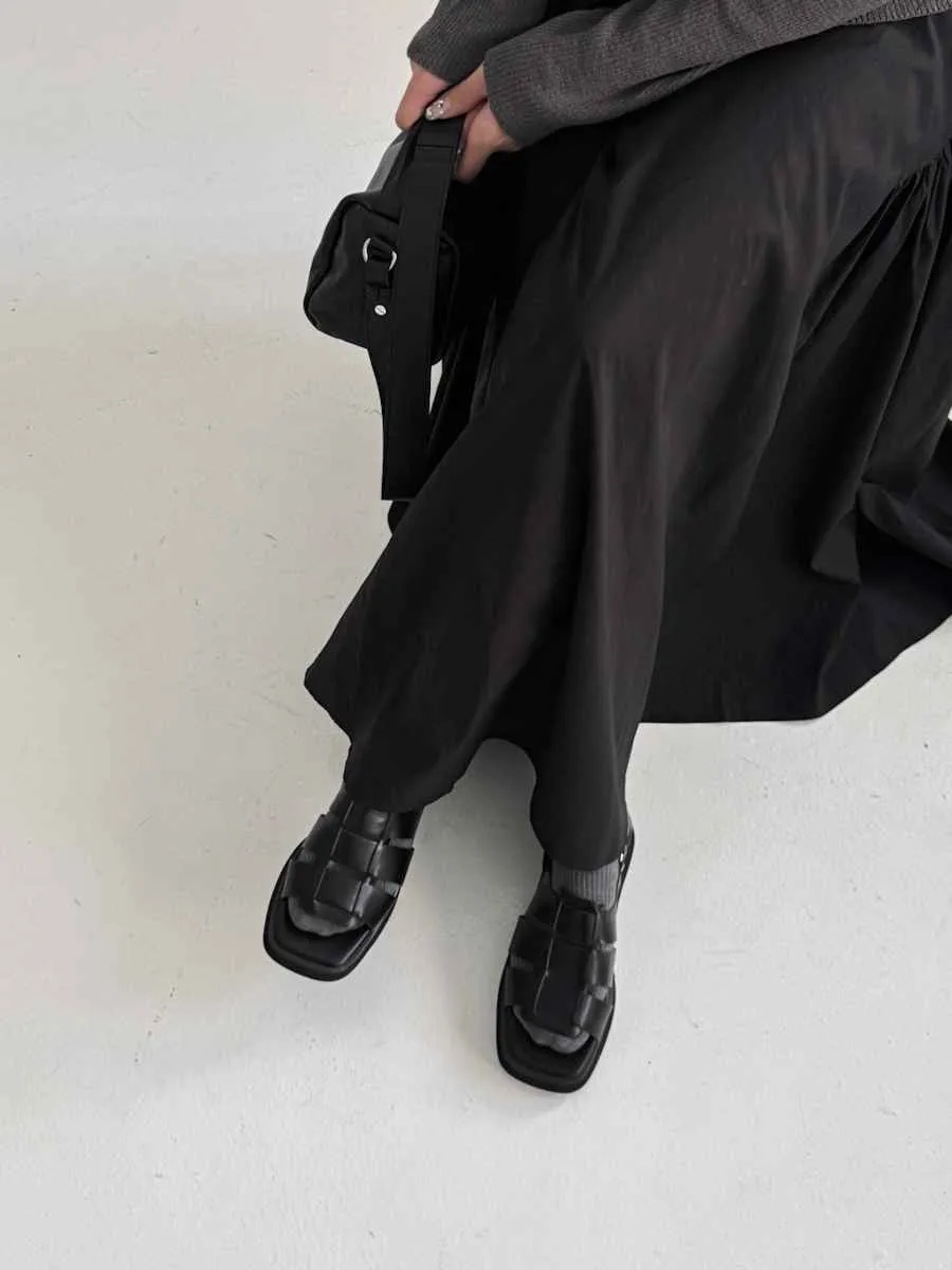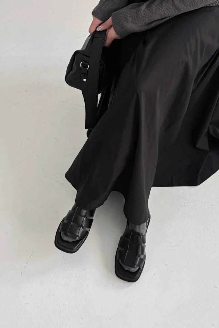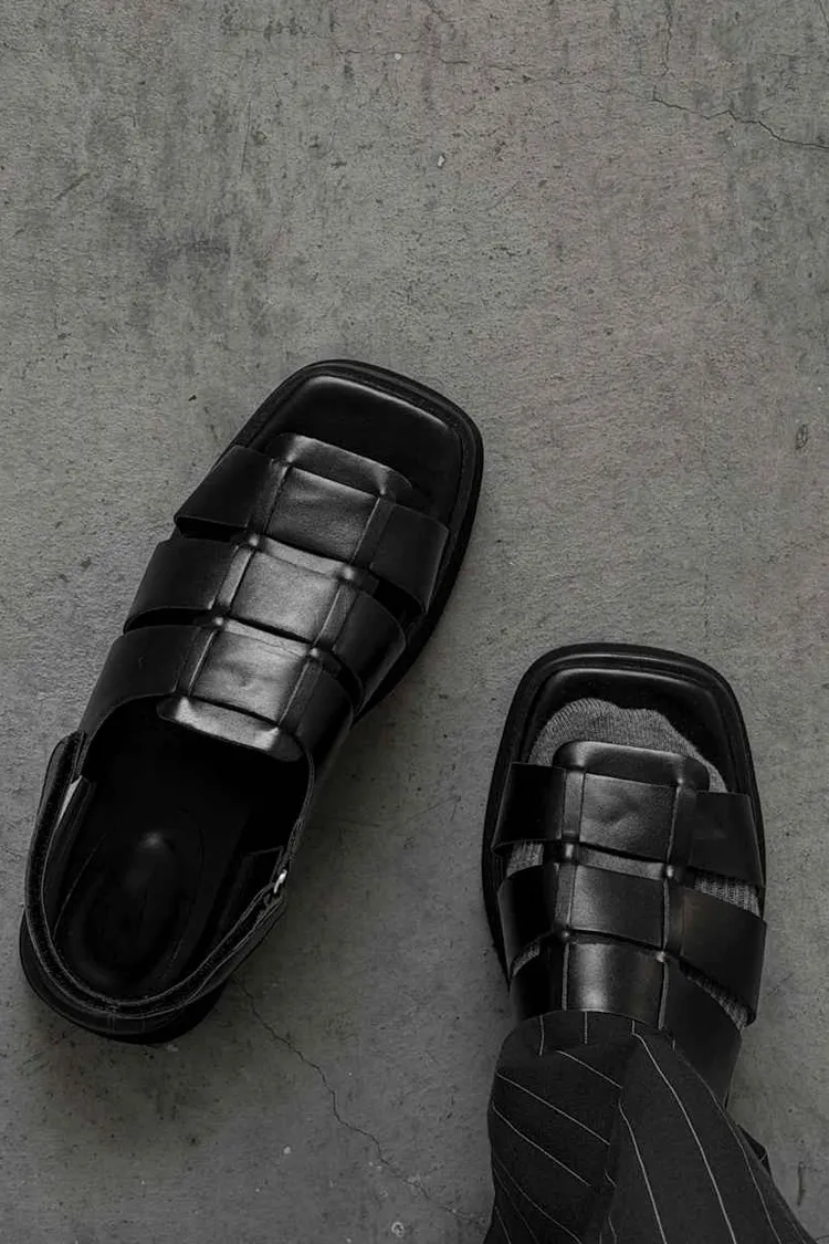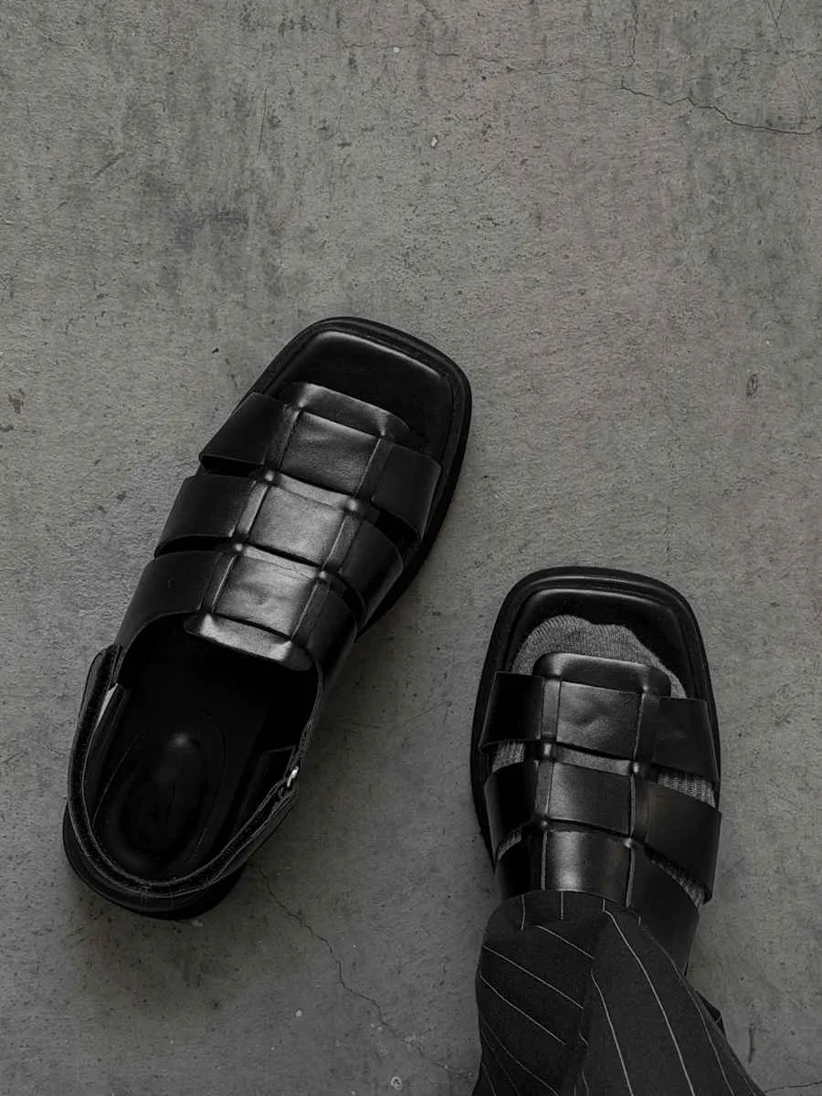 FR014. 厚底皮革寬編織涼鞋