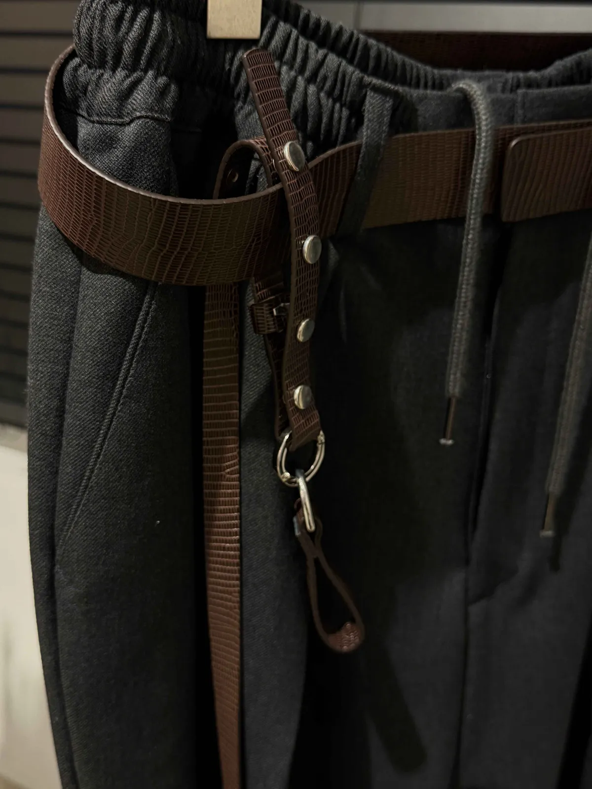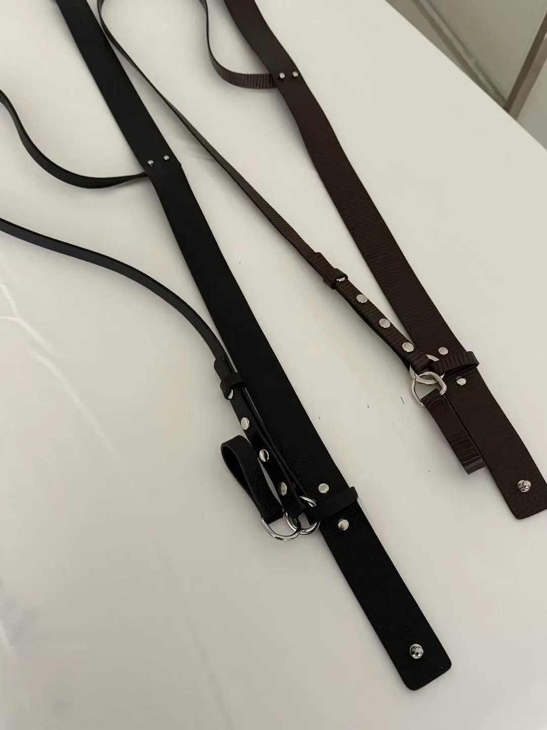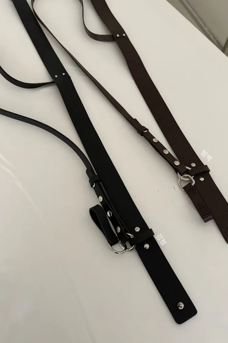 /黑色為荔枝紋理 /棕色鱷魚紋理 今年時髦的配件很必須 這款造型腰帶 沒有皮帶頭 更適合隨意調整 大襯衫/褲裝/長洋裝都可以使用 皮繩可以斜挎肩背 自然垂放也好看 想穿著簡單也可以卸除皮繩 非常實用的質感配件