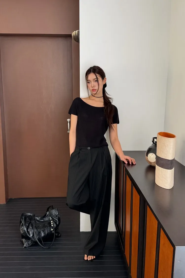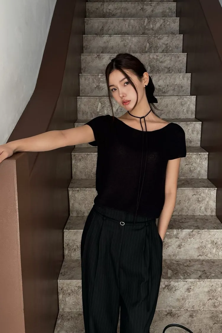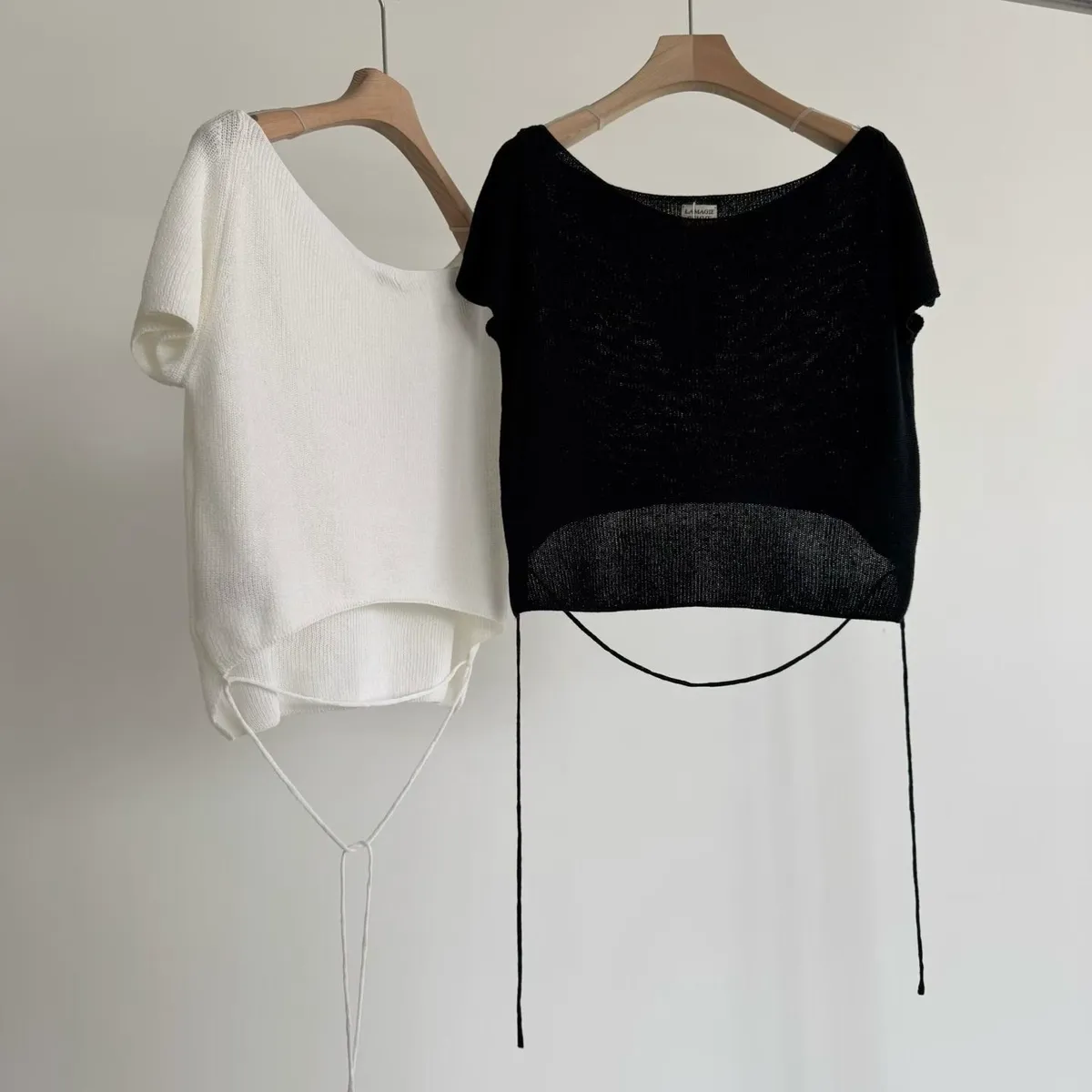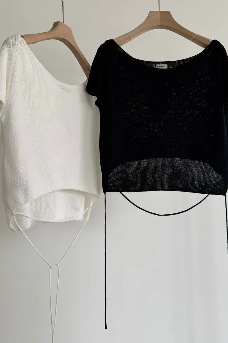 _N47. Korea 寬領繫帶針織上衣|涼紗款