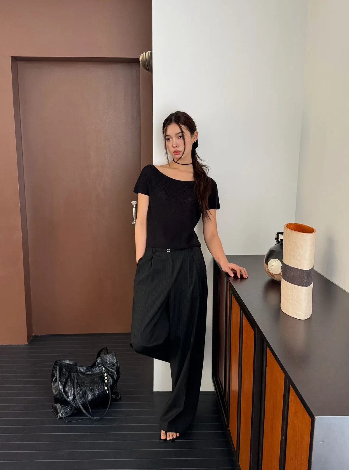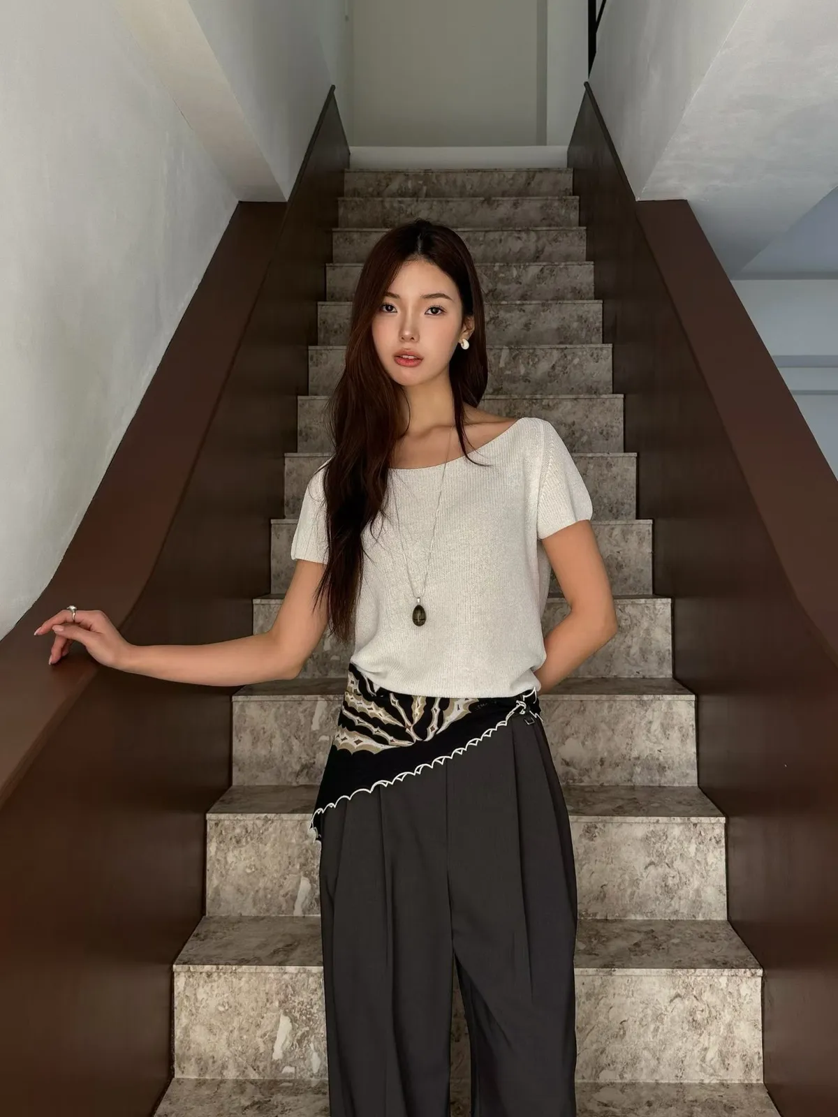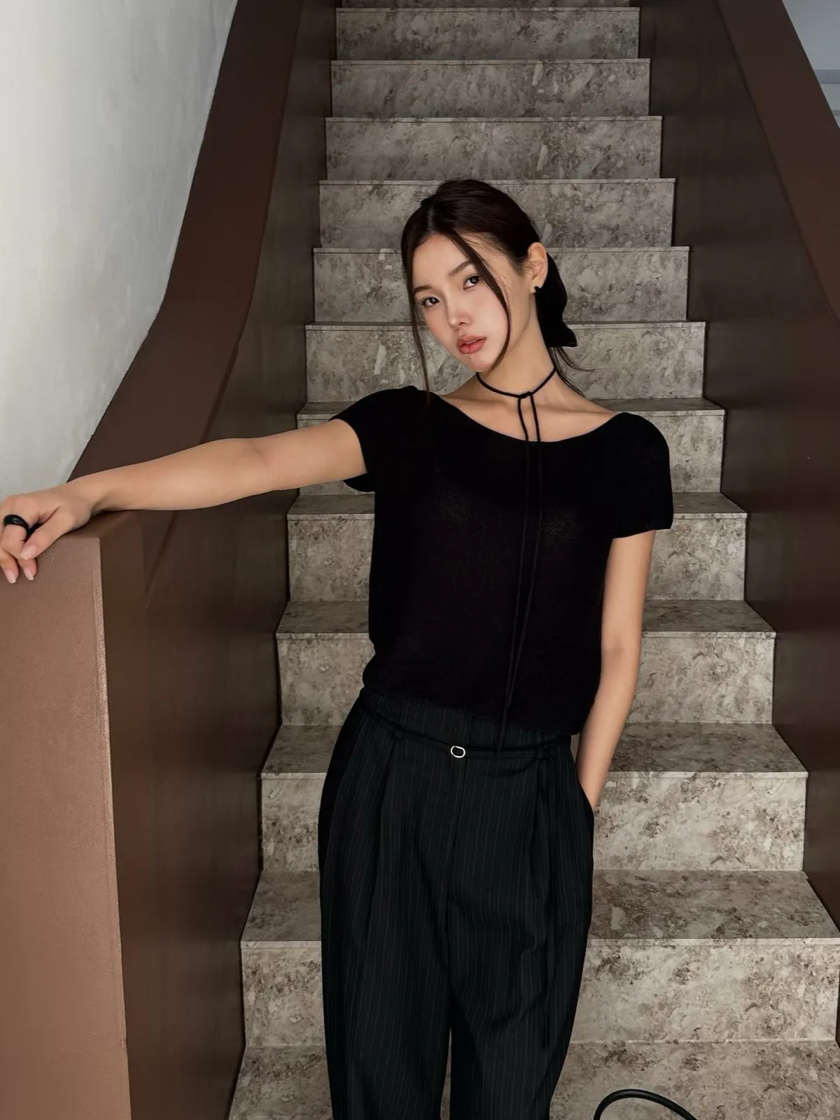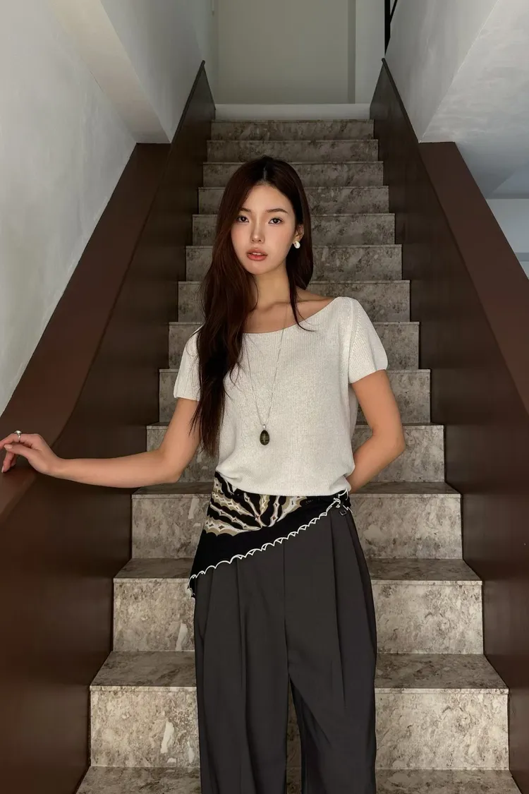 _N47. Korea 寬領繫帶針織上衣|涼紗款