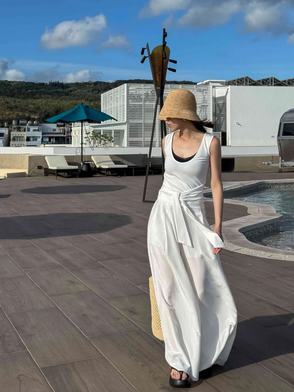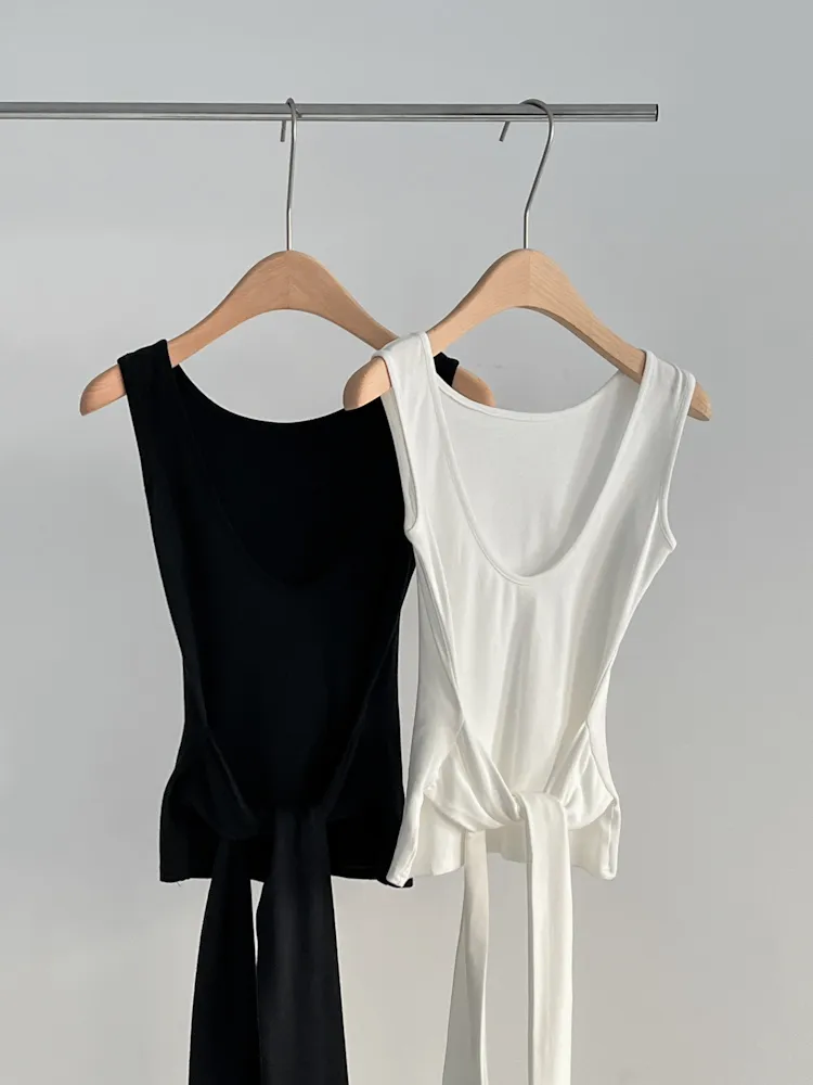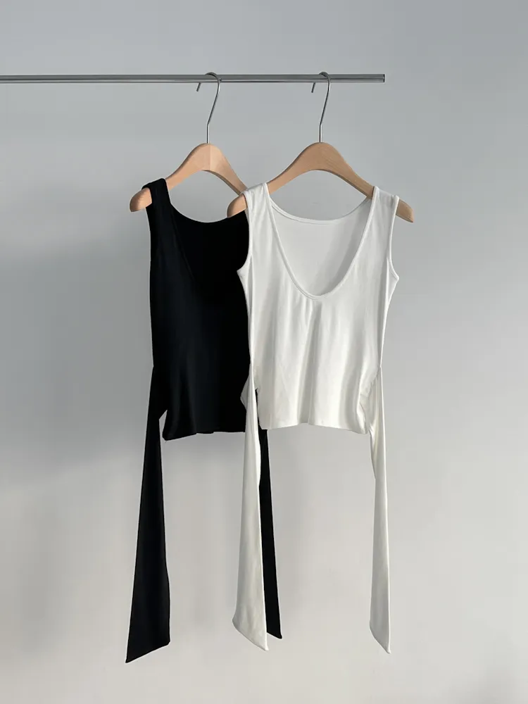 CC18. 度假感U領綁帶背心
