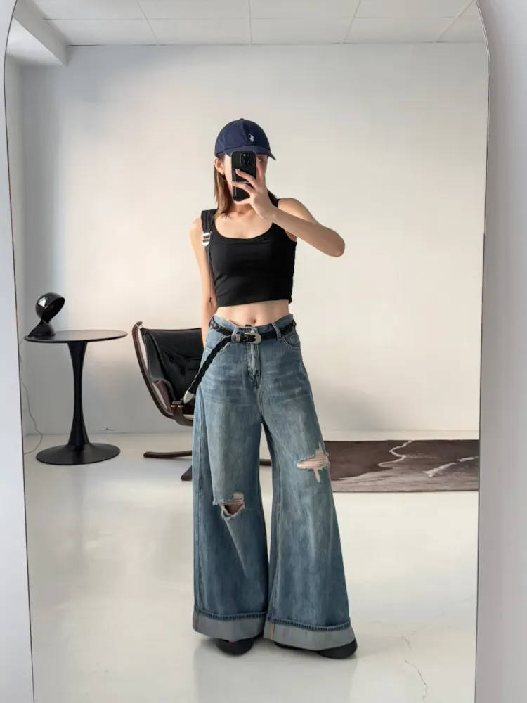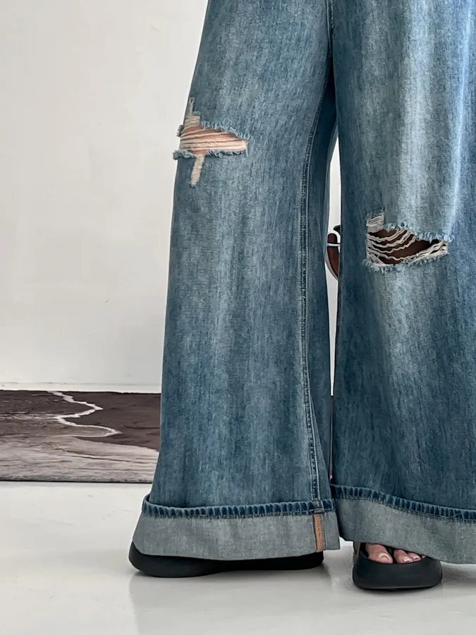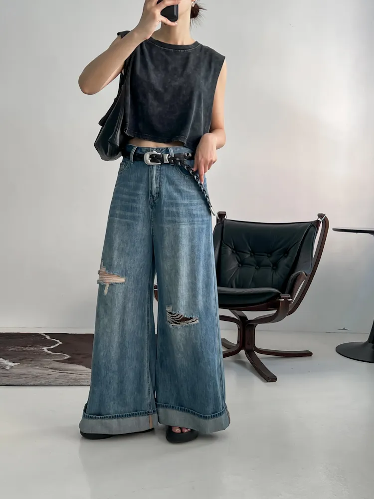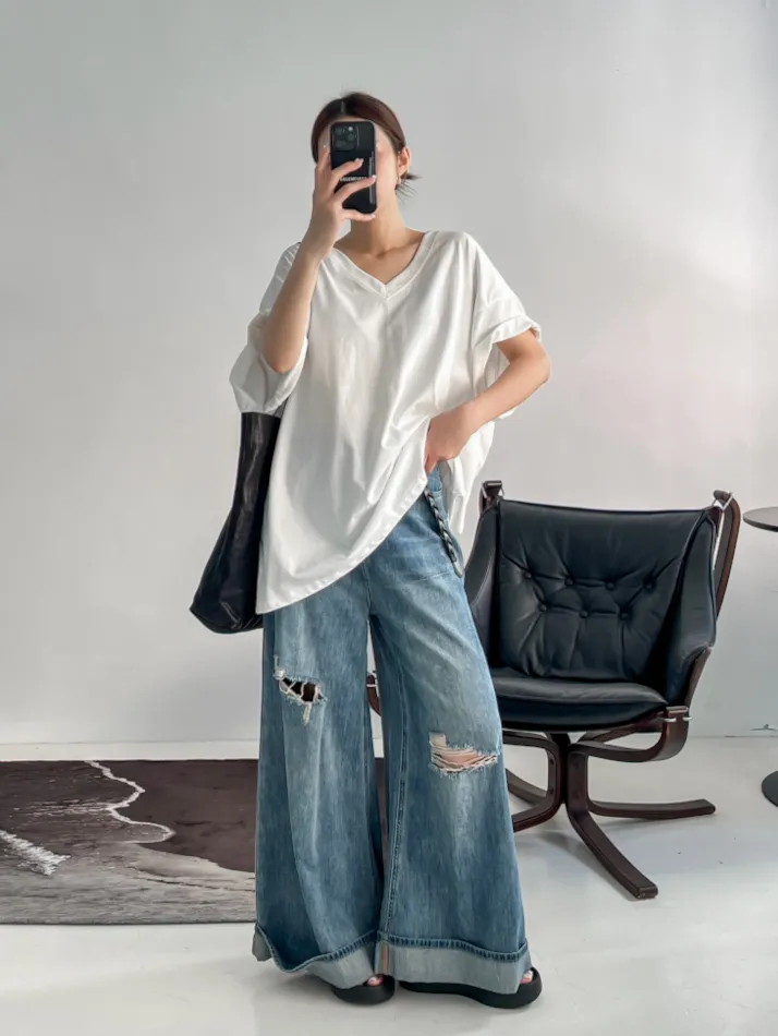 最近最愛的是這條版型好讚的牛仔破褲