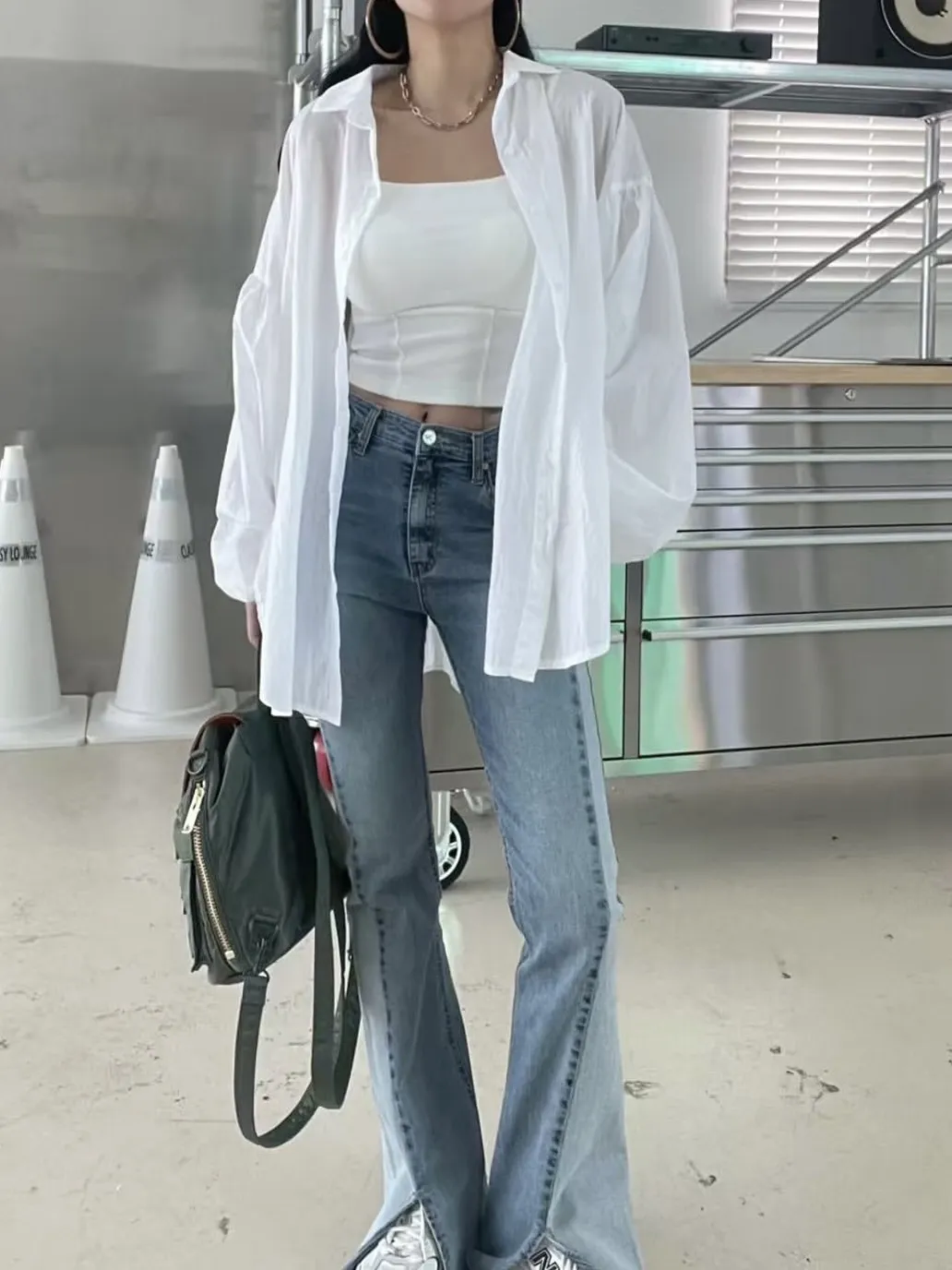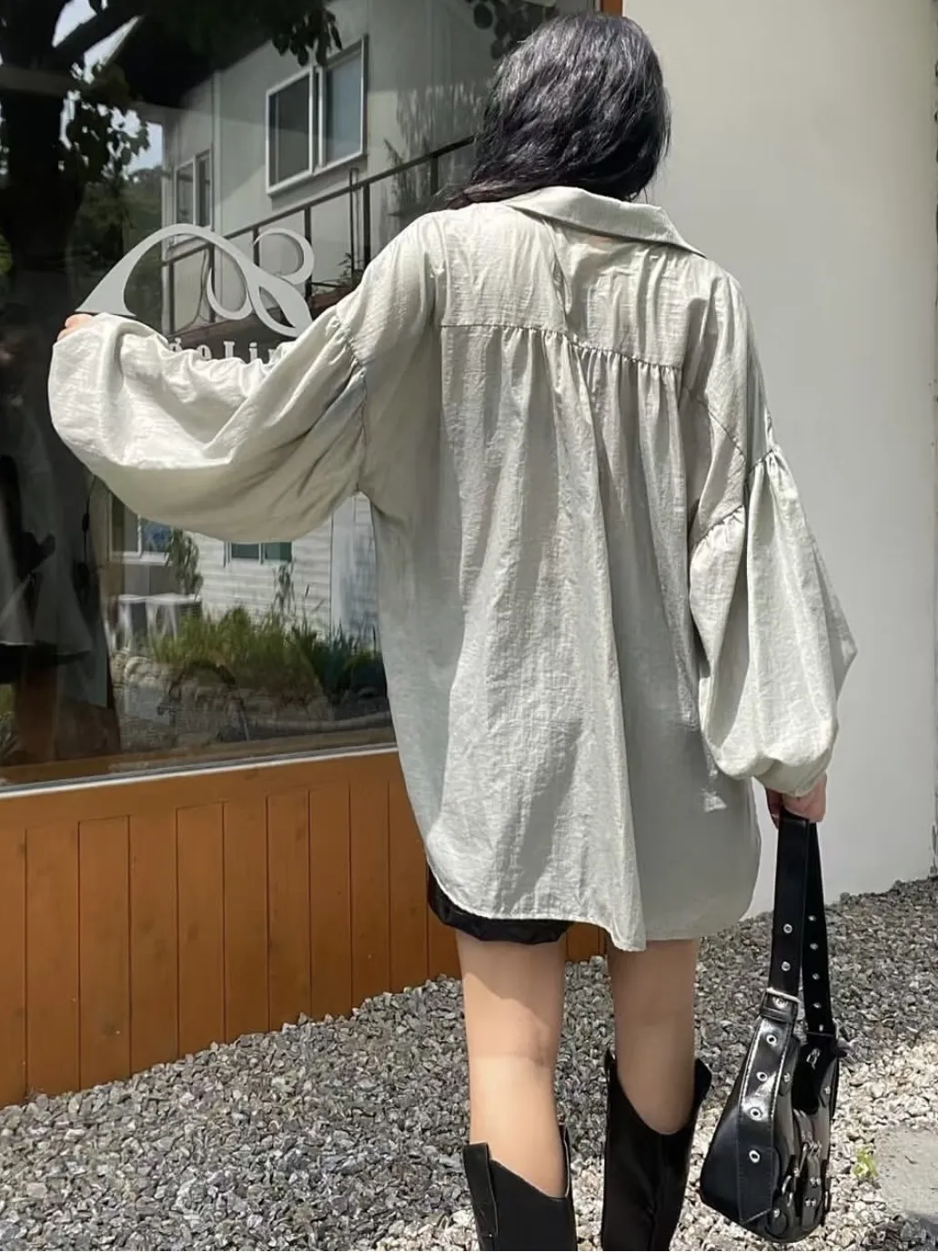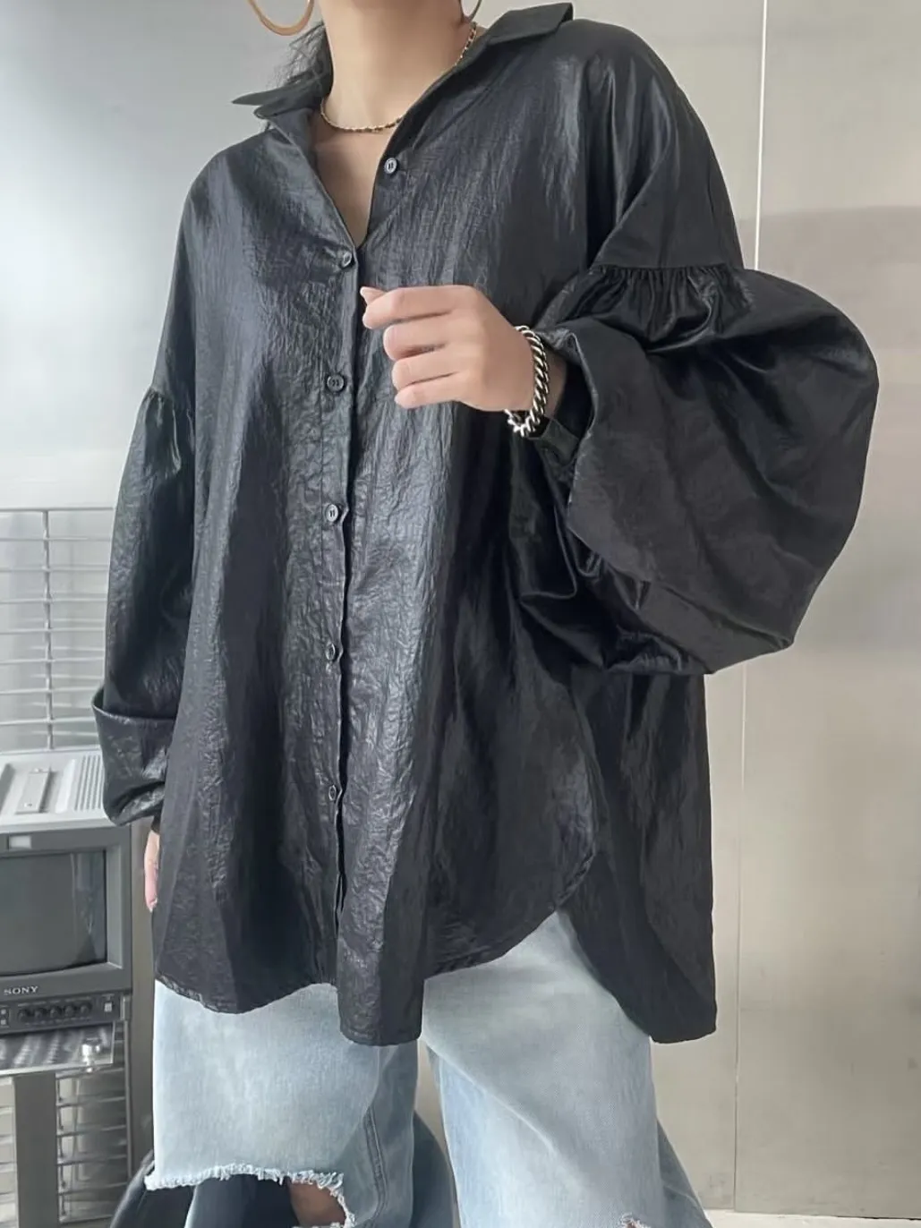 LG01. 光澤感蓬袖襯衫 /SALE/