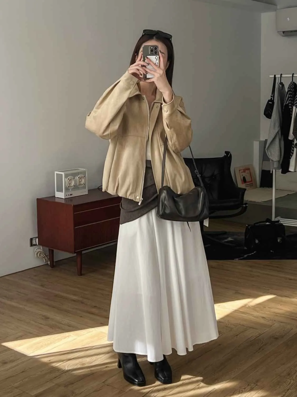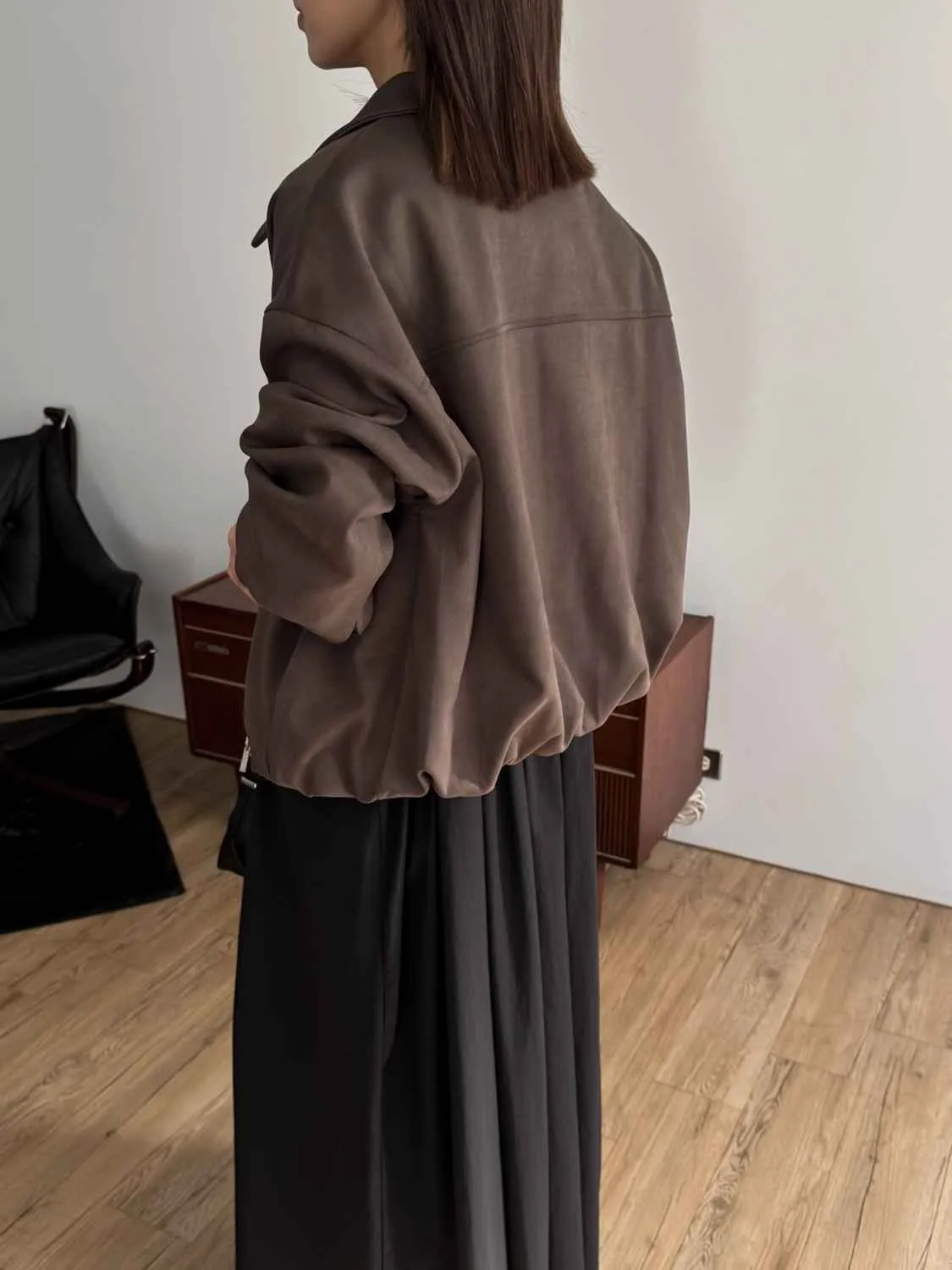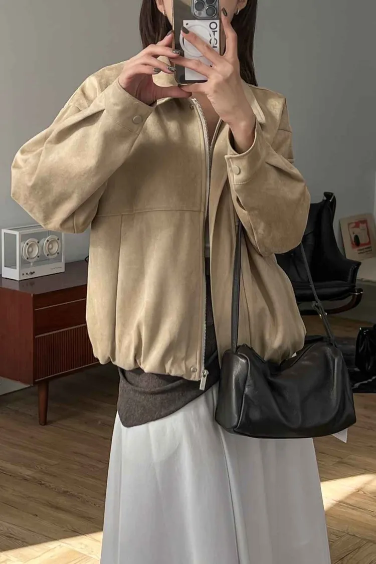 _D07. 蓬蓬下擺超柔軟麂皮外套