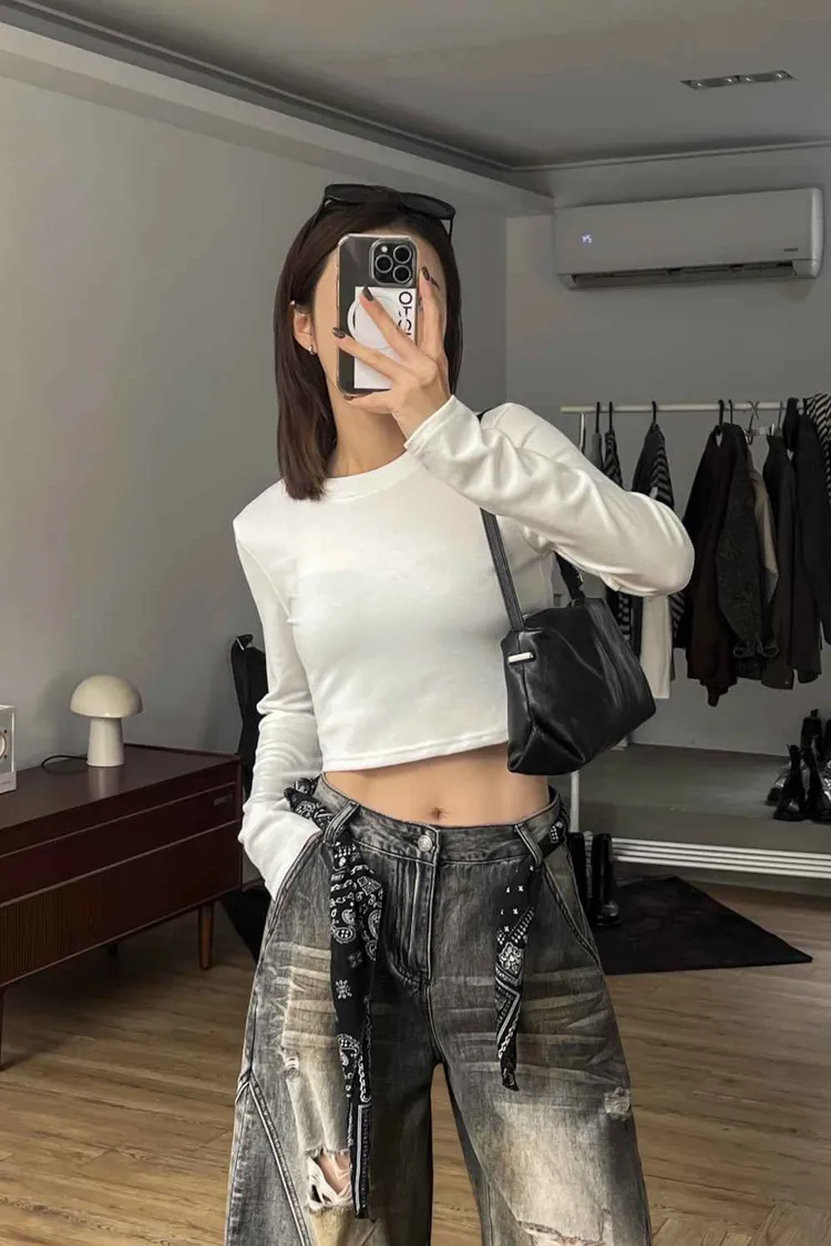 因為姊姊自己很常用這樣的短上衣作穿搭