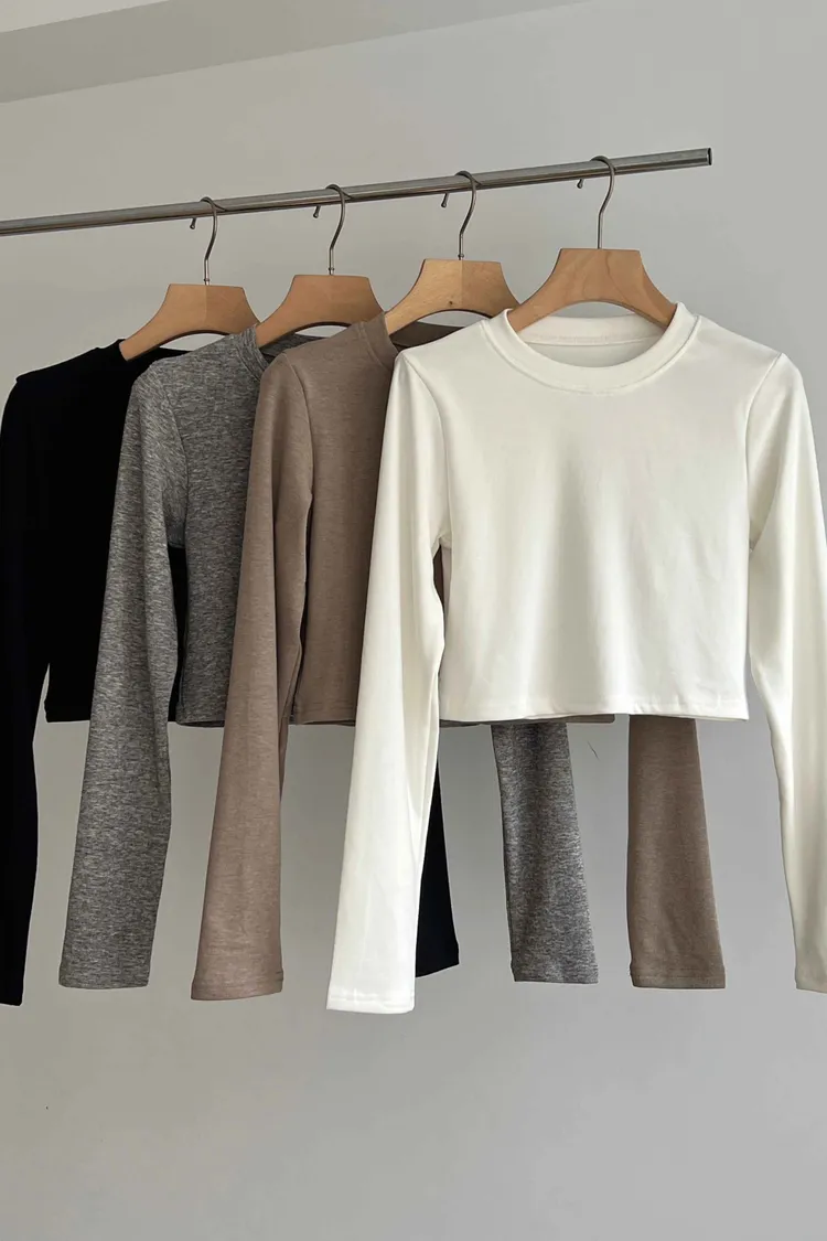 _D31. 必買!彈力磨毛合身短版Tee
