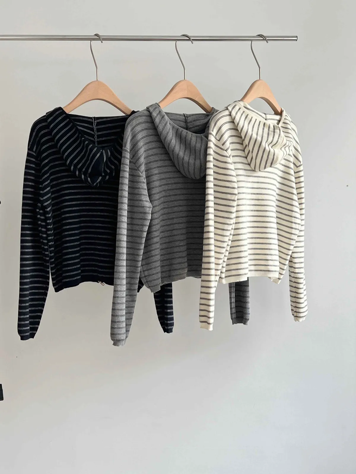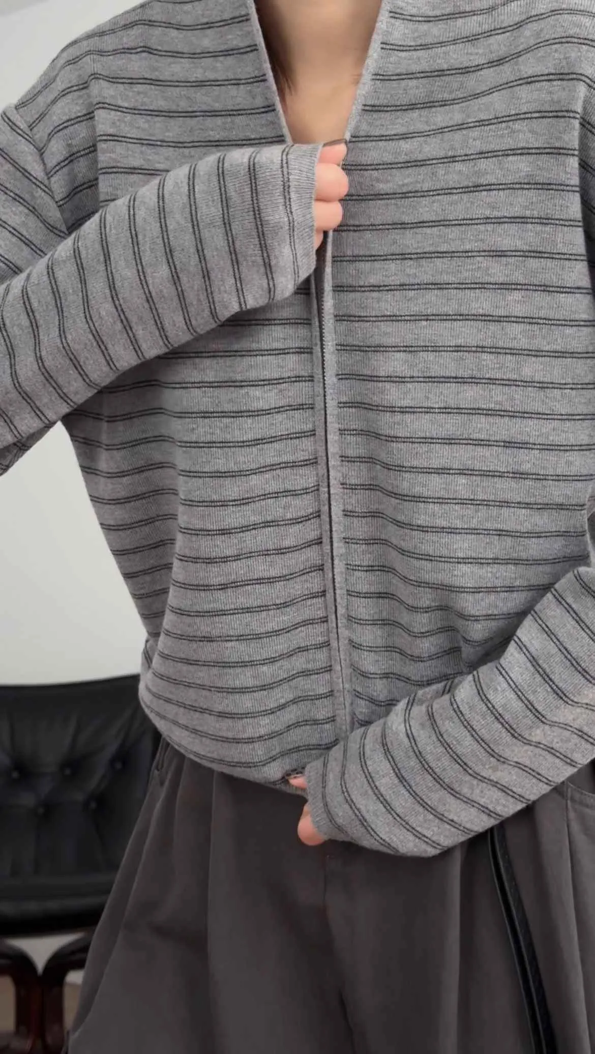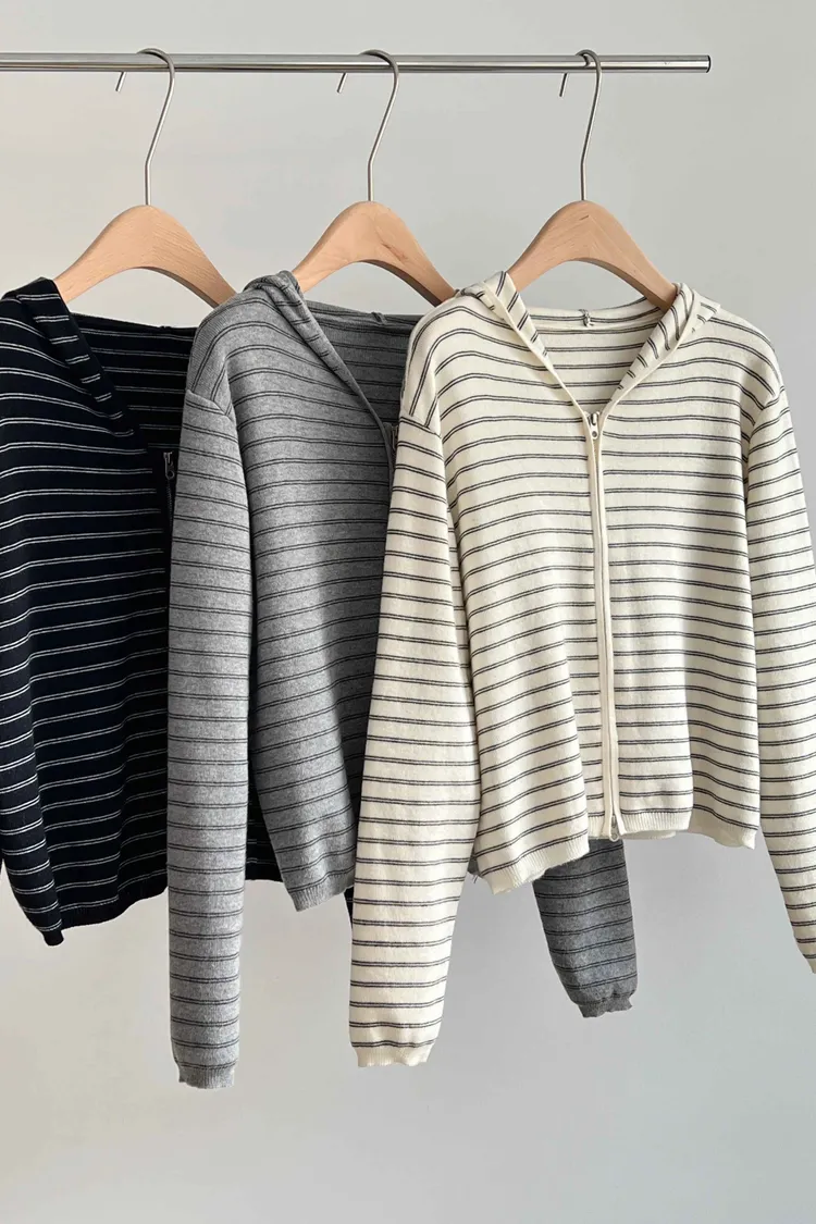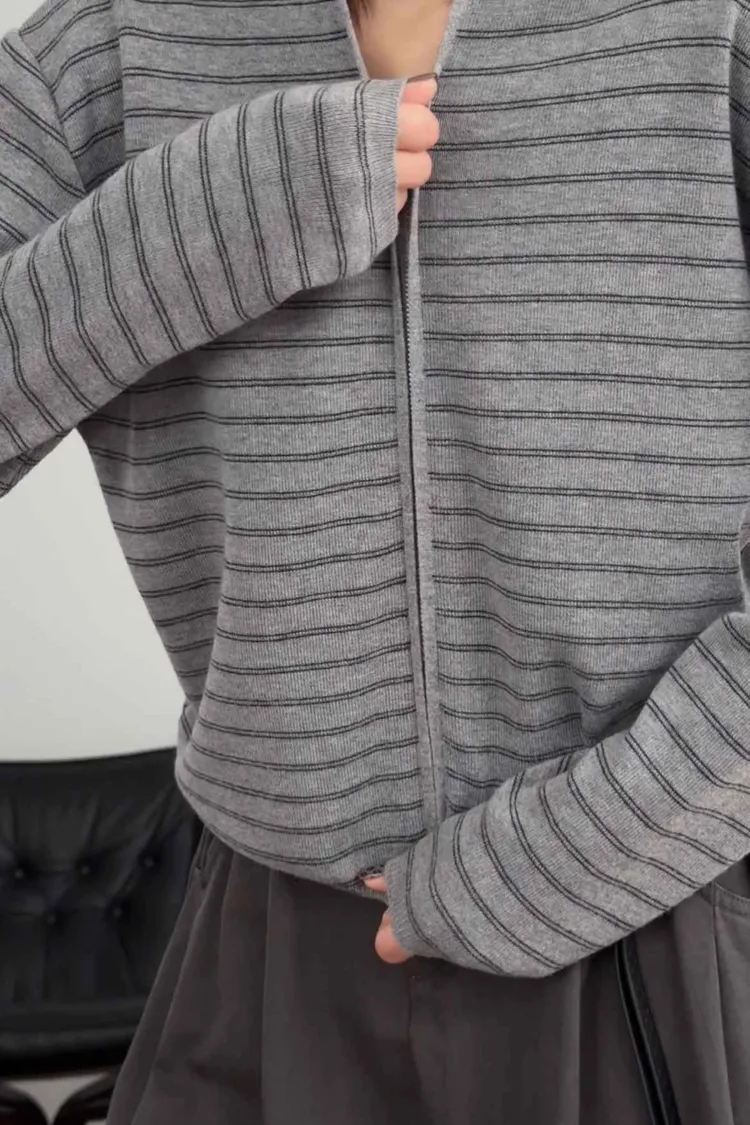 _D08. 親膚.條紋毛料雙拉鍊連帽外套