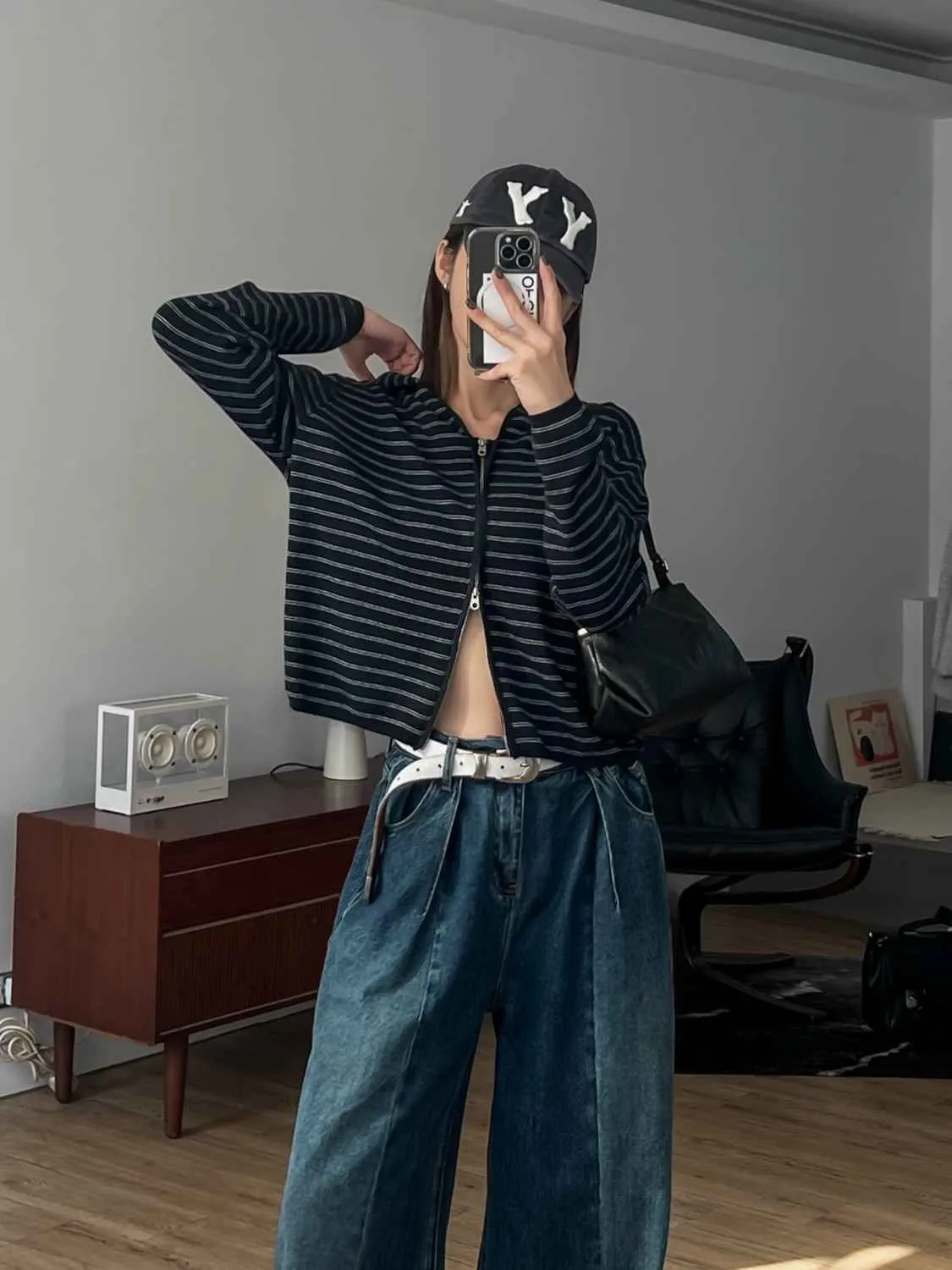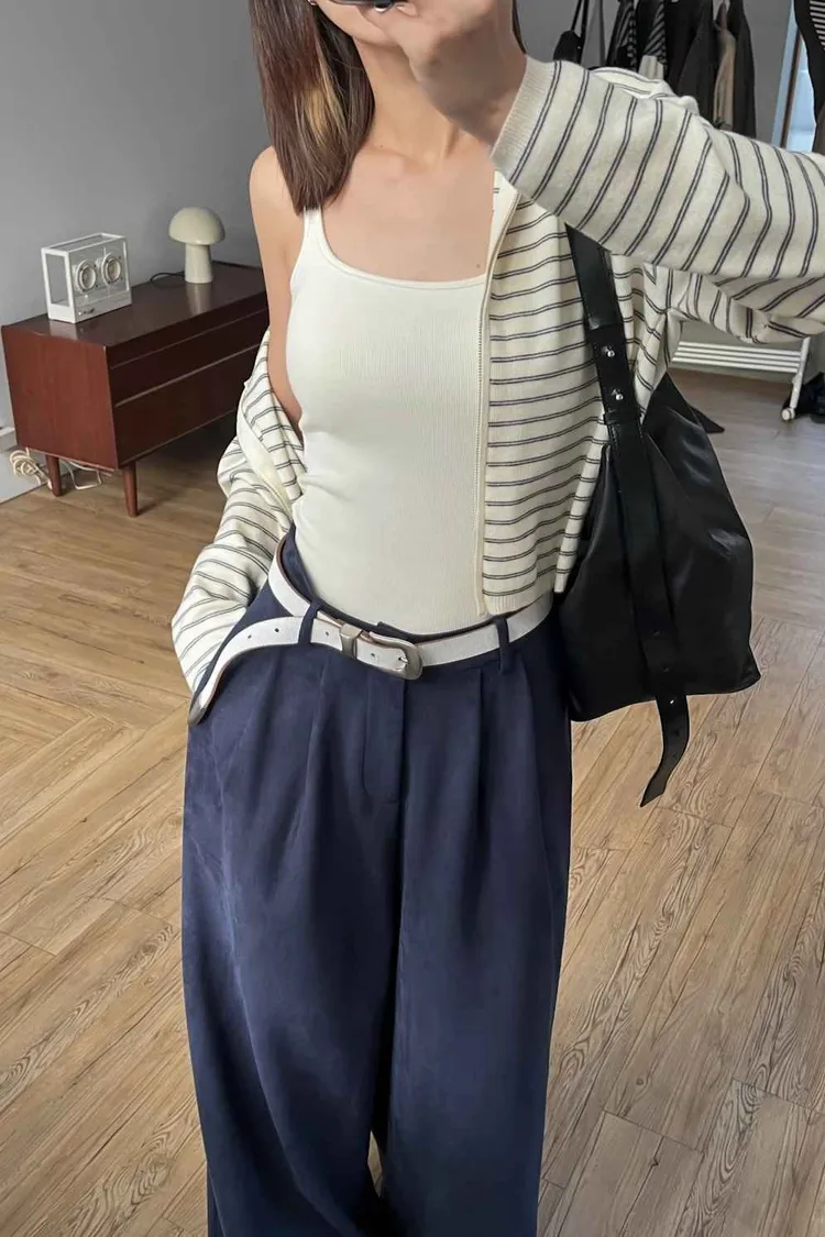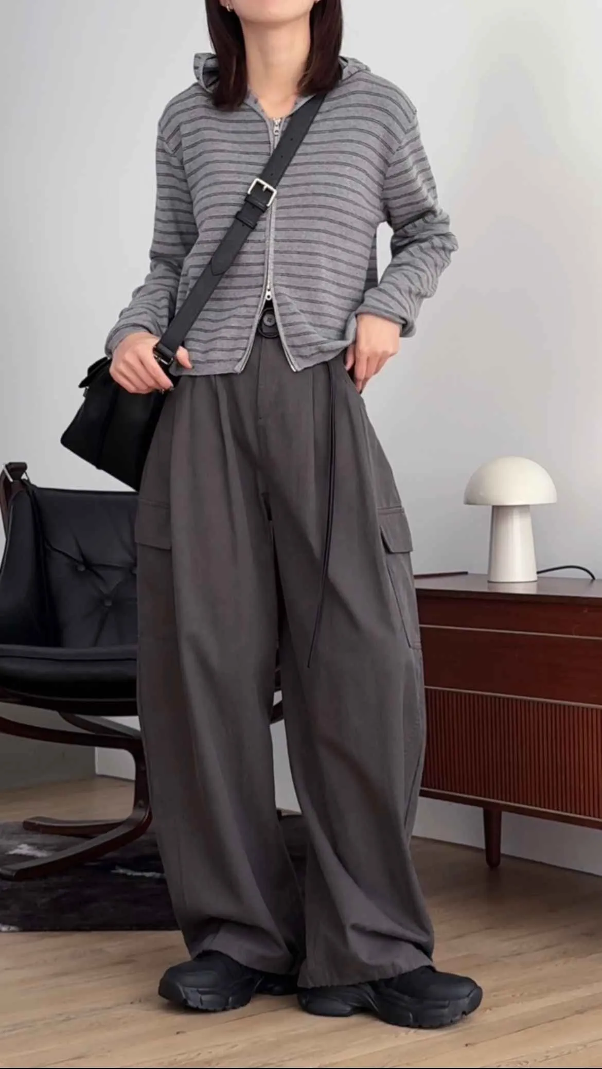 _D08. 親膚.條紋毛料雙拉鍊連帽外套