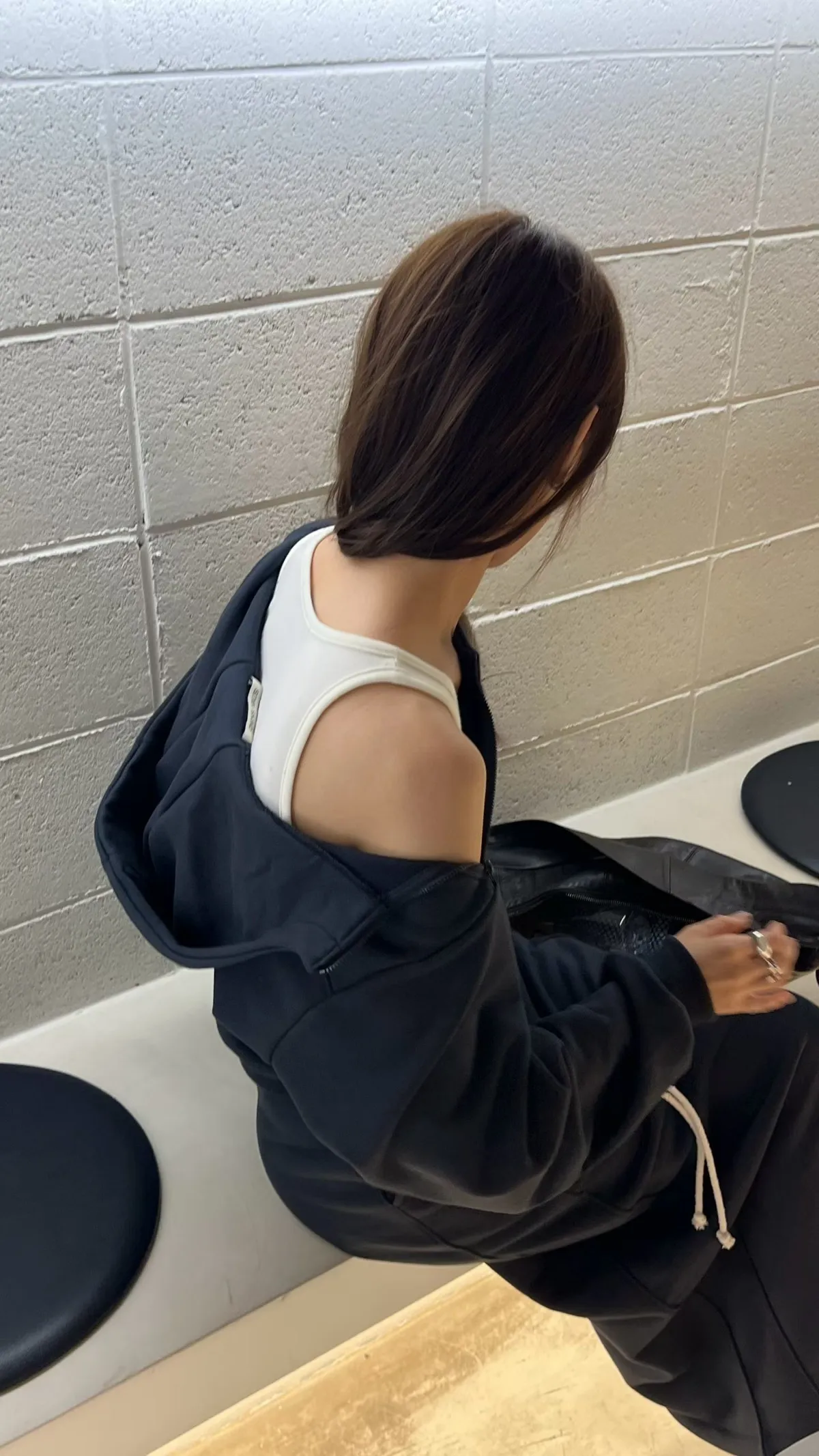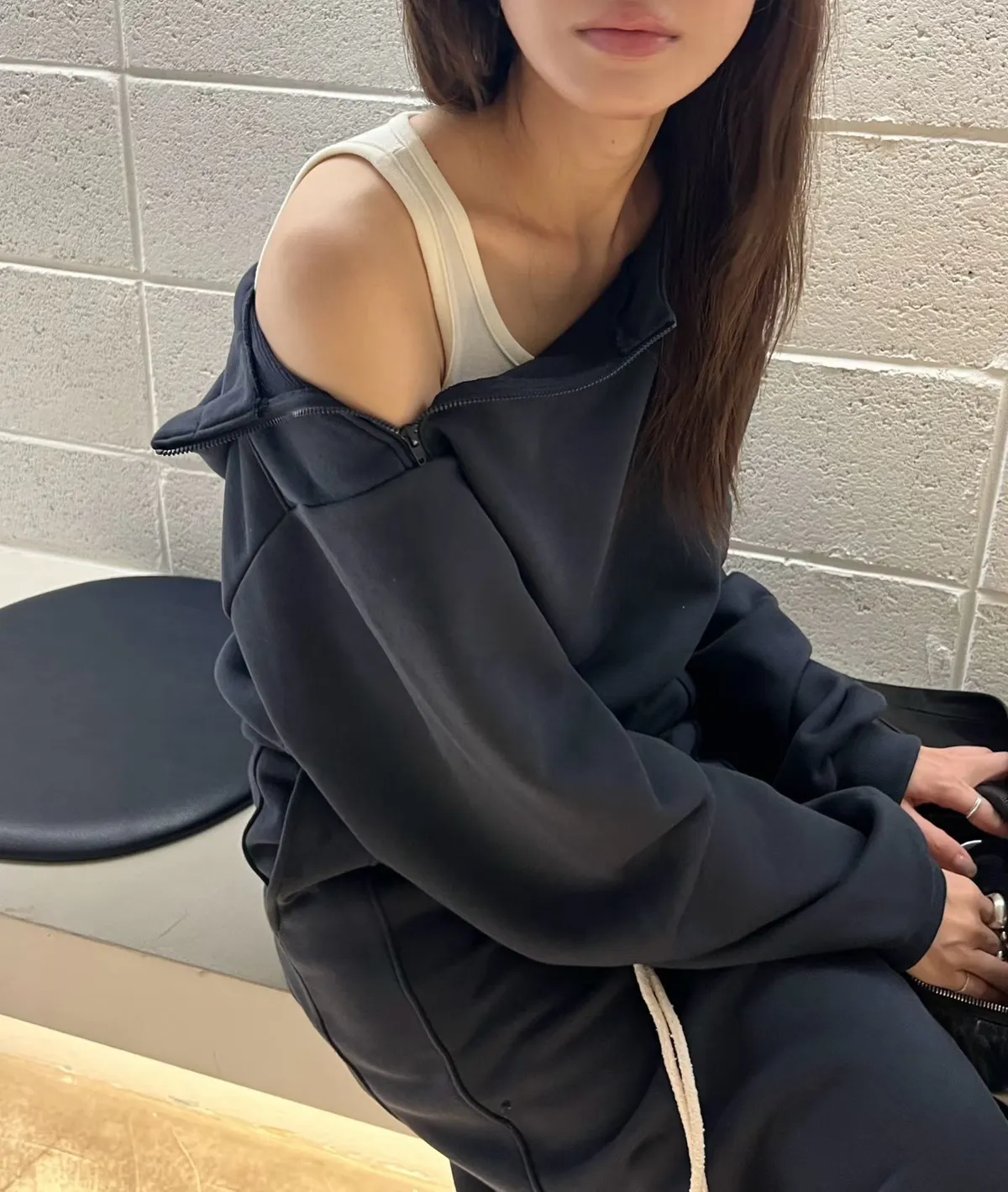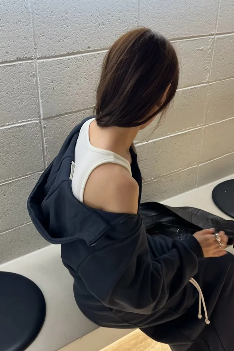 帽Tee的拉鍊設計可以作斜肩的造型超好看