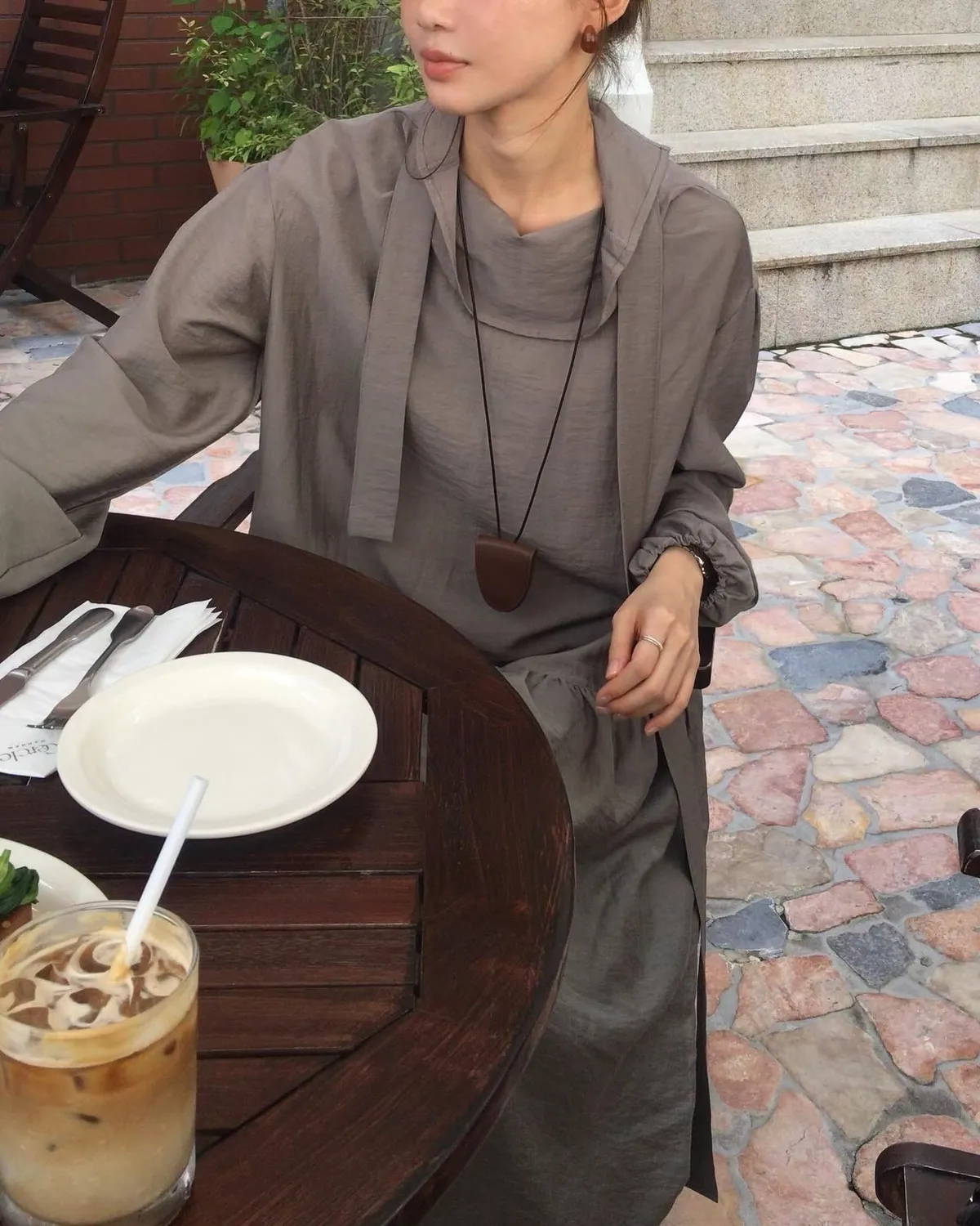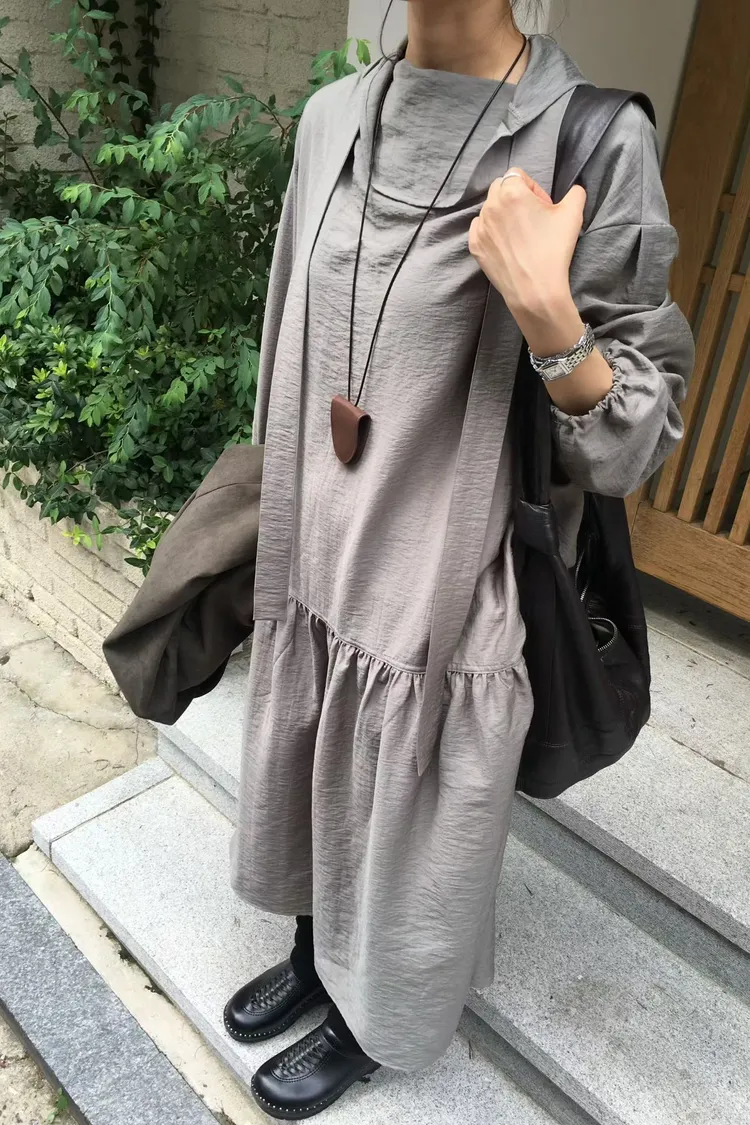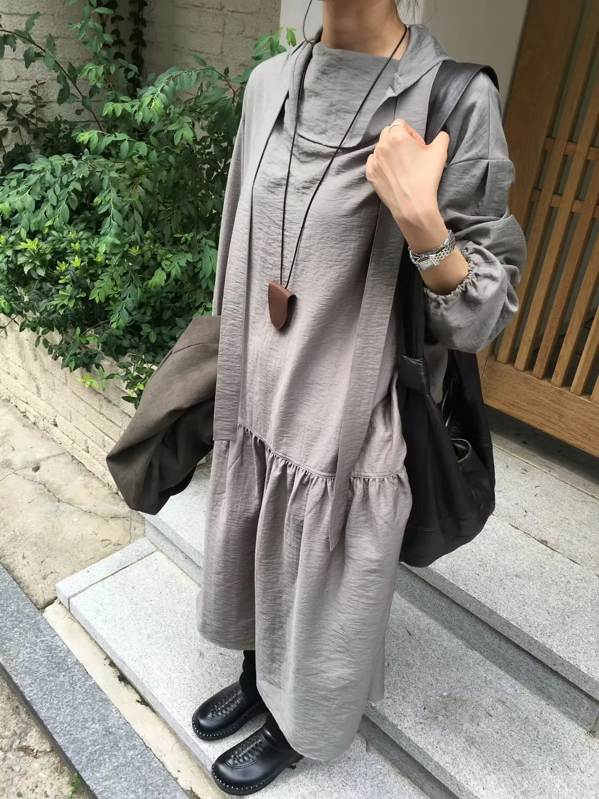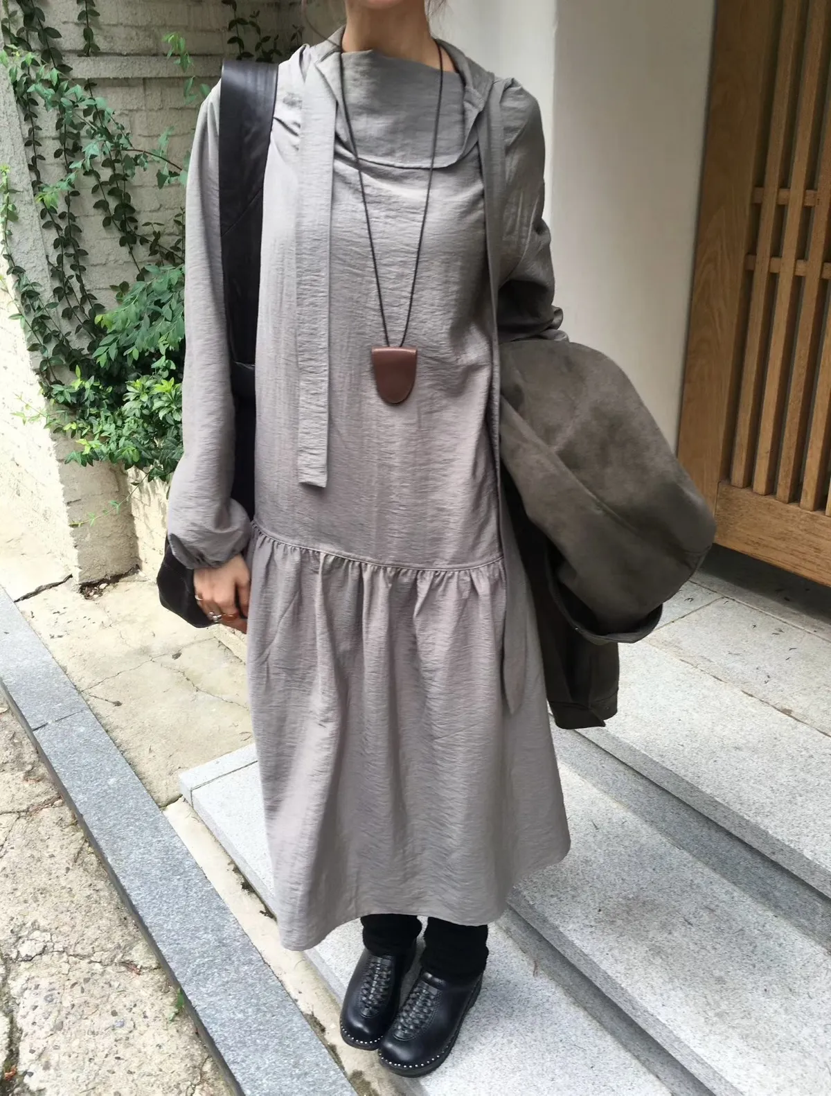 _E35. Korea 垂墜絲料飄飄連身洋裝