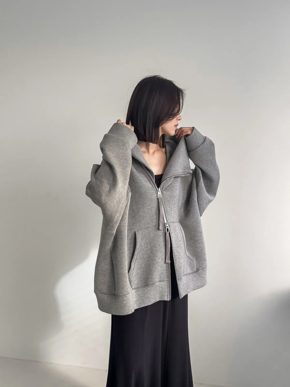 全部拉上是很挺的樣子 打開也是漂亮的大翻領 超級好看!!