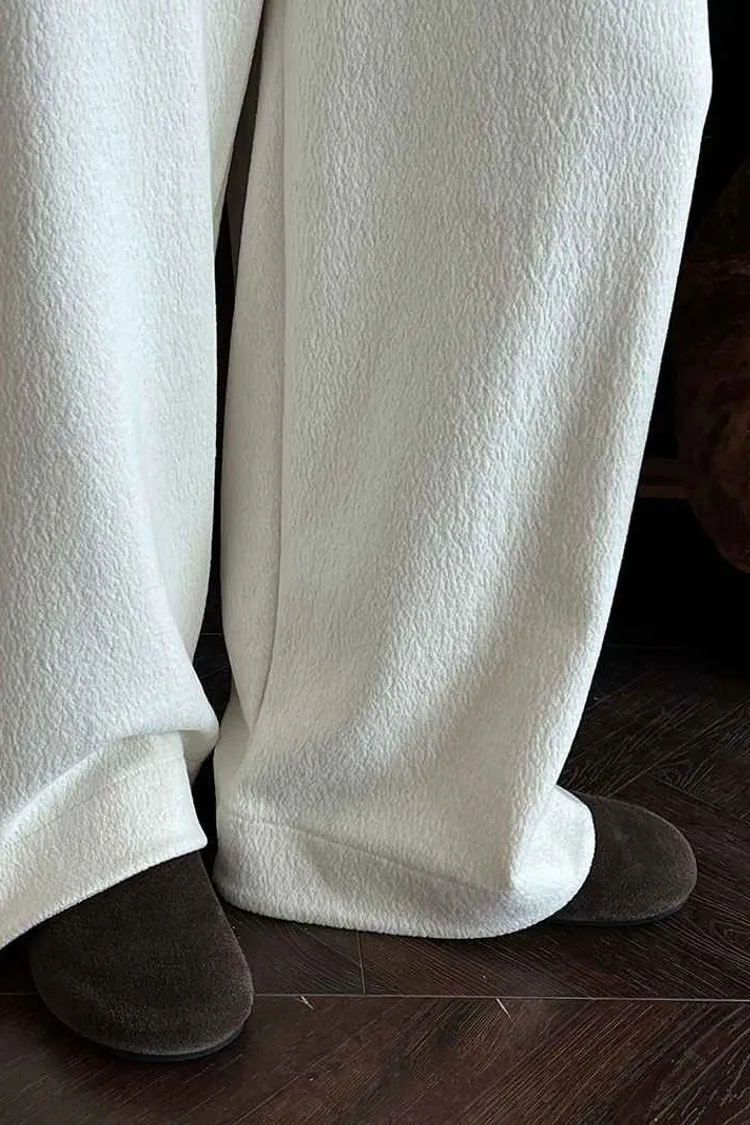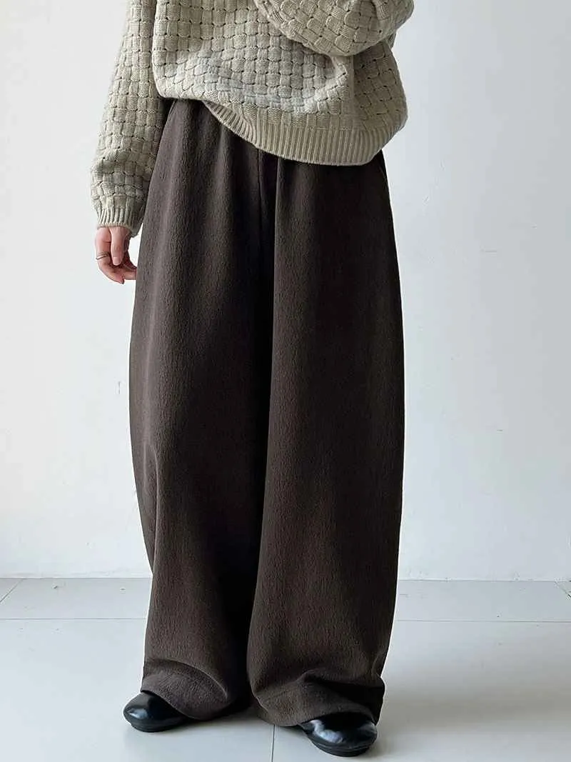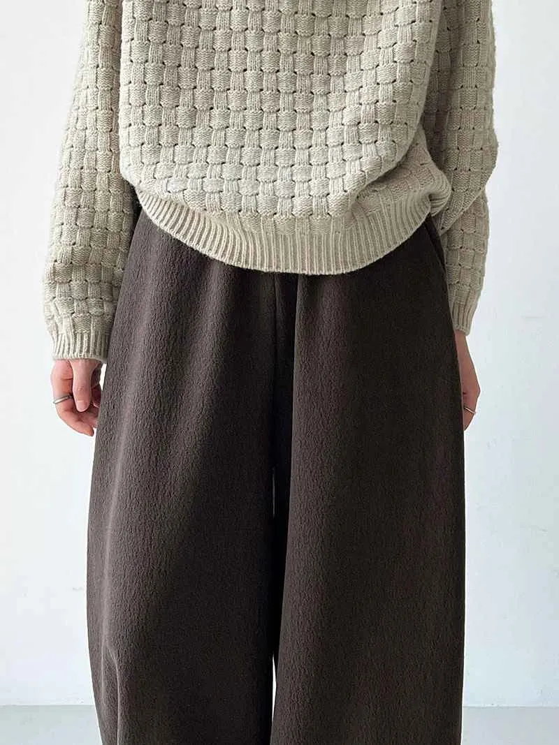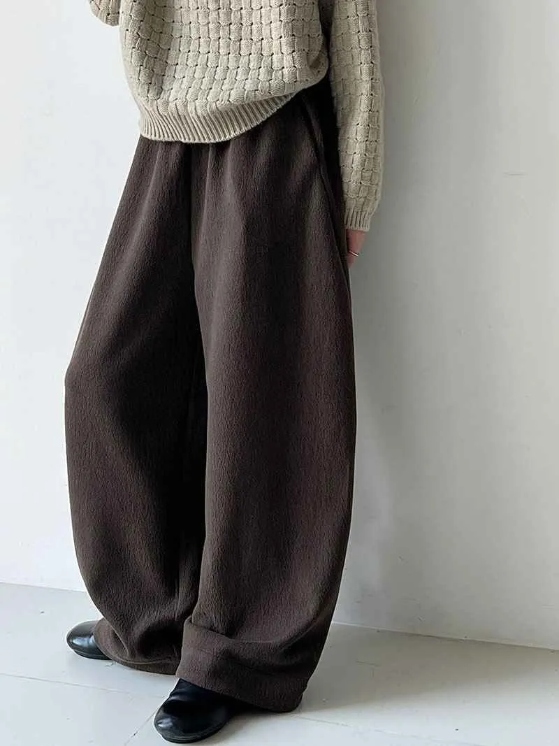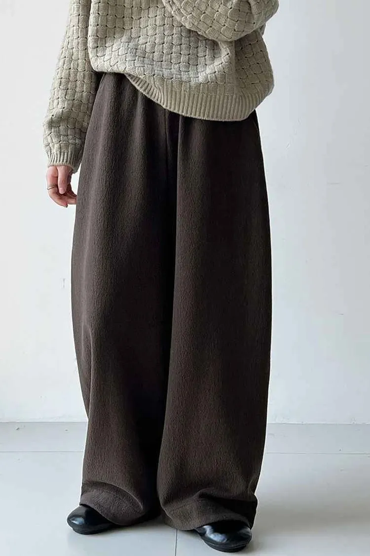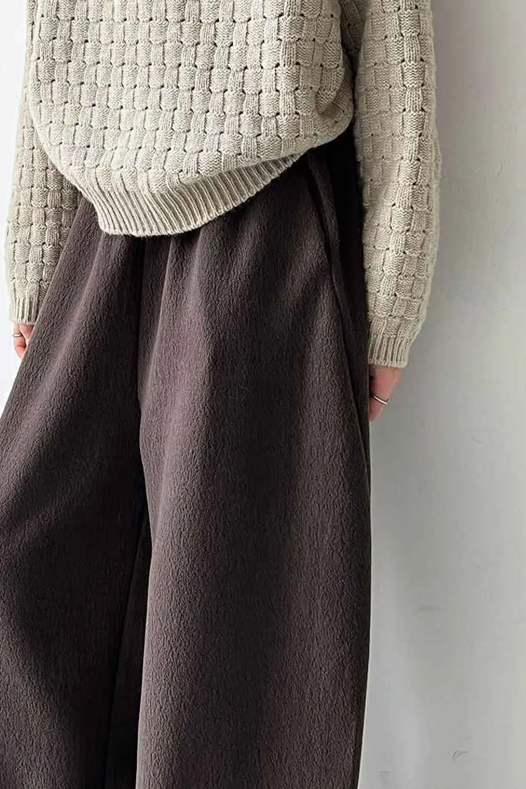 _F03.微刷絨.厚質紋理寬鬆直筒長褲