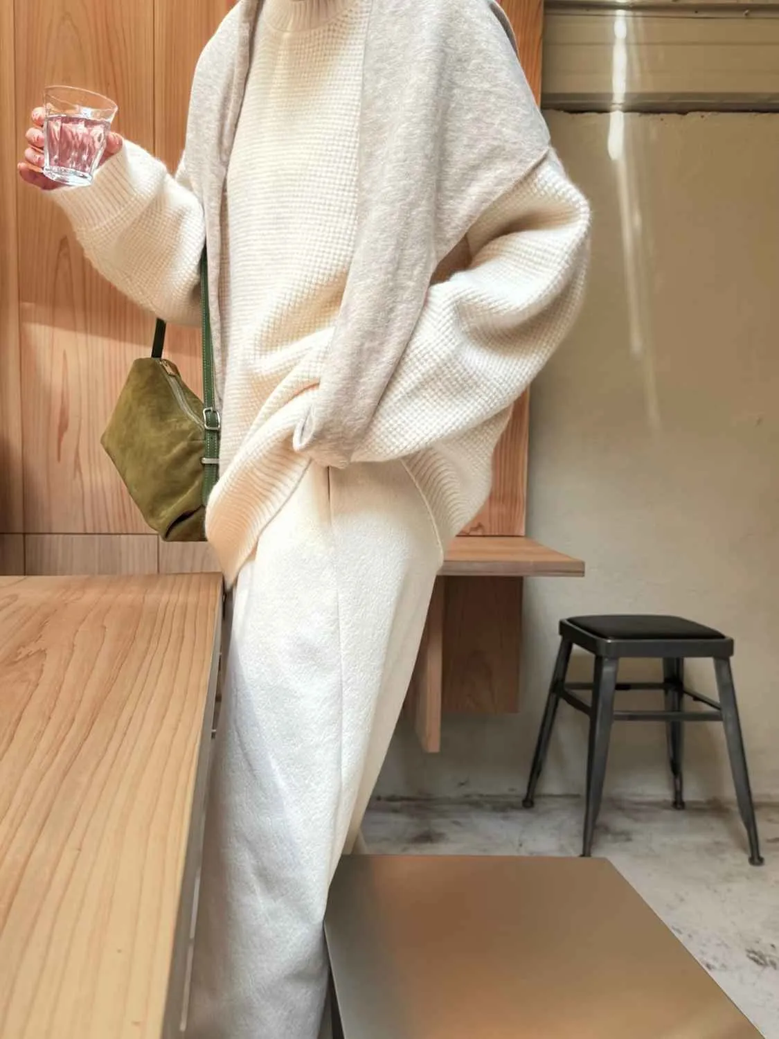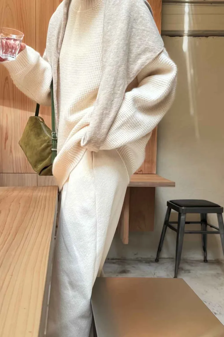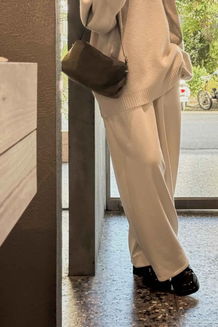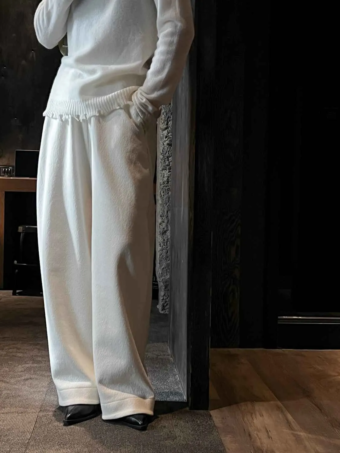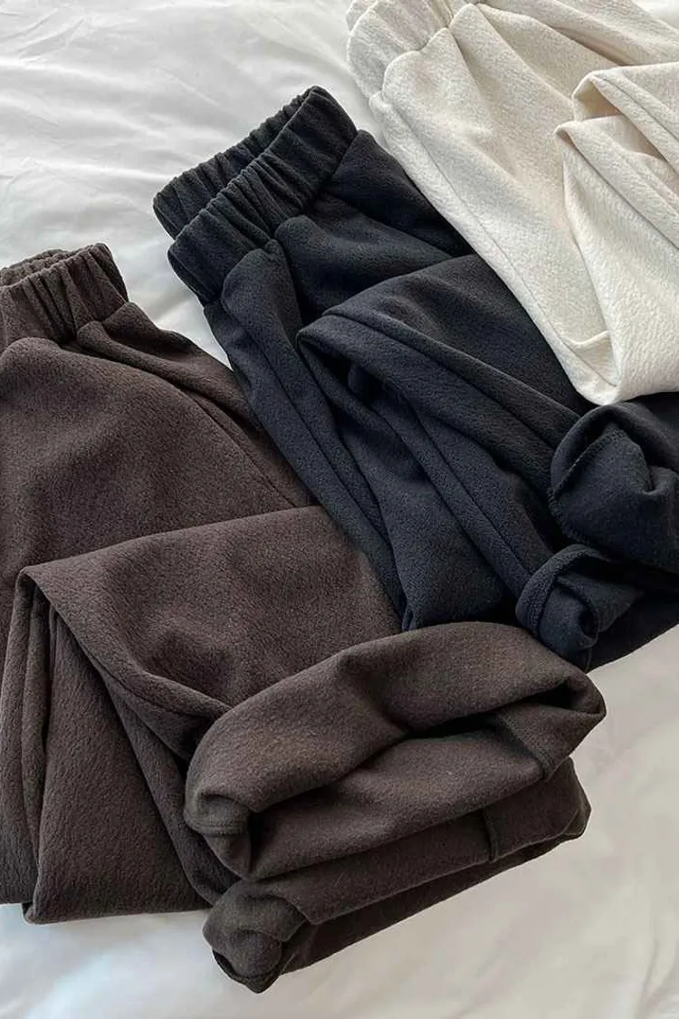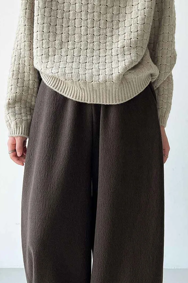 _F03.微刷絨.厚質紋理寬鬆直筒長褲