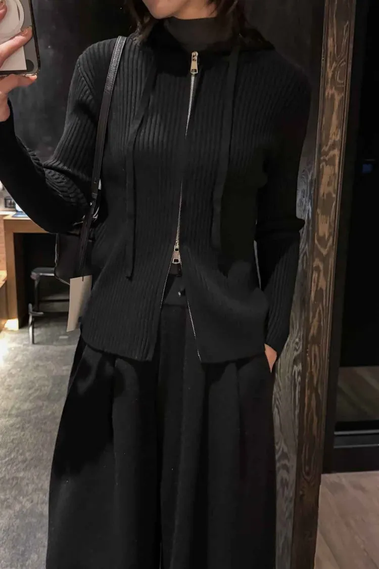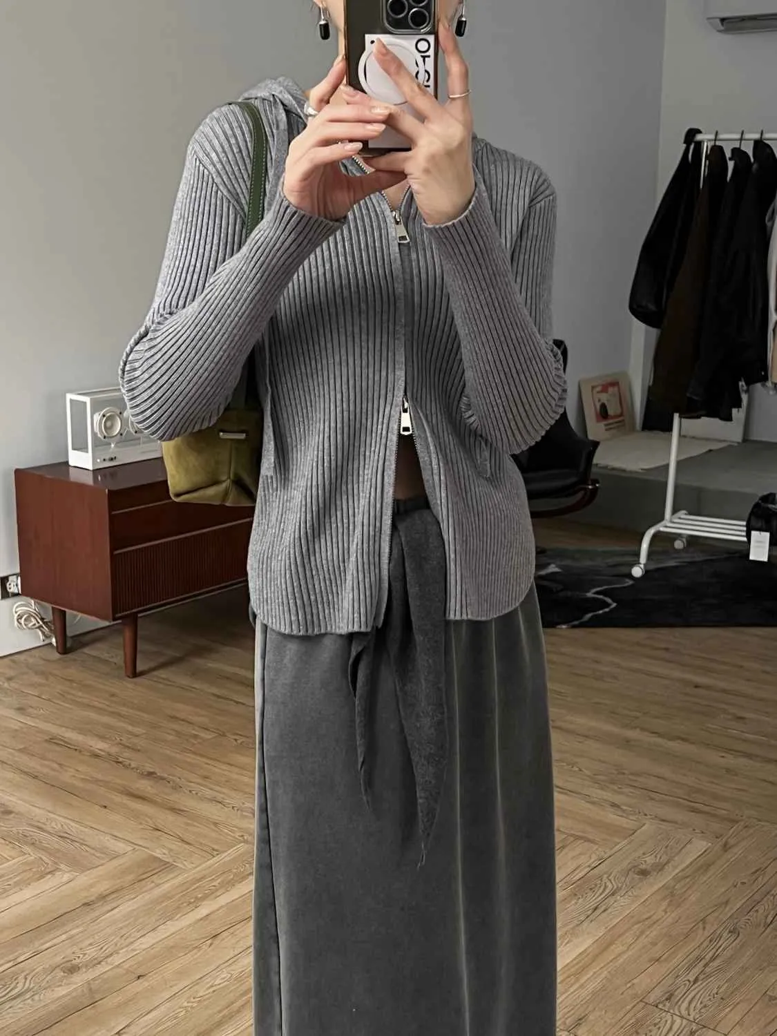 _F18. 超柔軟.雙拉鍊合身毛料連帽外套