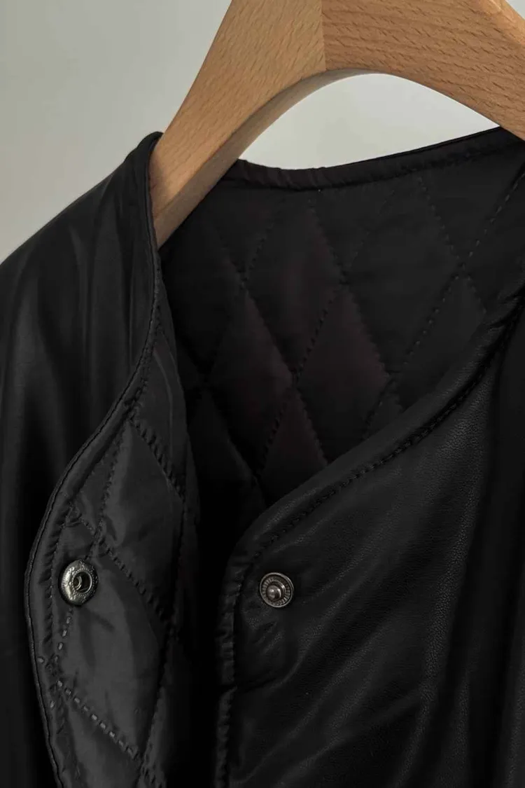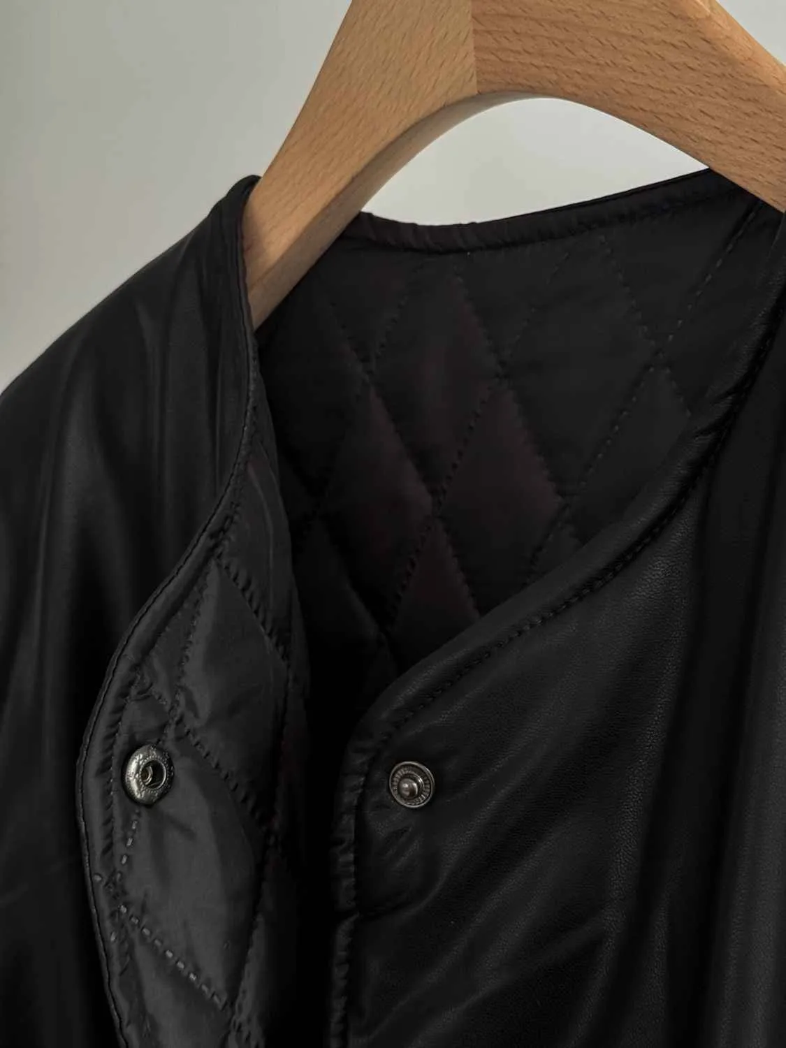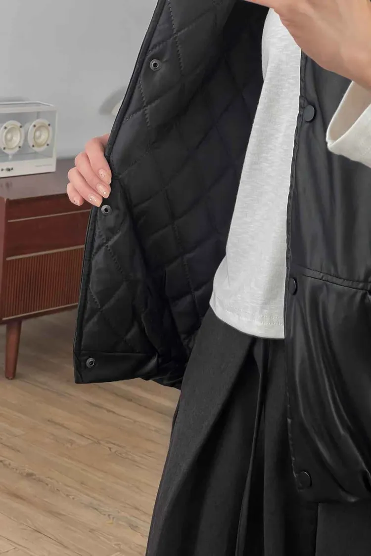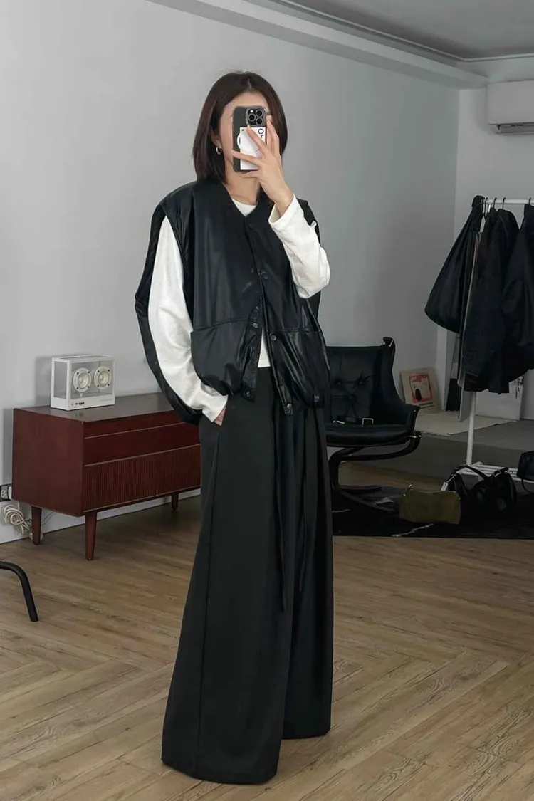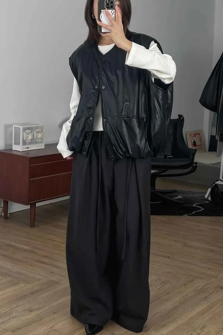 _F20.超輕量.黑色夾棉保暖皮質大背心