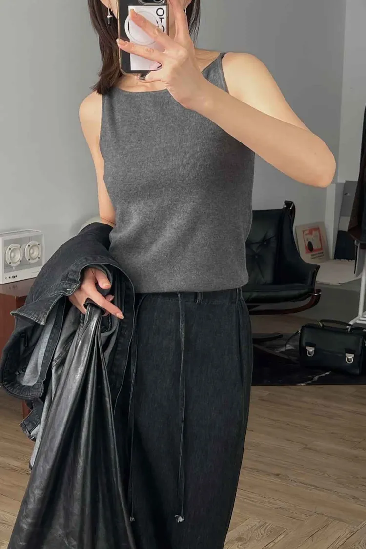 _F24. 好美.氣質削肩毛料背心