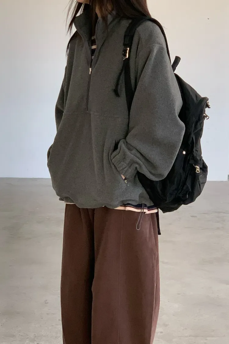 _G01. Korea 超輕量!小姐姐半拉鍊搖粒絨保暖上衣