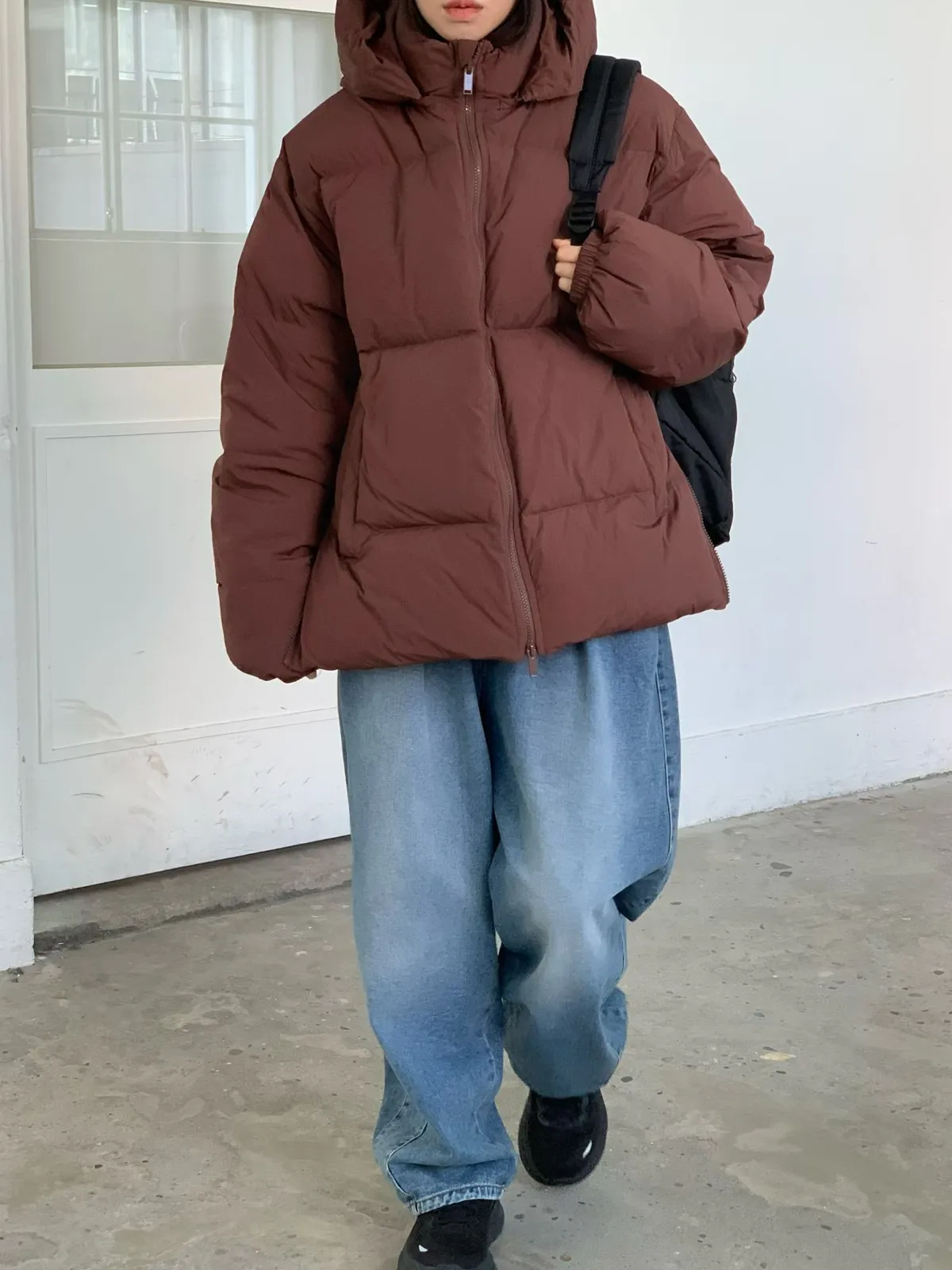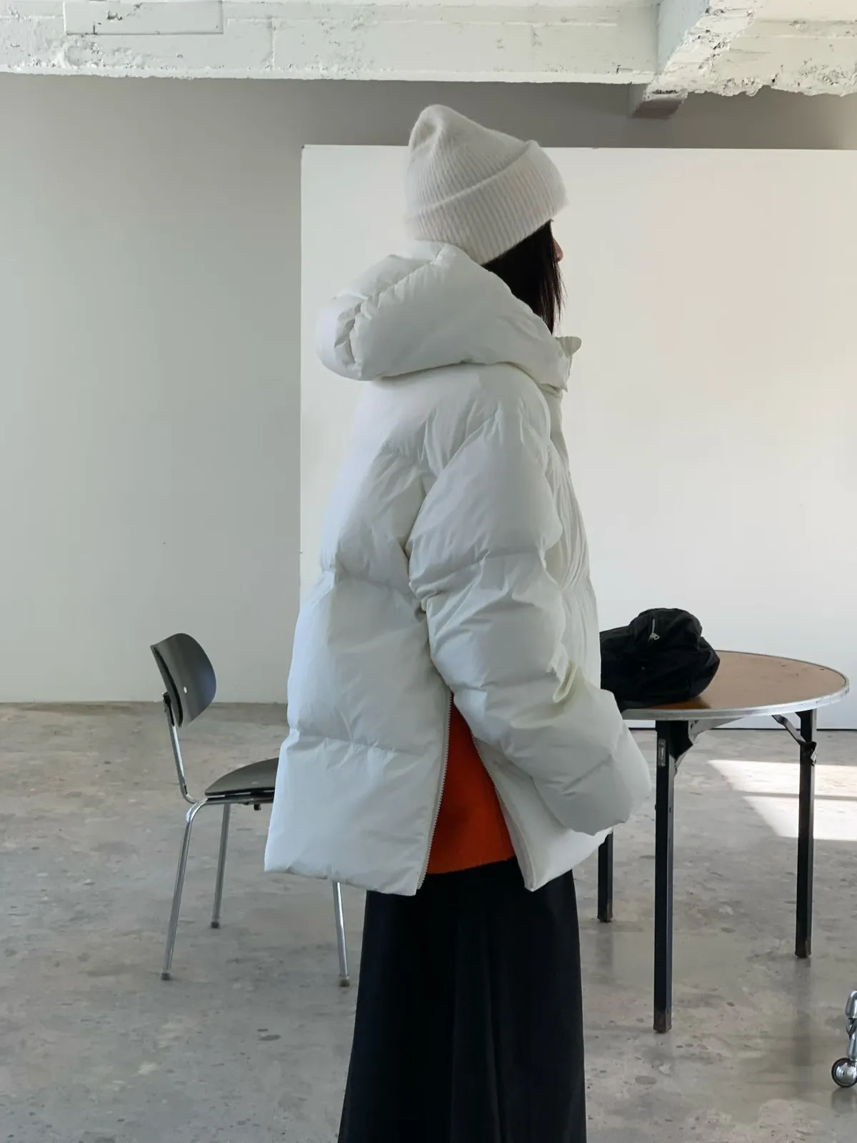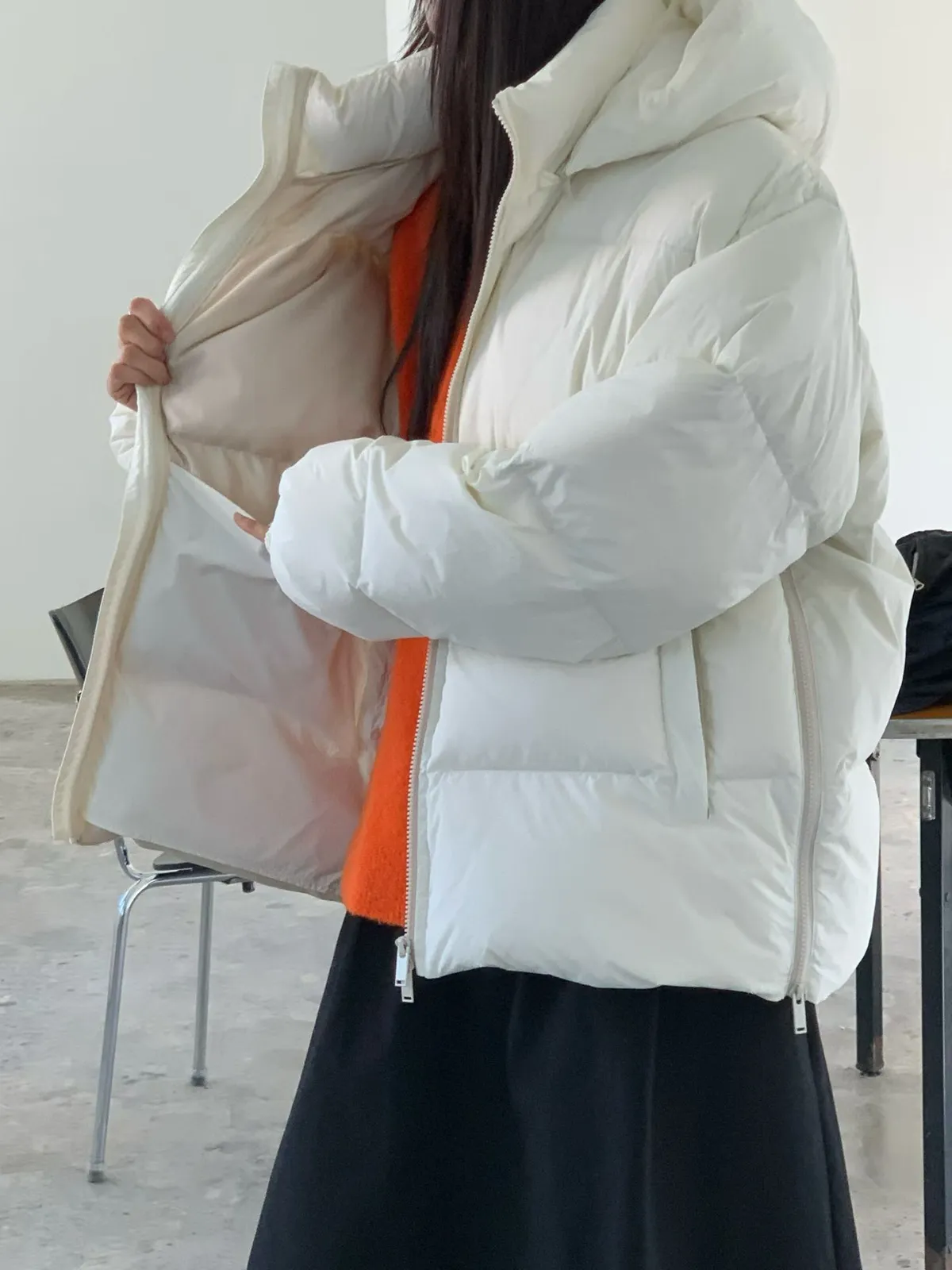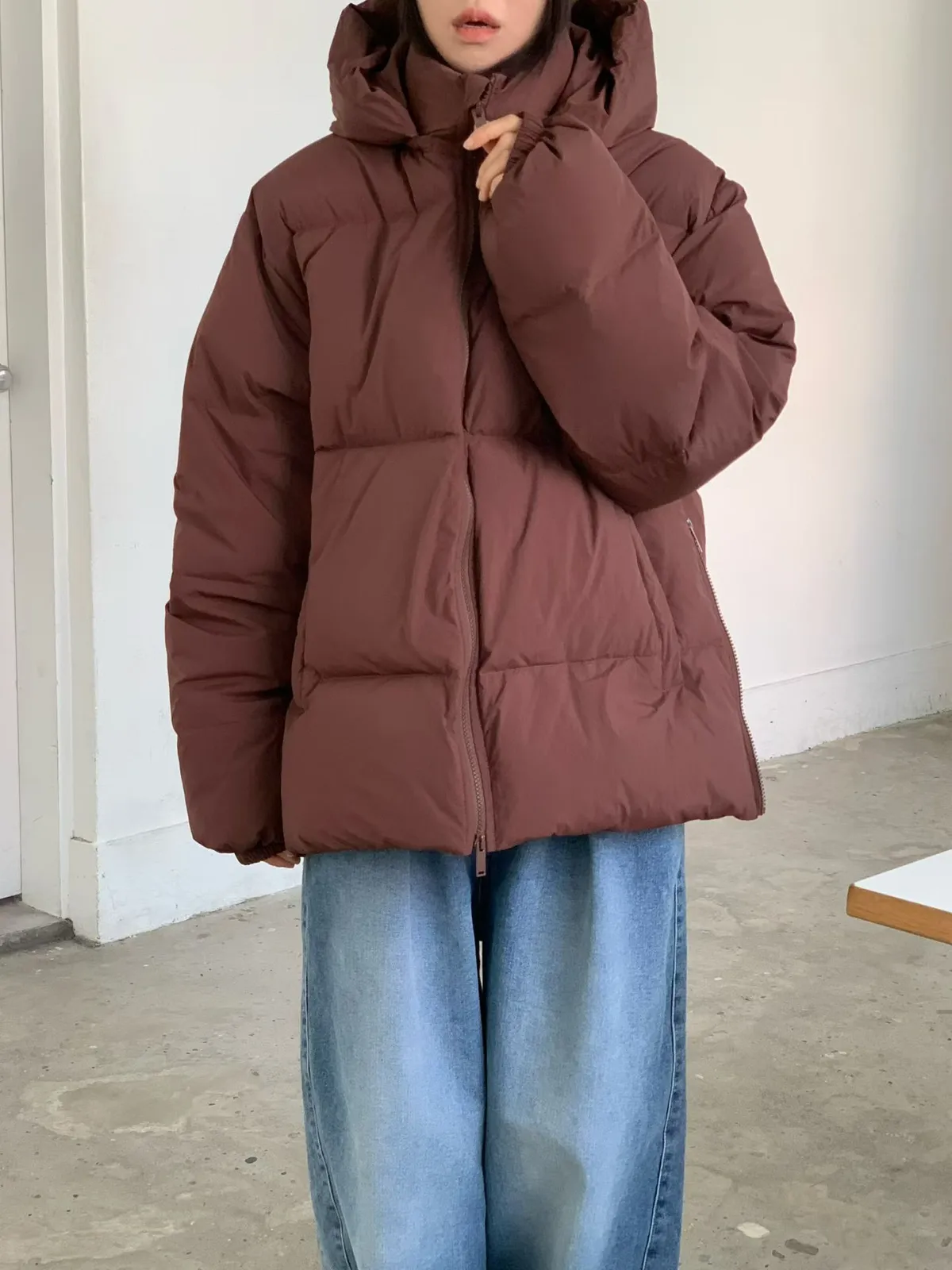 _G08. Korea 100%超保暖.全羽絨長版連帽外套|連帽可拆