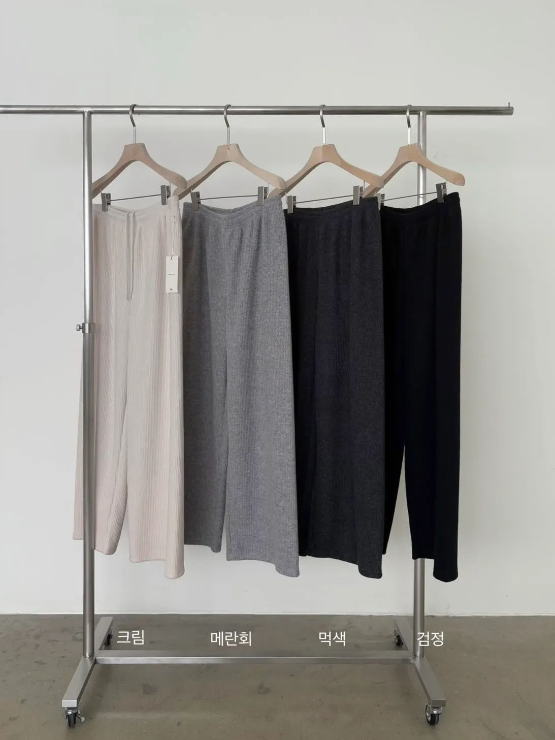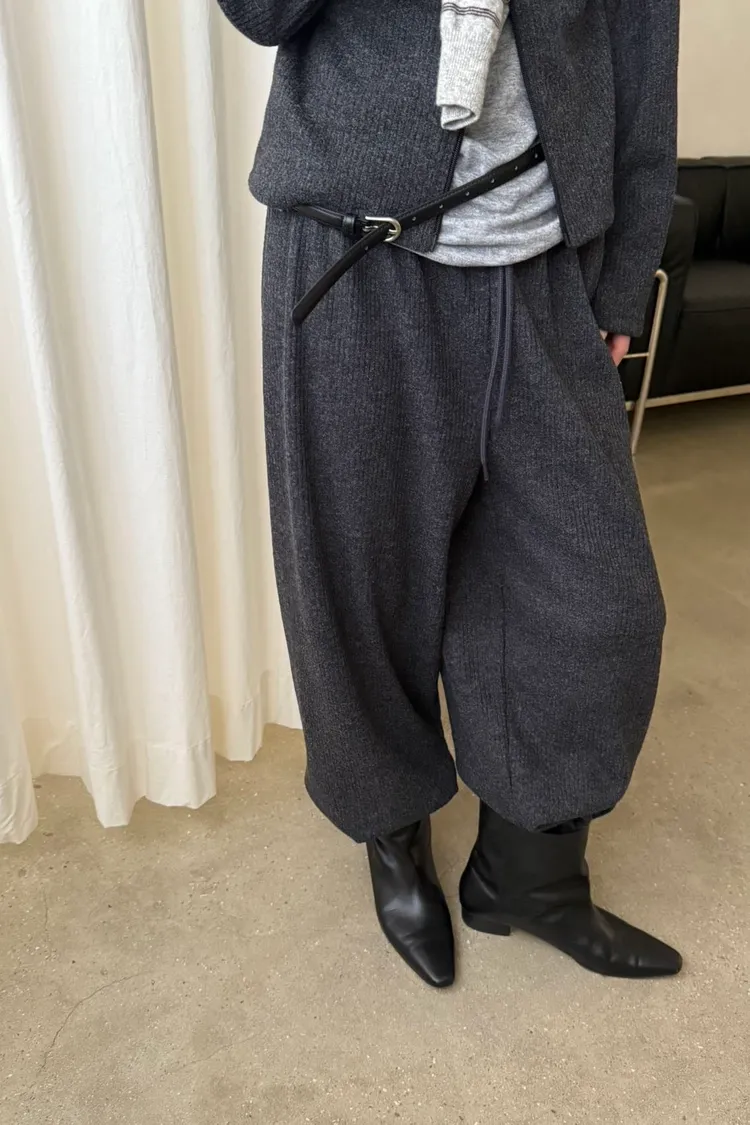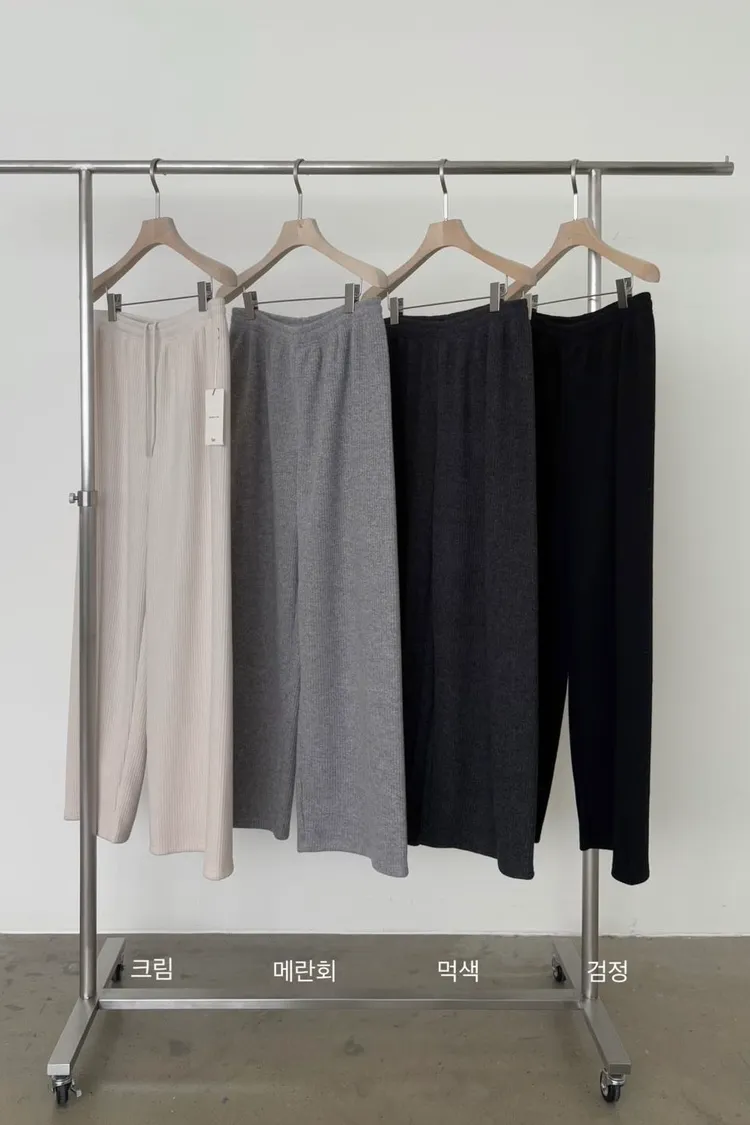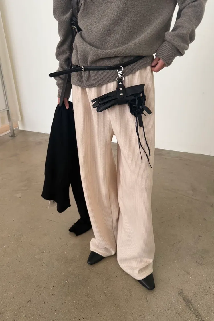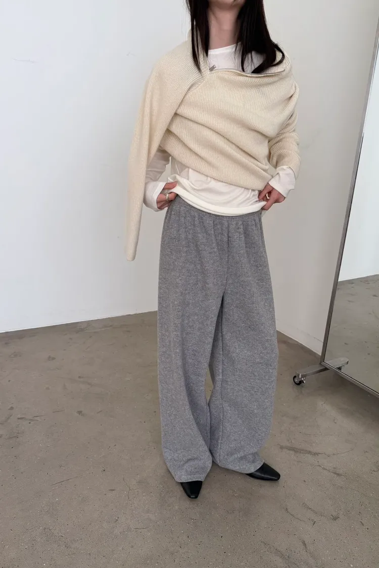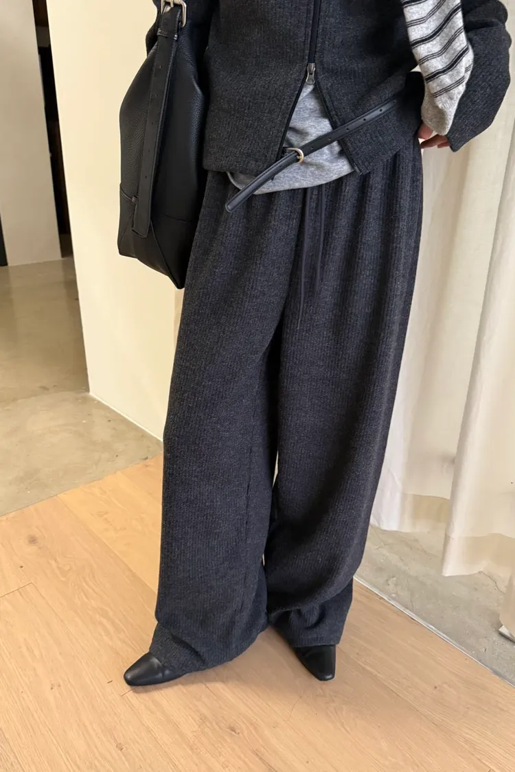 _G13.Korea舒適毛料坑紋鬆緊長褲