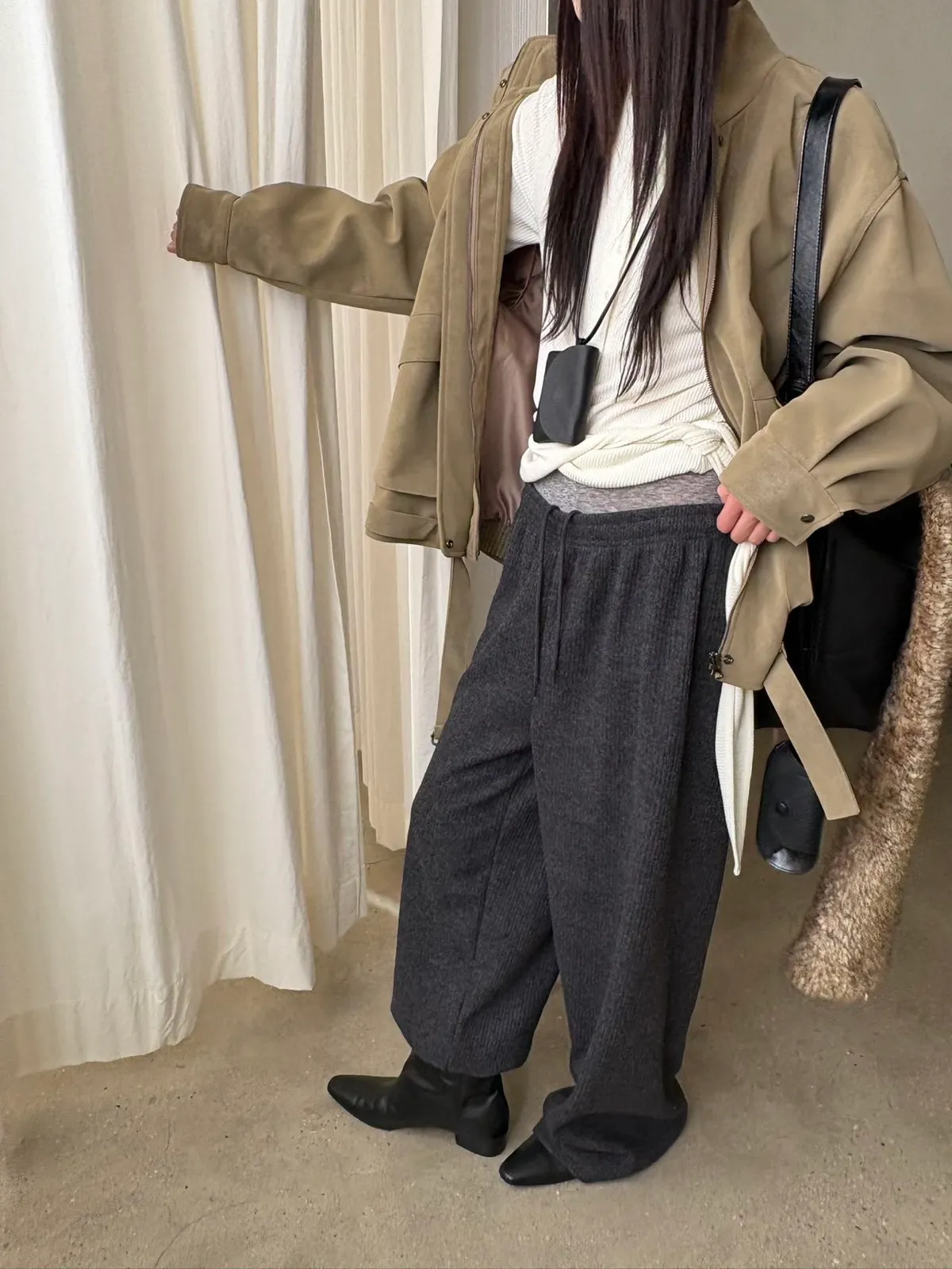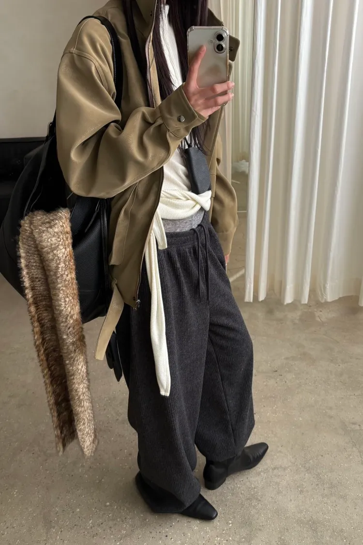 冬天必備這樣保暖的鬆緊毛料褲