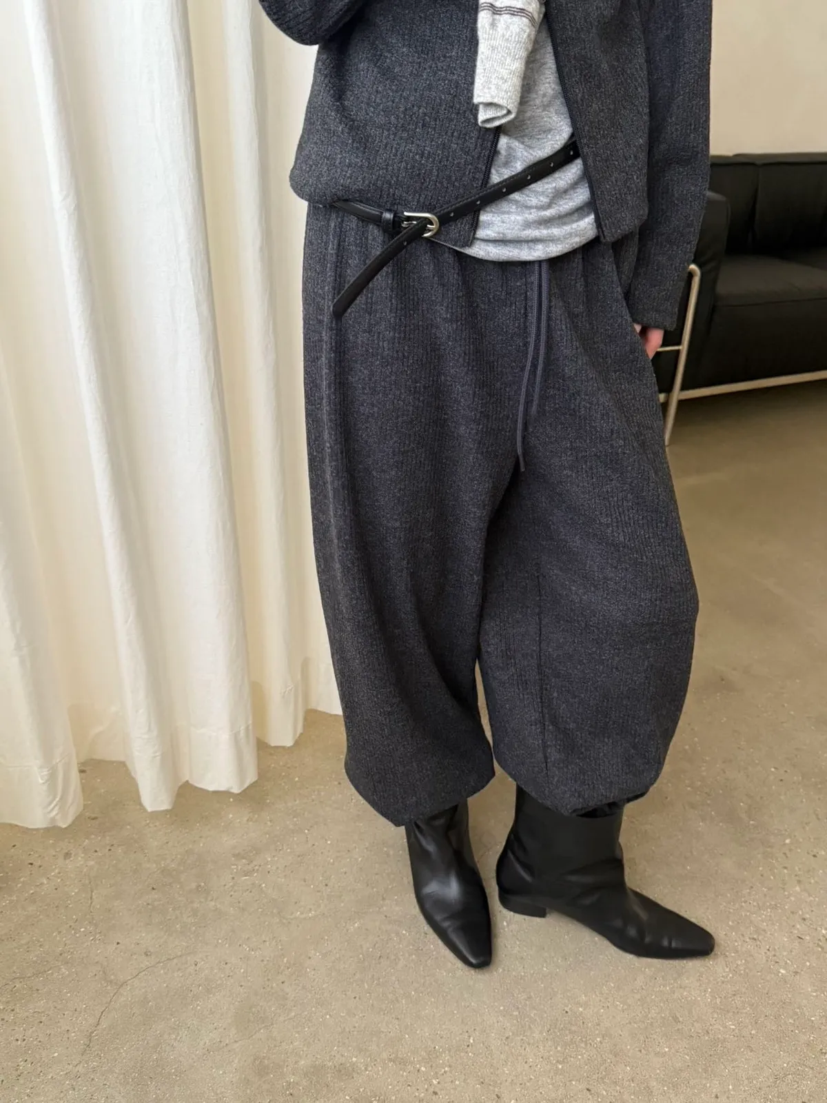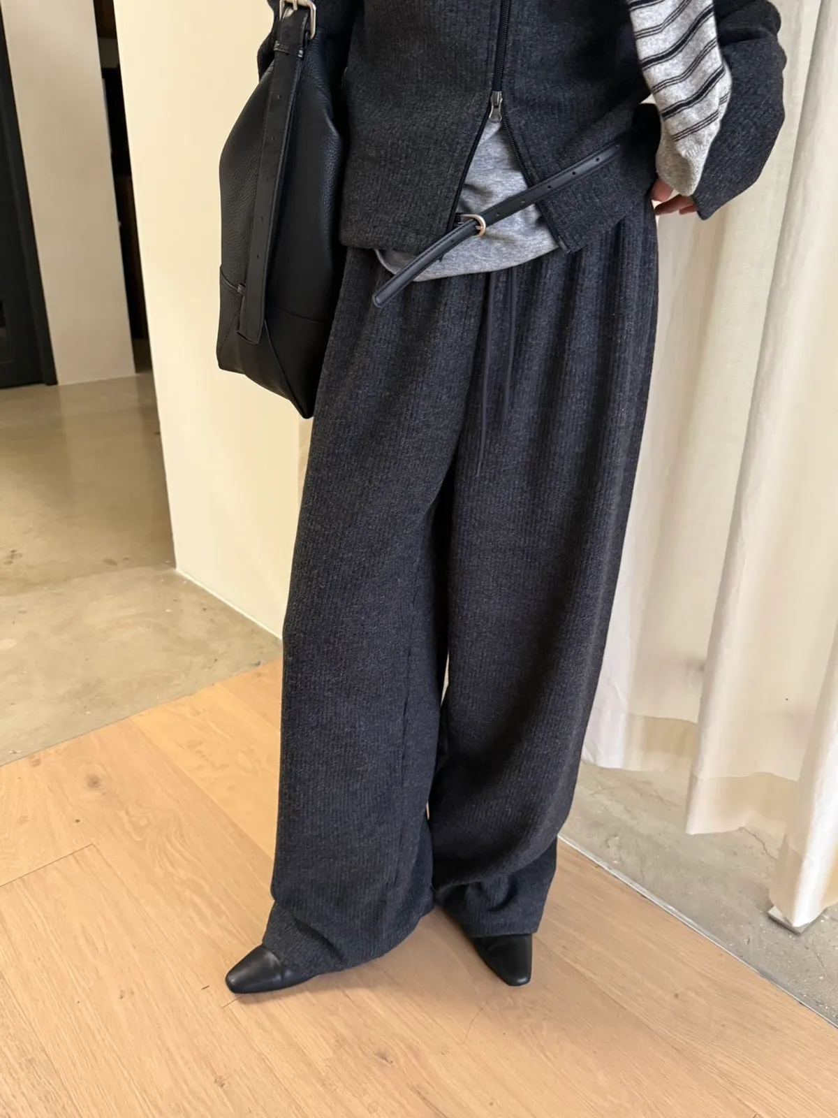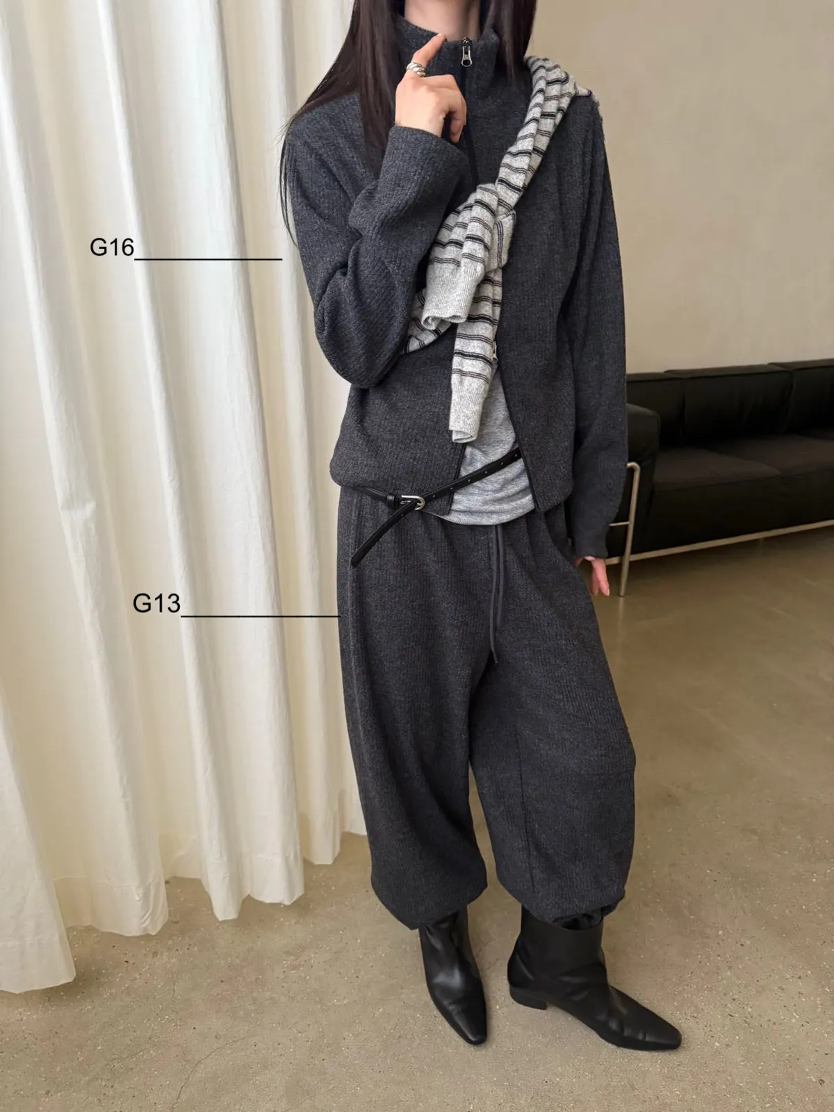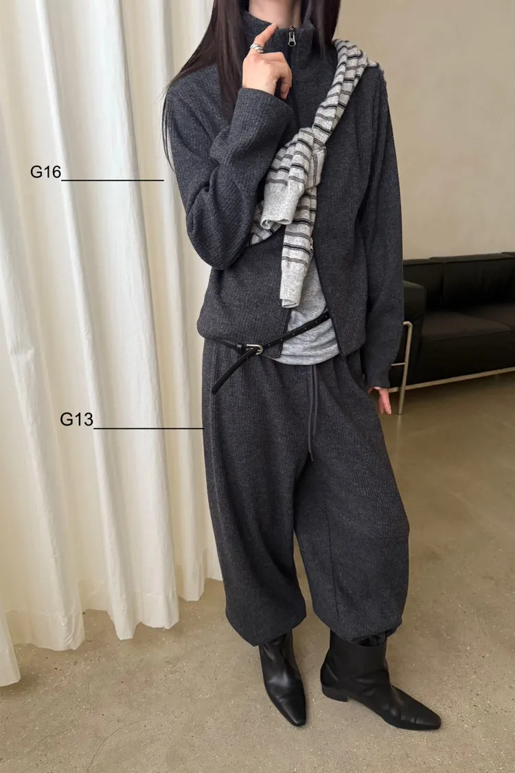 黑/深灰可以和G16雙拉鍊毛料上衣搭配成SET