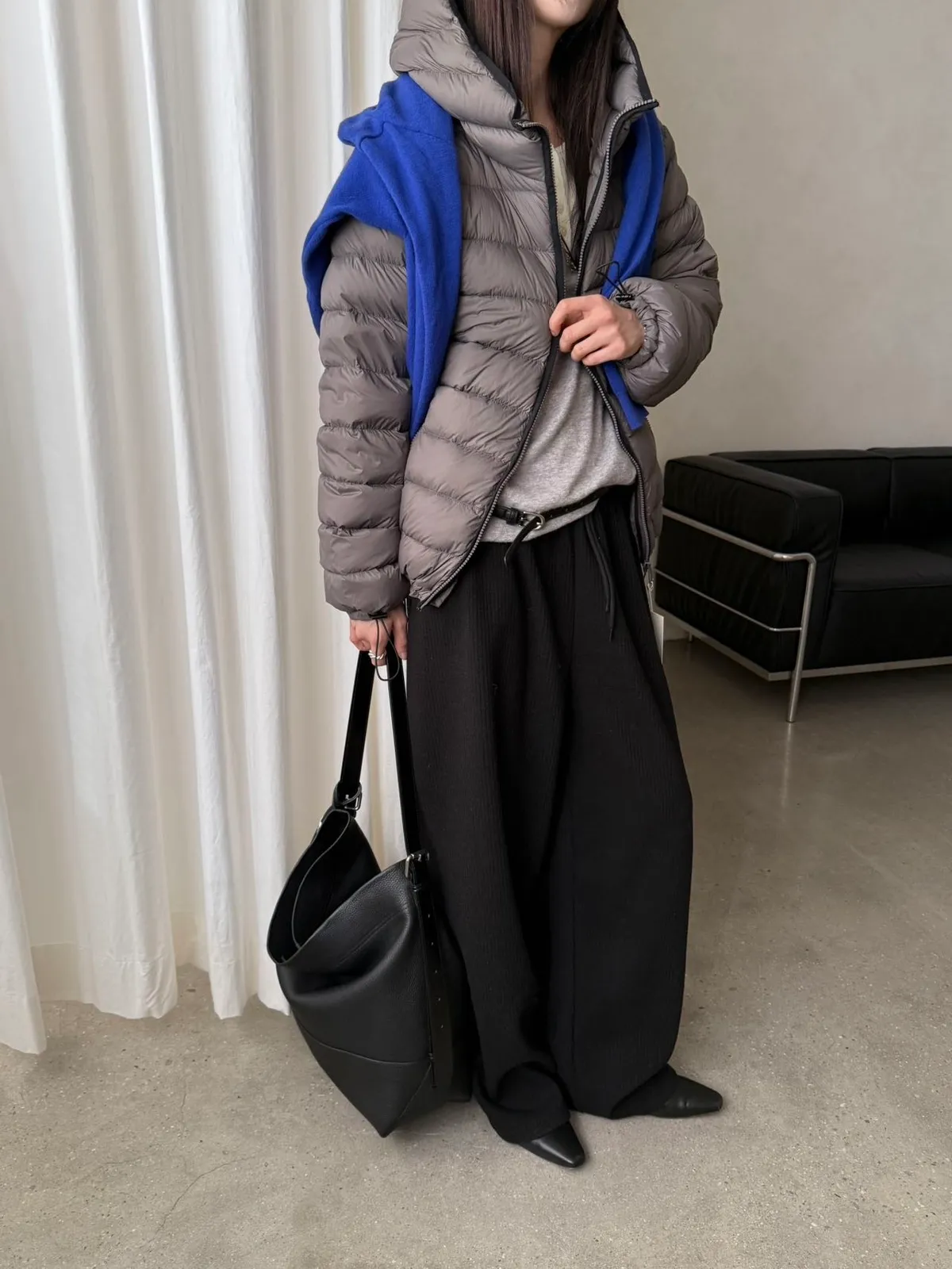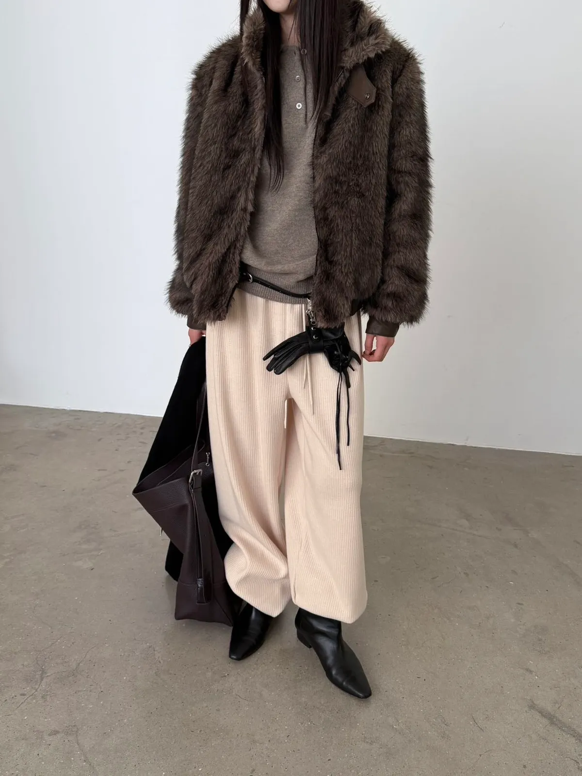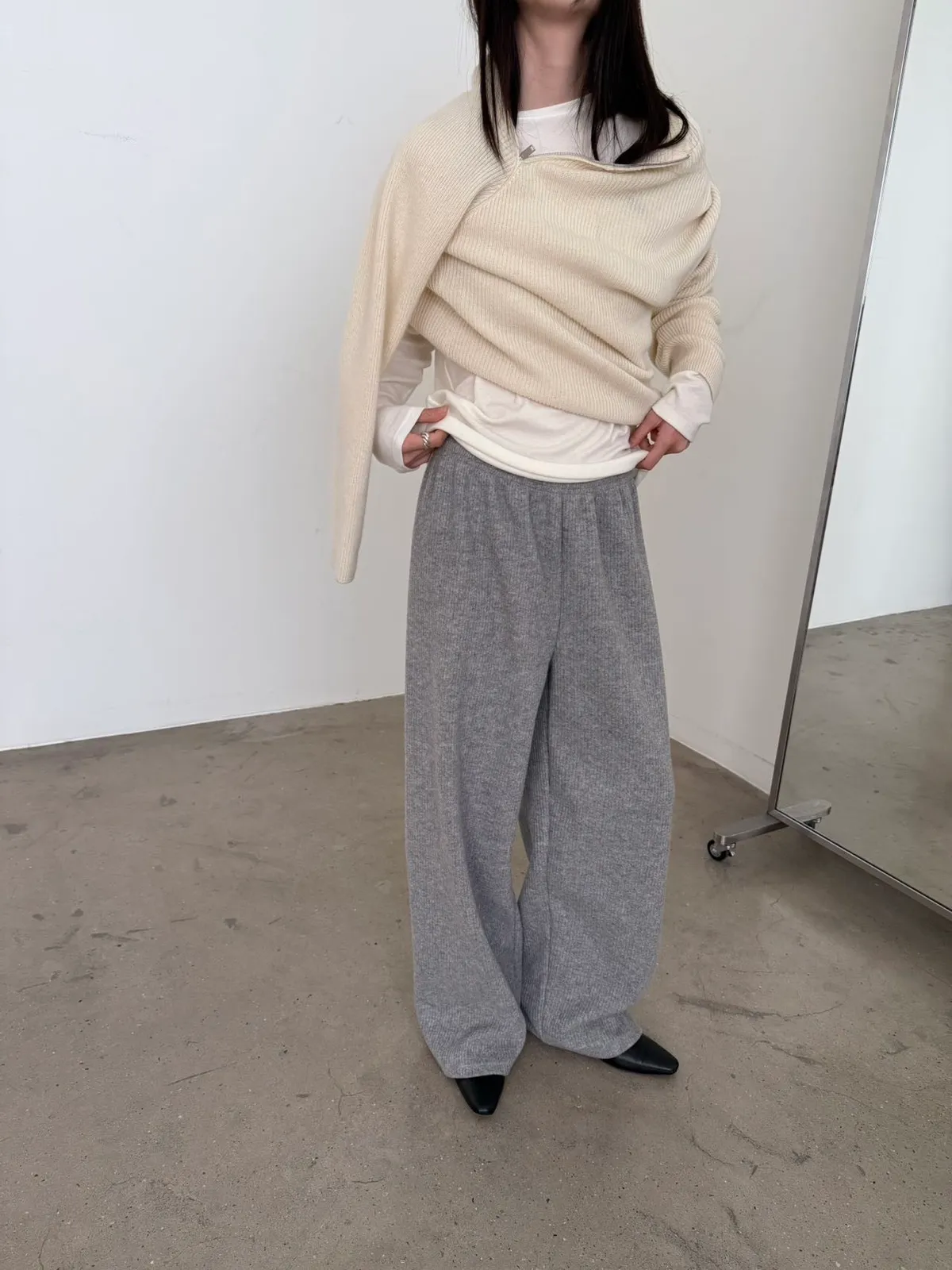 黑/深灰可以和G16雙拉鍊毛料上衣搭配成SET