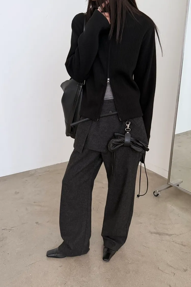 _G13.毛料坑紋鬆緊長褲
