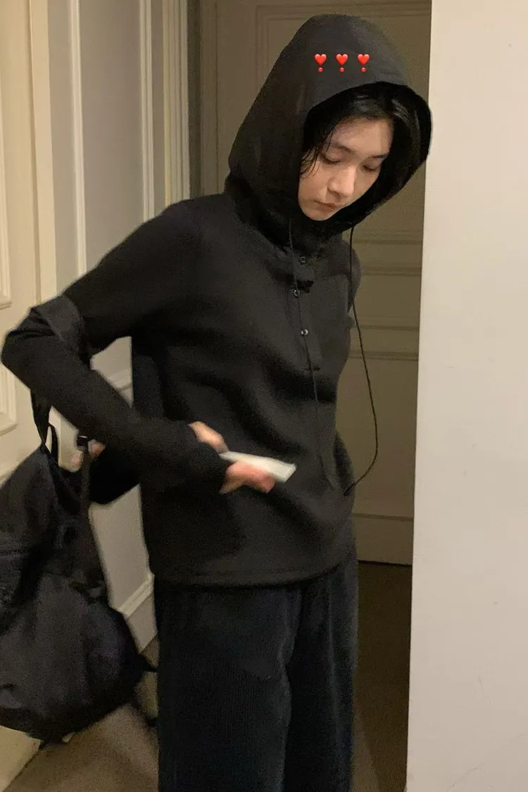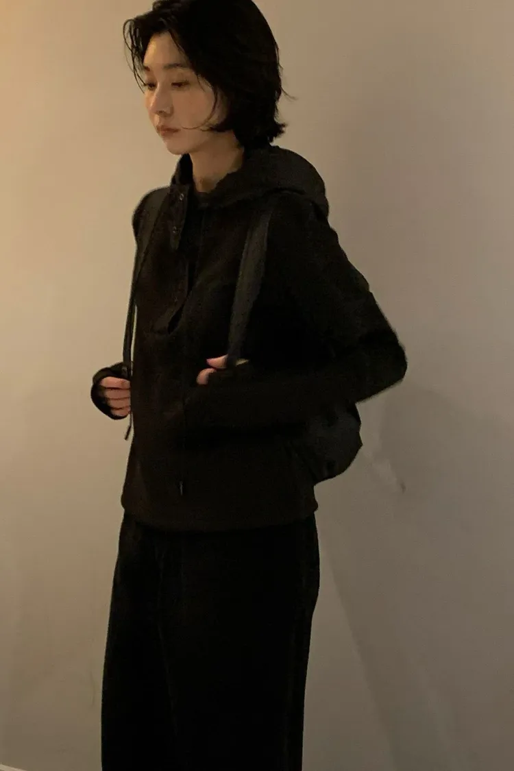 很喜歡用這樣的合身帽Tee搭配皮衣跟外套