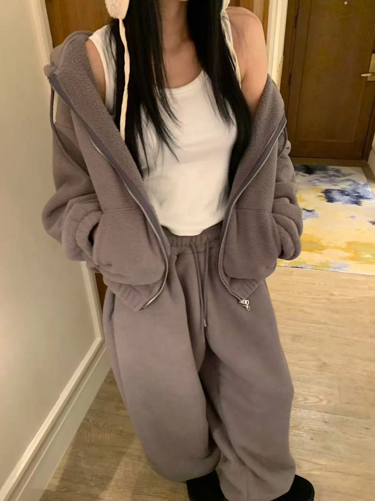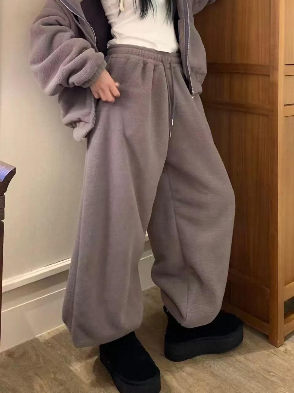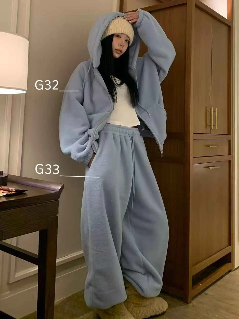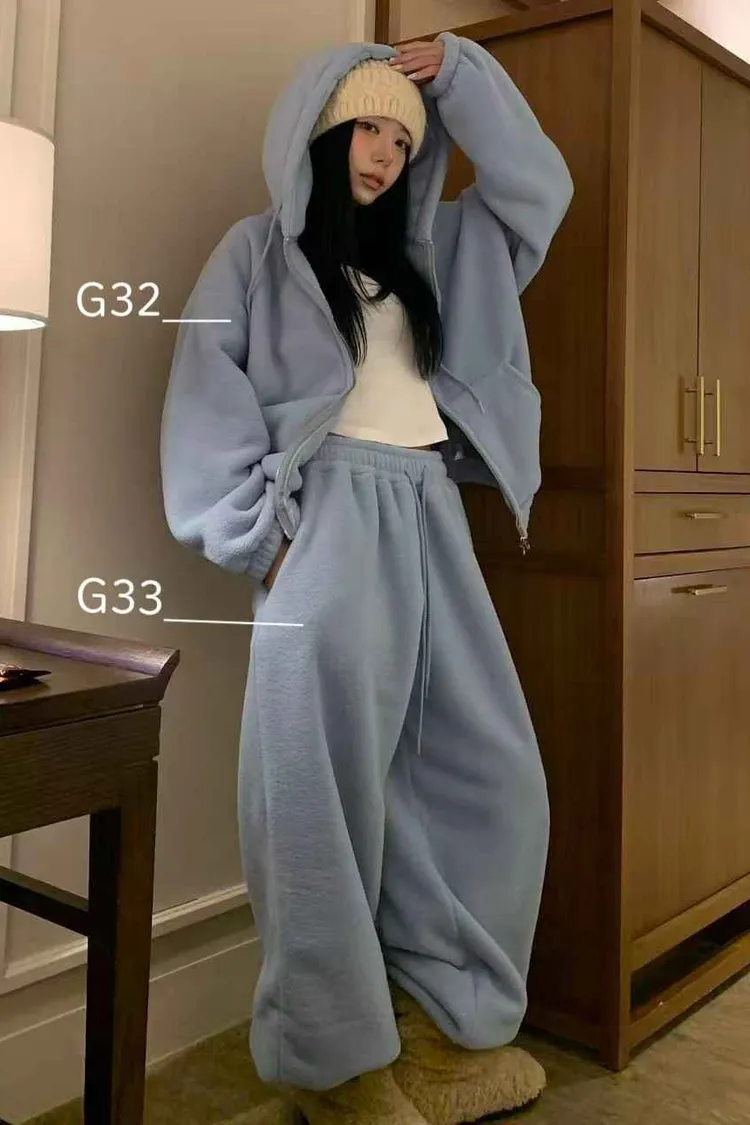 _Korea G32超暖.熊寶寶連帽毛毛外套+G33.熊寶寶保暖毛毛縮口褲